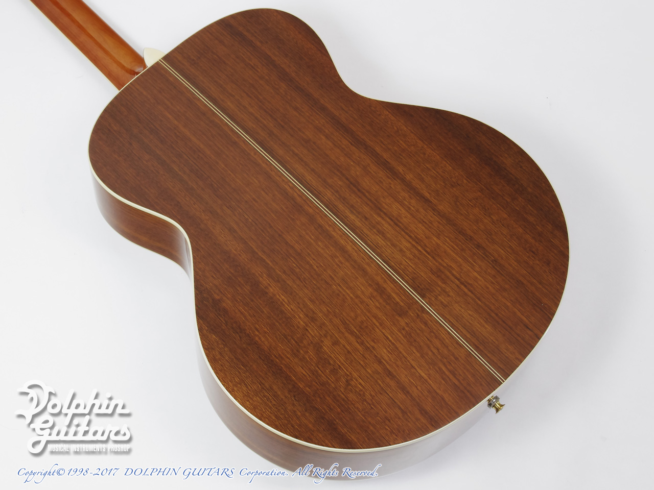 シダートップ、オバンコールS&B、マホガニーネック、ローズウッド指板&ブリッジ、43mmナット、720mmスケール、グローヴァー糸巻き仕様。
