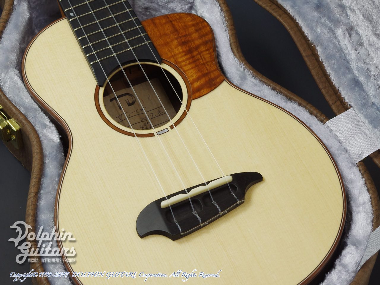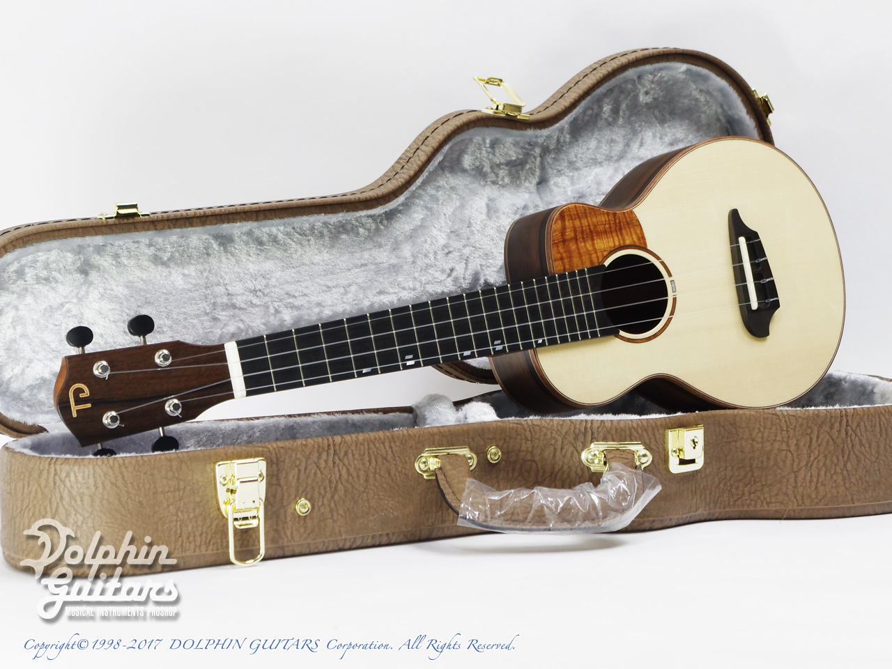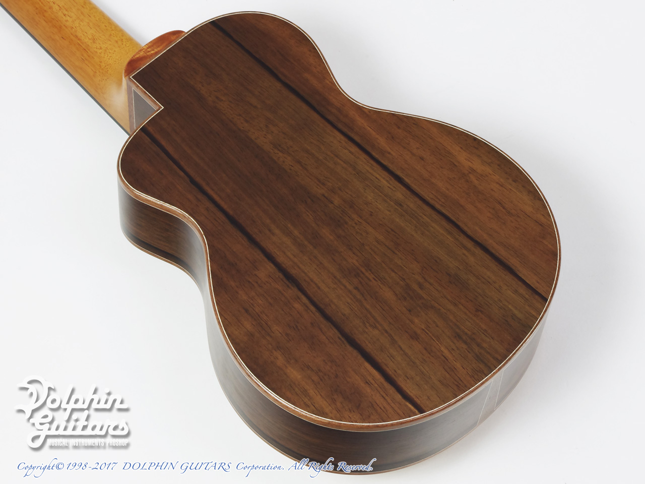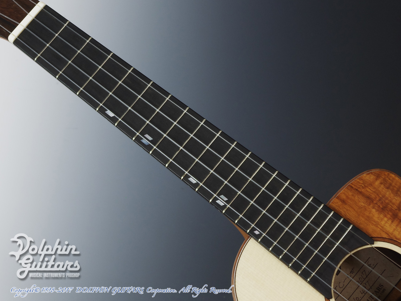 ジャーマン・スプルーストップ、マレーシアン・ブラックウッドS&B、ホンジュラスマホガニーネック、エボニー指板&ブリッジ、ハワイアンコア・ピックガード、ウッドバインディング、Gotohペグ仕様。