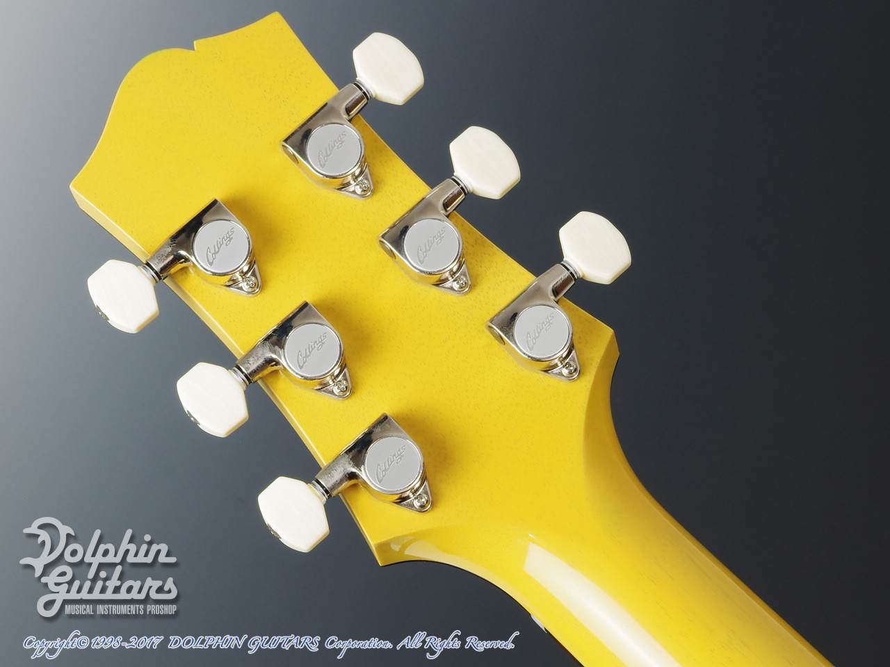 カラーはTVイエロー、ビグスビートレモロ仕様のマニアックなスペックを持ち。トレモロアーム使用時のチューニングの狂いもなく、コリングスギターならではの精度の高さが伺えます。