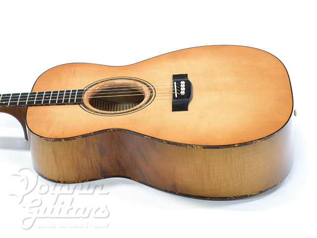 マスターグレード・アルパイン・スプルース、カーリー・メイプル・サイド、バック&ネック、ゴールデンパーロイド・バインディング、ゴトー糸巻き。