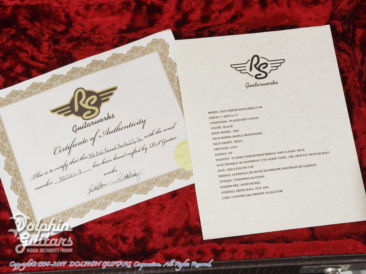 RS GUITARWORKSは、ギターメーカーではなく工房である。24年間のリペア、18年間ヴィンテージギターの復元を行ってきている経験を持ち、15年間エイジド・ギターを作り続けている。これは、アメリカ国内においてパイオニア的な存在であり、どこの会社より長くやっている。