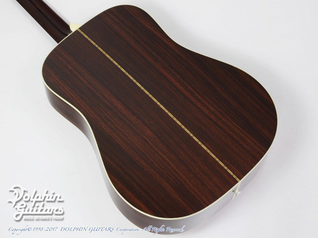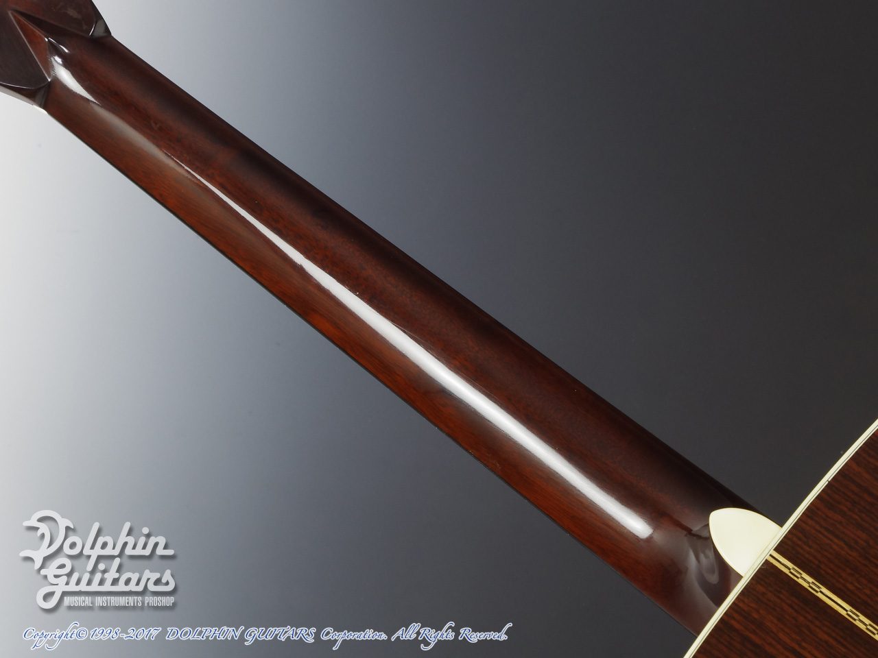シトカ・スプルーストップ、インディアン・ローズウッドS&B、マホガニーネック(SQ)、エボニー指板&ブリッジ、ノンスキャロップドXブレイス、Gotoh製ロトマティック糸巻き。