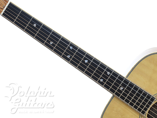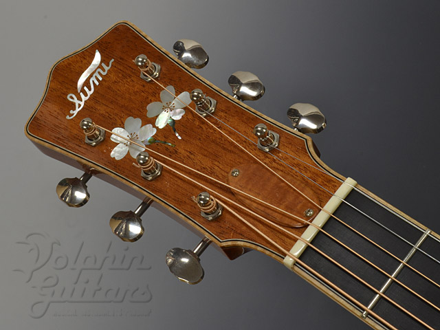 エゾマツ・トップ、マホガニー・サイド&バック&ネック、エボニー指板&駒、メイプル・バインディング、エルボーコンター、ウェイバリー糸巻き、桜インレイ。