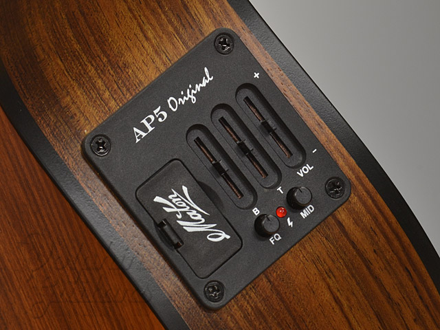 メイトンの魅力の一つでもある、ピックアップ・システムにはAP-5を搭載。そのバランス良く、安定したサウンドは、リアルなアコースティック・サウンドを出力します。