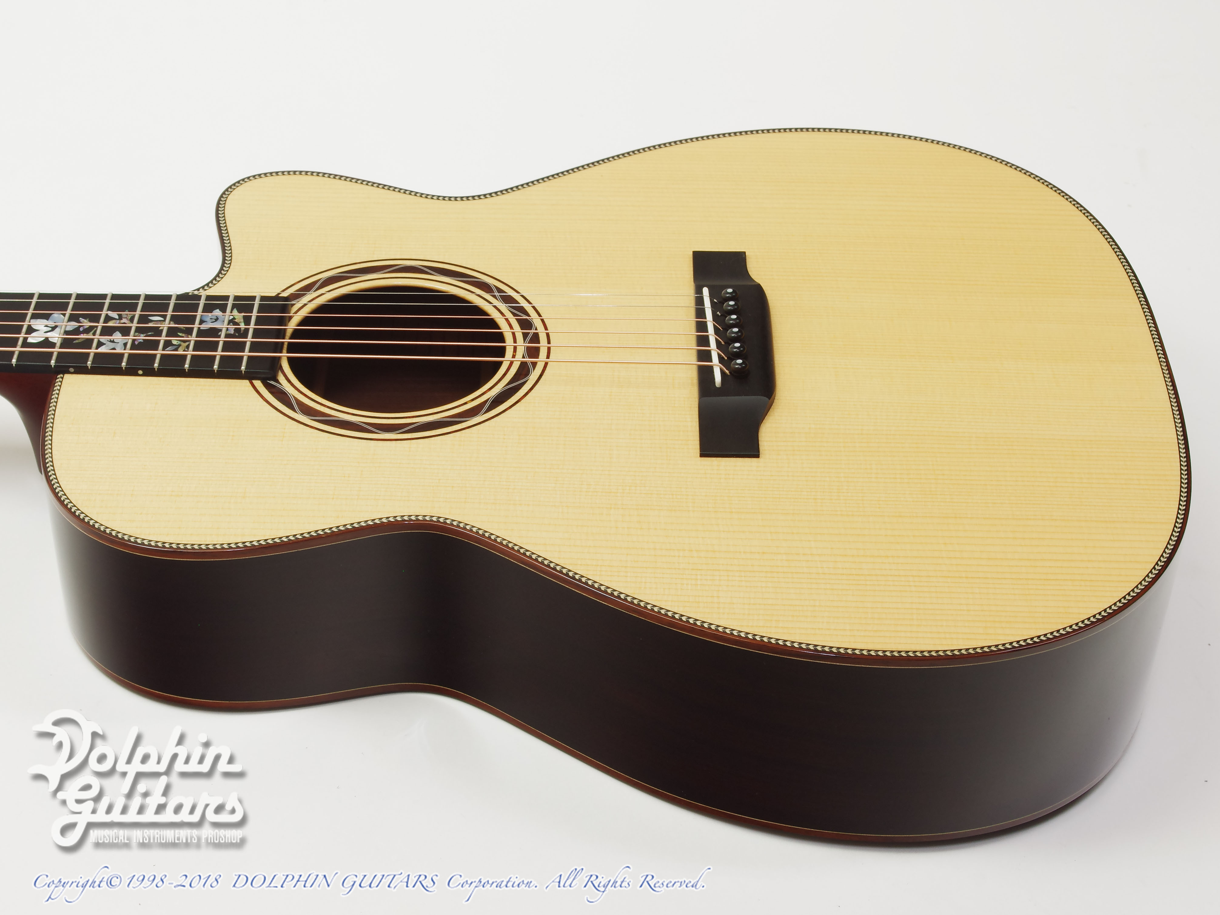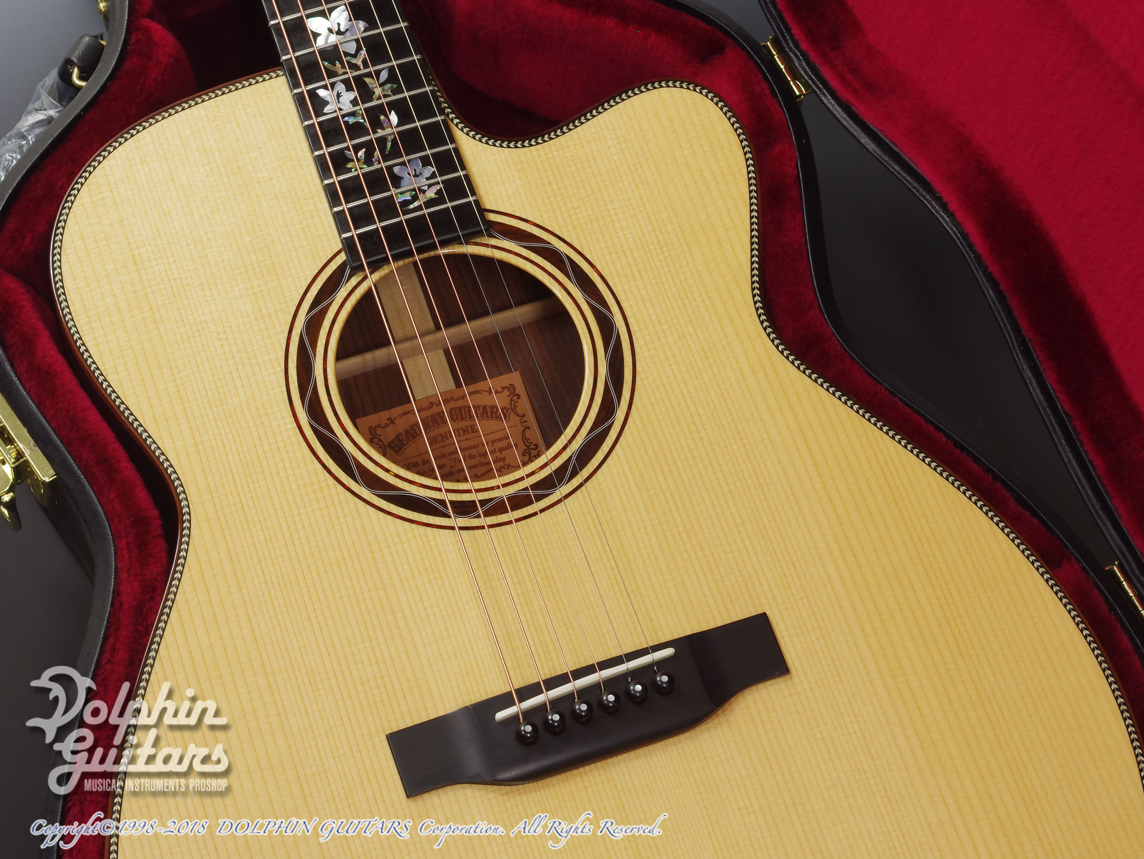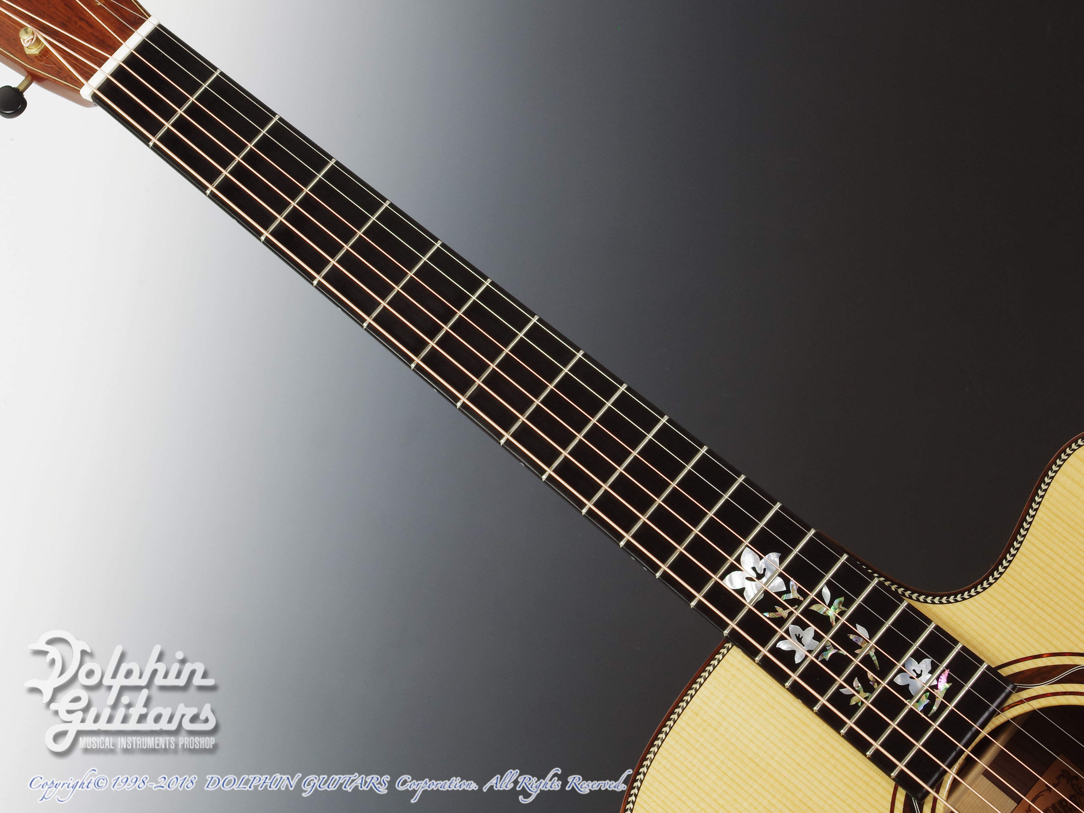 ヨーロピアン・スプルース・トップ、パオ・ローズウッド(ボリビアン)・サイド&バック、ホンジュラス・マホガニー・ネック、エボニー指板&駒、フラワー指板インレイ、ヘリンボーン・トリム、ラッカー・トップ・フィニッシュ。