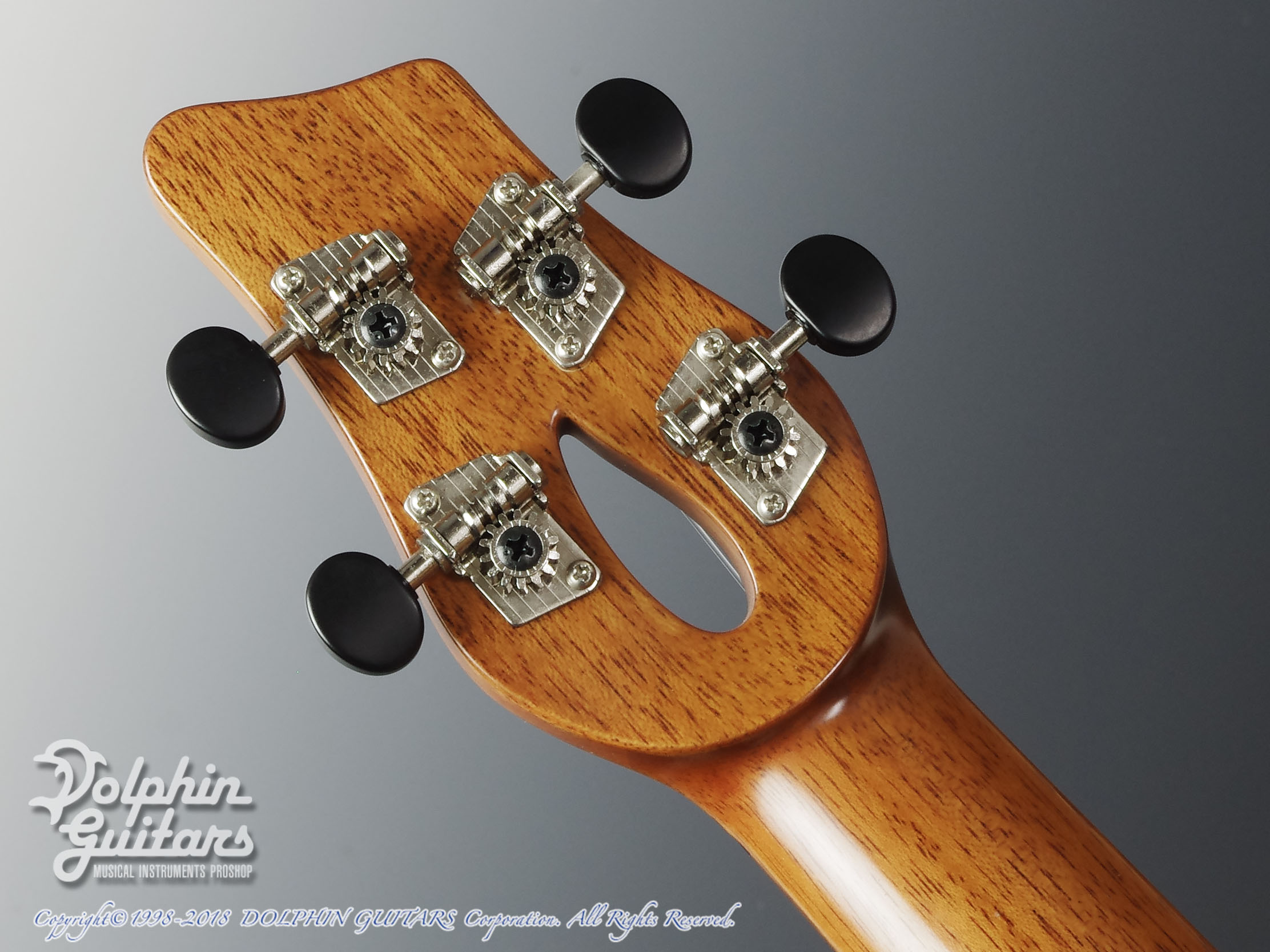 ハワイアンコアボディ、マホガニーネック、ソノリケン指板&ブリッジ、ゴトーペグ、35mmナット、390mmスケール、サテン・フィニッシュ。