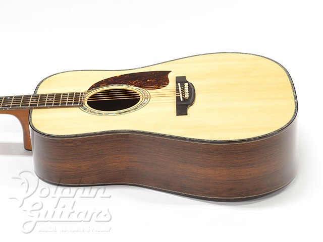 赤エゾ・スプルース・トップ、マダガスカル・ローズウッド・サイド&バック、マホガニー・ネック、エボニー・フィンガーボード&ブリッジ、GOTOH社製510ペグ。