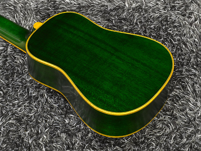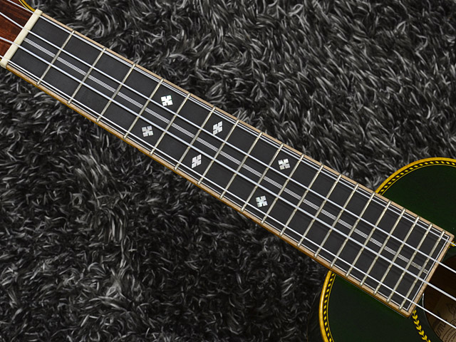 ホンジュラス・マホガニー・ボディ&ネック、エボニー指板、ローズウッド駒、ロープ・パーフリング、ダイアモンドスクエア&センターライン・インレイ、ゴトー製UTPギアペグ仕様。