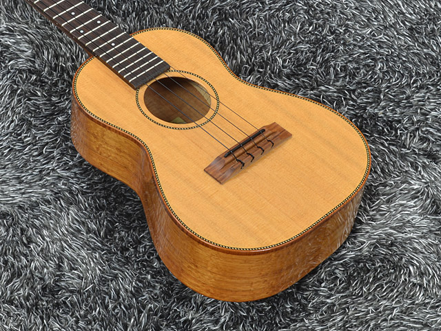 シダー・トップ、ハワイアン・コア・サイド&バック、ローズウッド指板&駒、ロープバインディング。