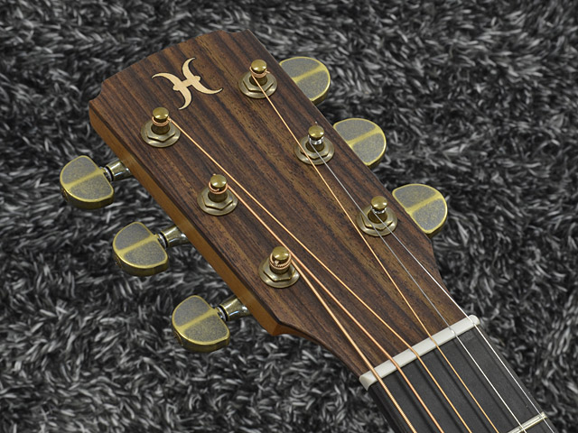 ルッツ・スプルース・トップ、ホンジュラス・マホガニー・サイド&バック、マホガニー・ネック、エボニー指板&ローズウッド駒、ゴトー510糸巻き。