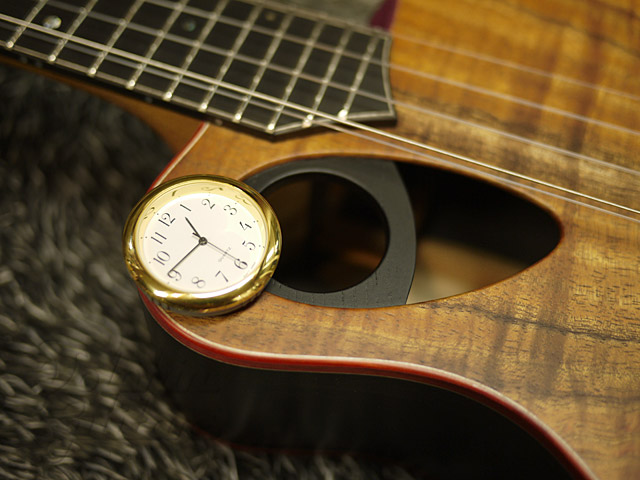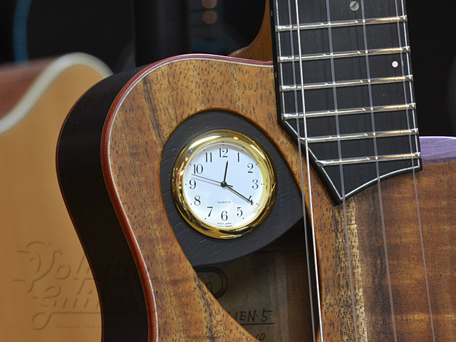 本器はなんと、時計付き!ユーモアに溢れた戸田ウクレレのショーモデル、Clock Alien 5。