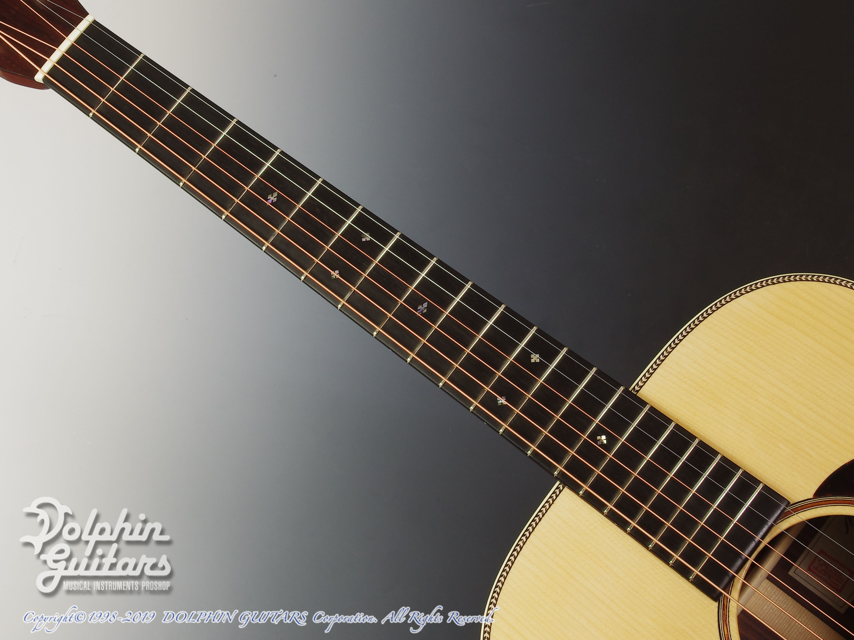 アディロンダック・スプルーストップ、インディアン・ローズウッドS&B、ホンジュラス・マホガニーネック(Tバー)、エボニー指板&ブリッジ、アイボロイド・バインディング、ウェバリーペグ。