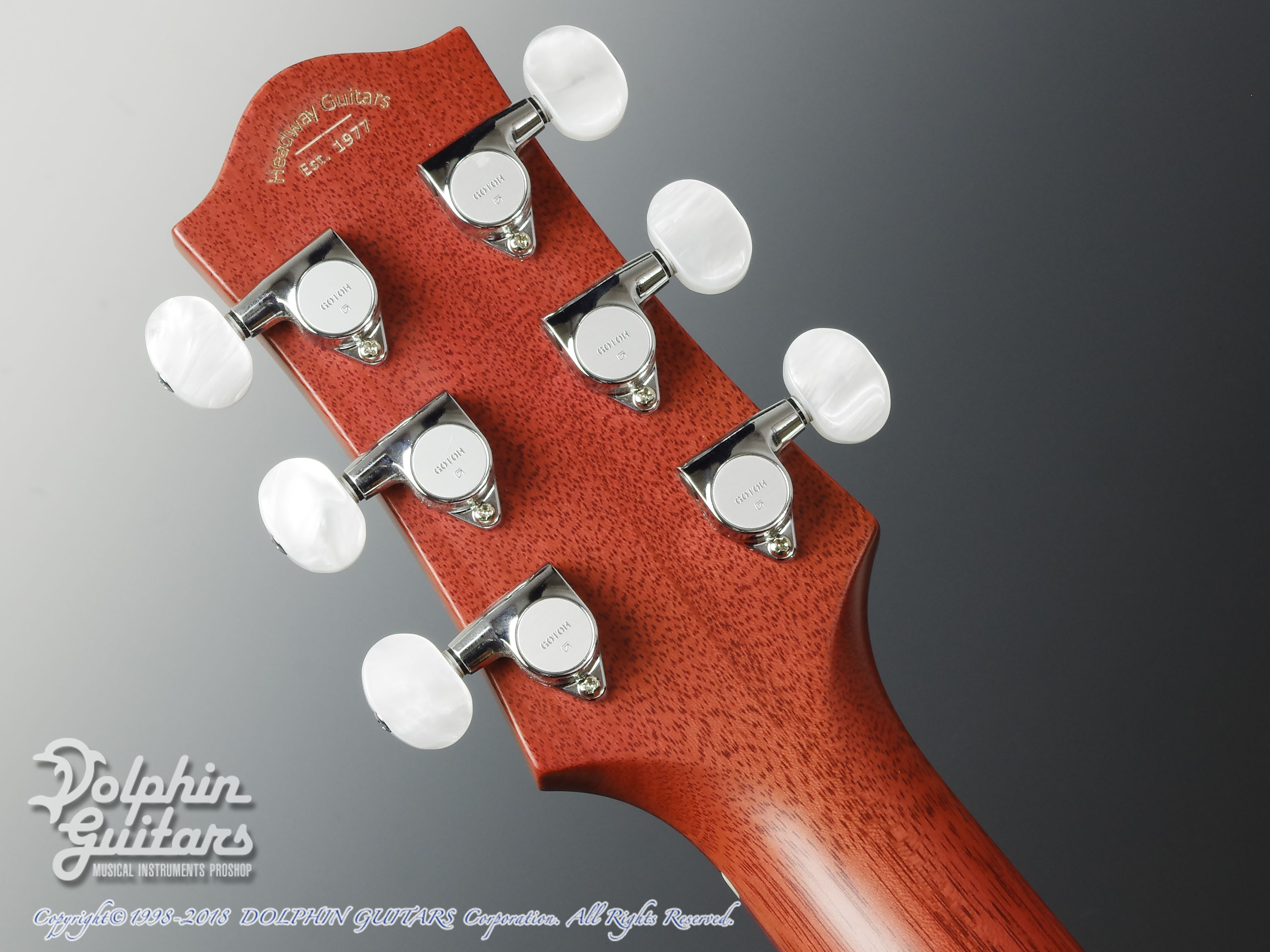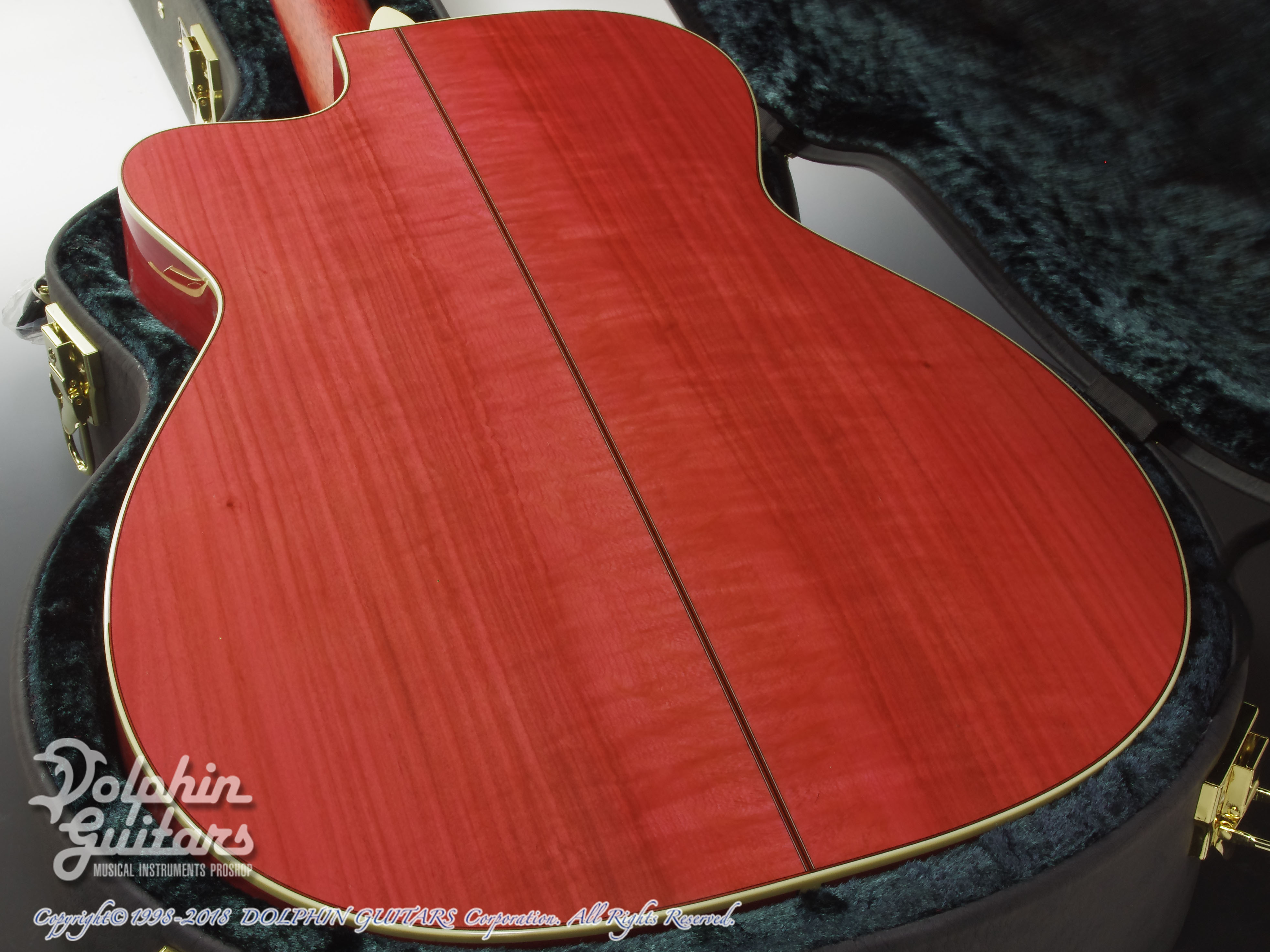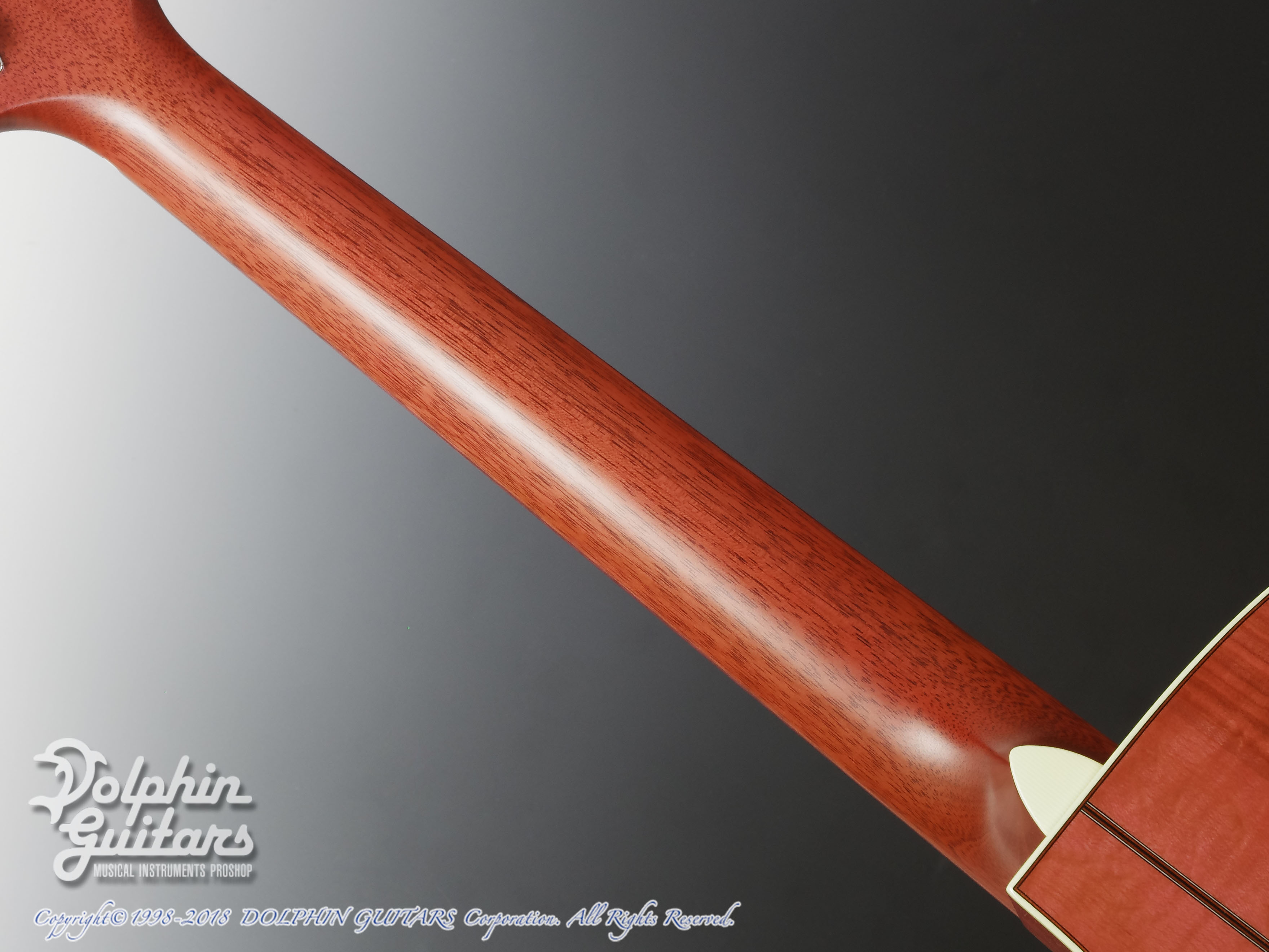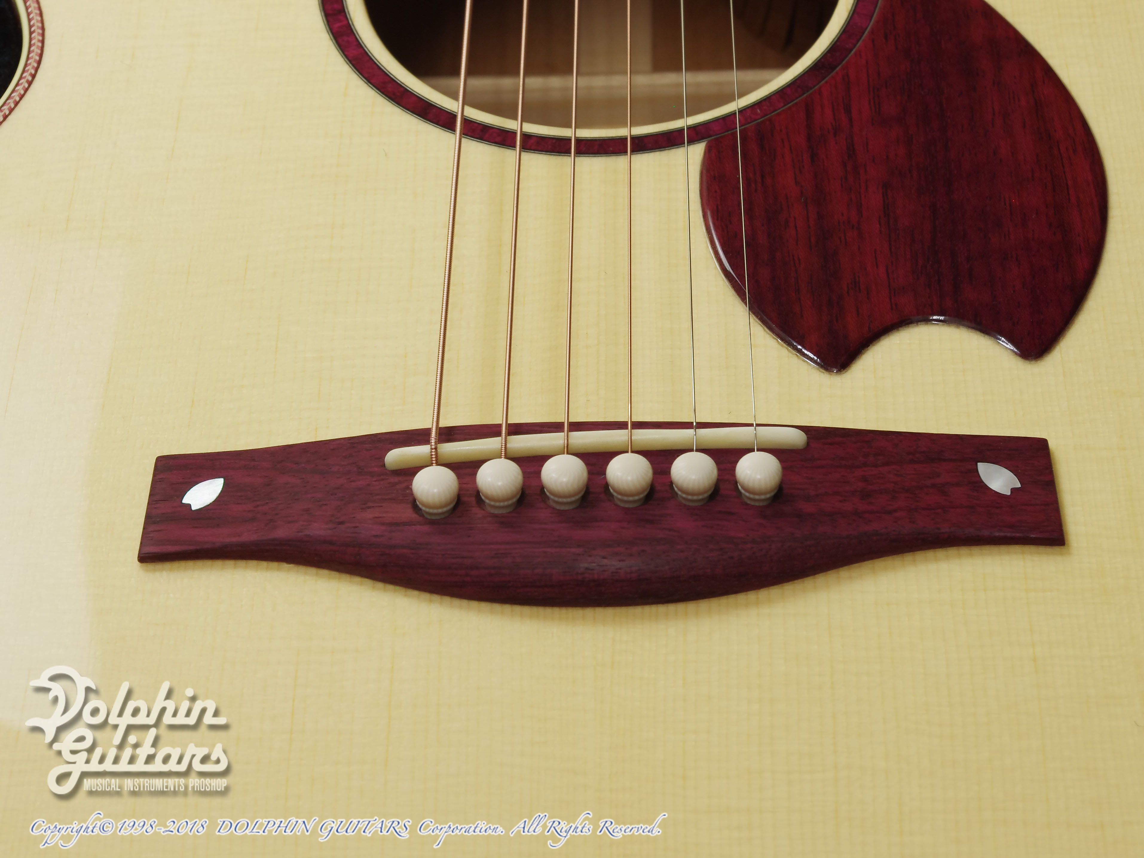 ホワイト・スプルーストップ、桜S&B、ホンデュラス・マホガニー1pネック、パープルハート指板&ブリッジ&ピックガード&ロゼッタ、アイボロイド・バインディング、ヘリンボーントリム、ベネチアンカッタウェイ、Gotohペグ。