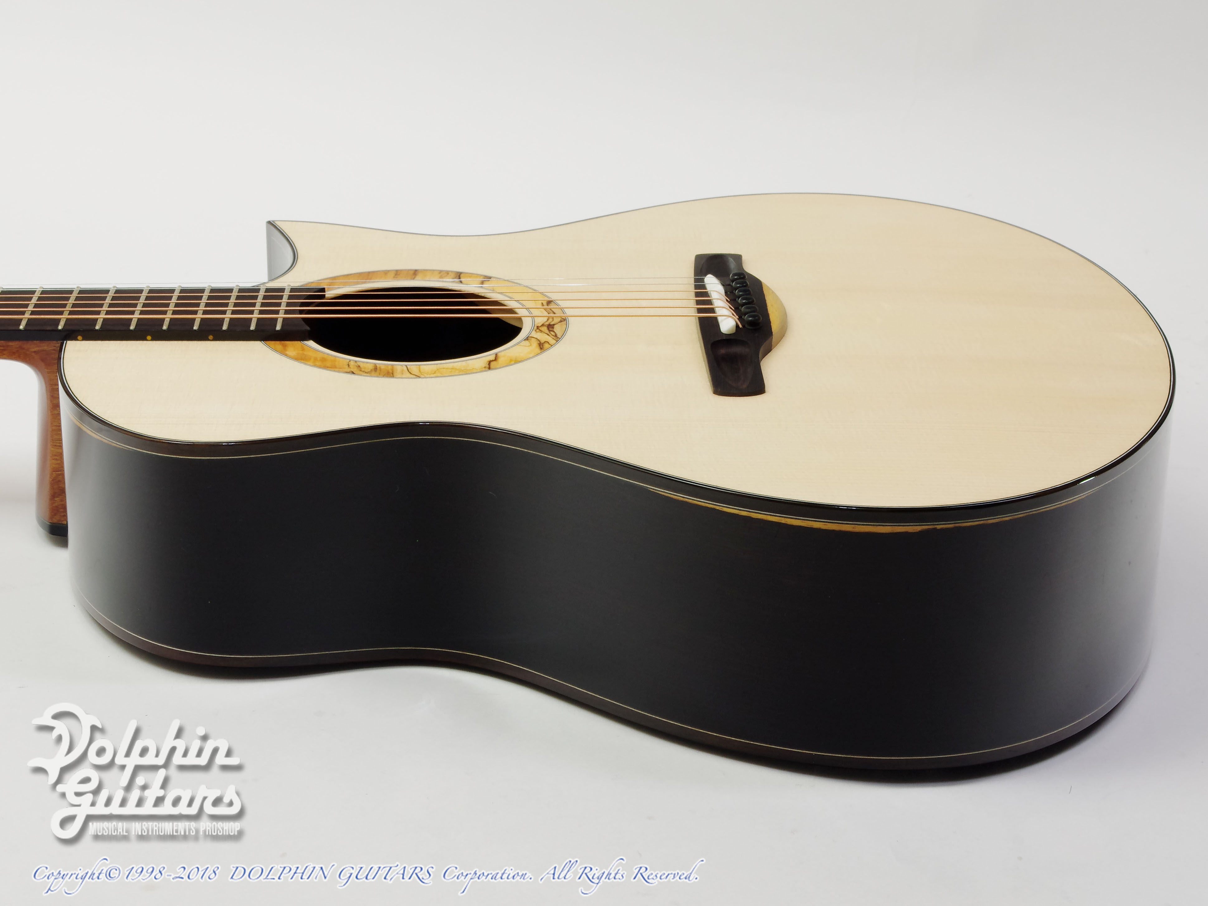 富山県のルシアー"荻野 裕嗣" 豪快なサウンドが魅力のOM Cutaway。ジャーマンスプルース&アフリカンブラックウッドS&B仕様。