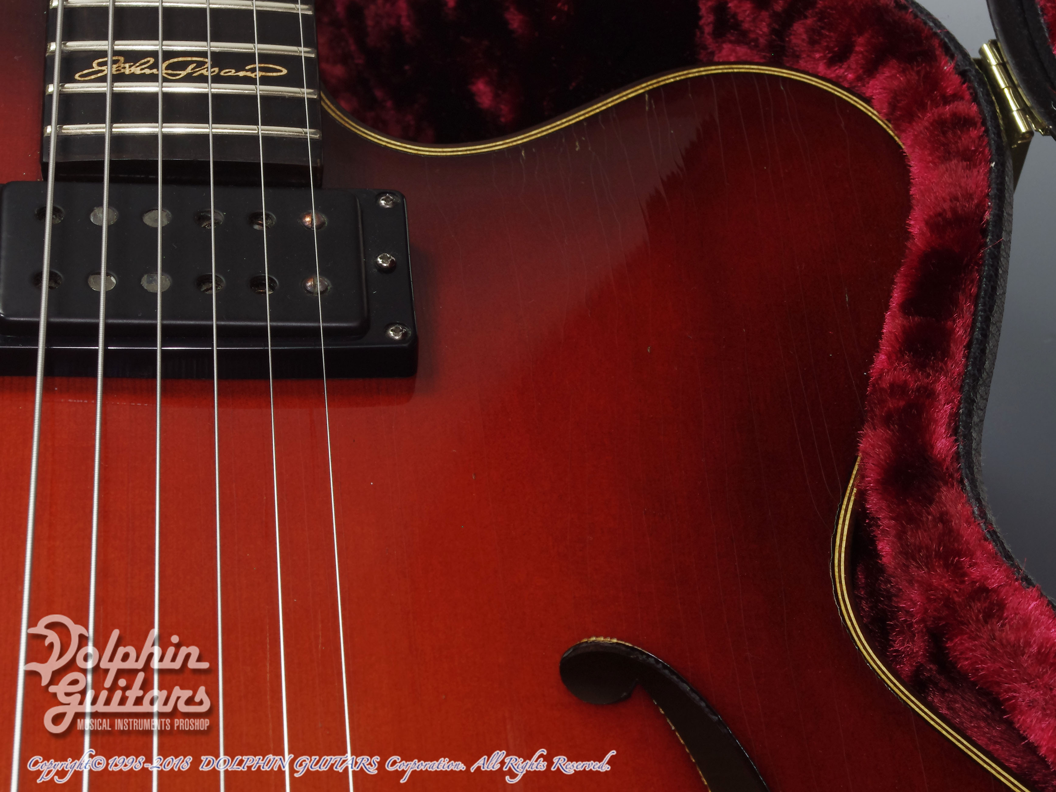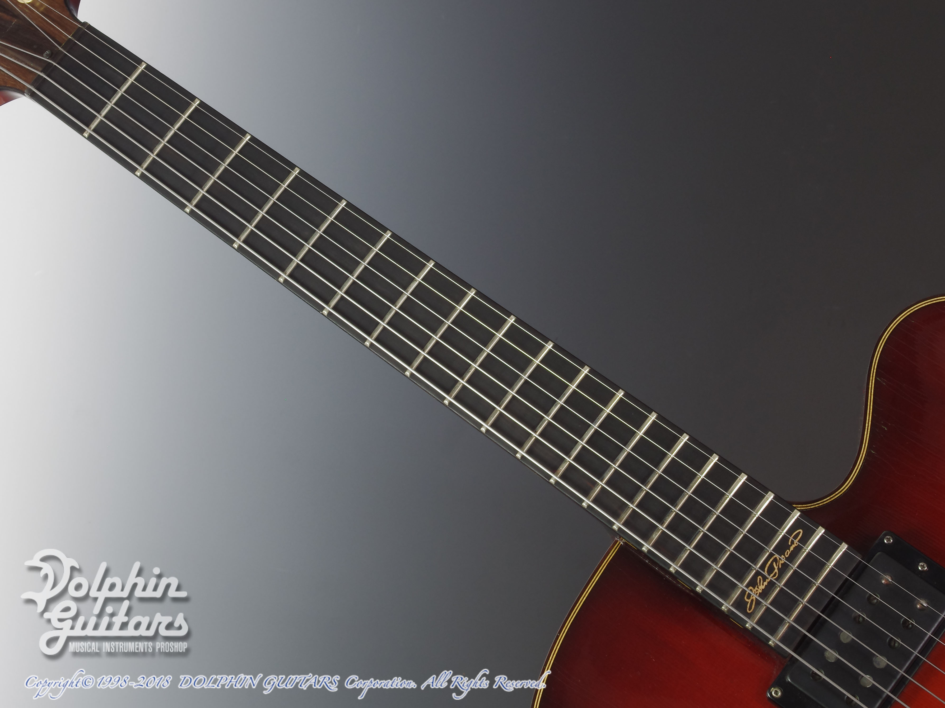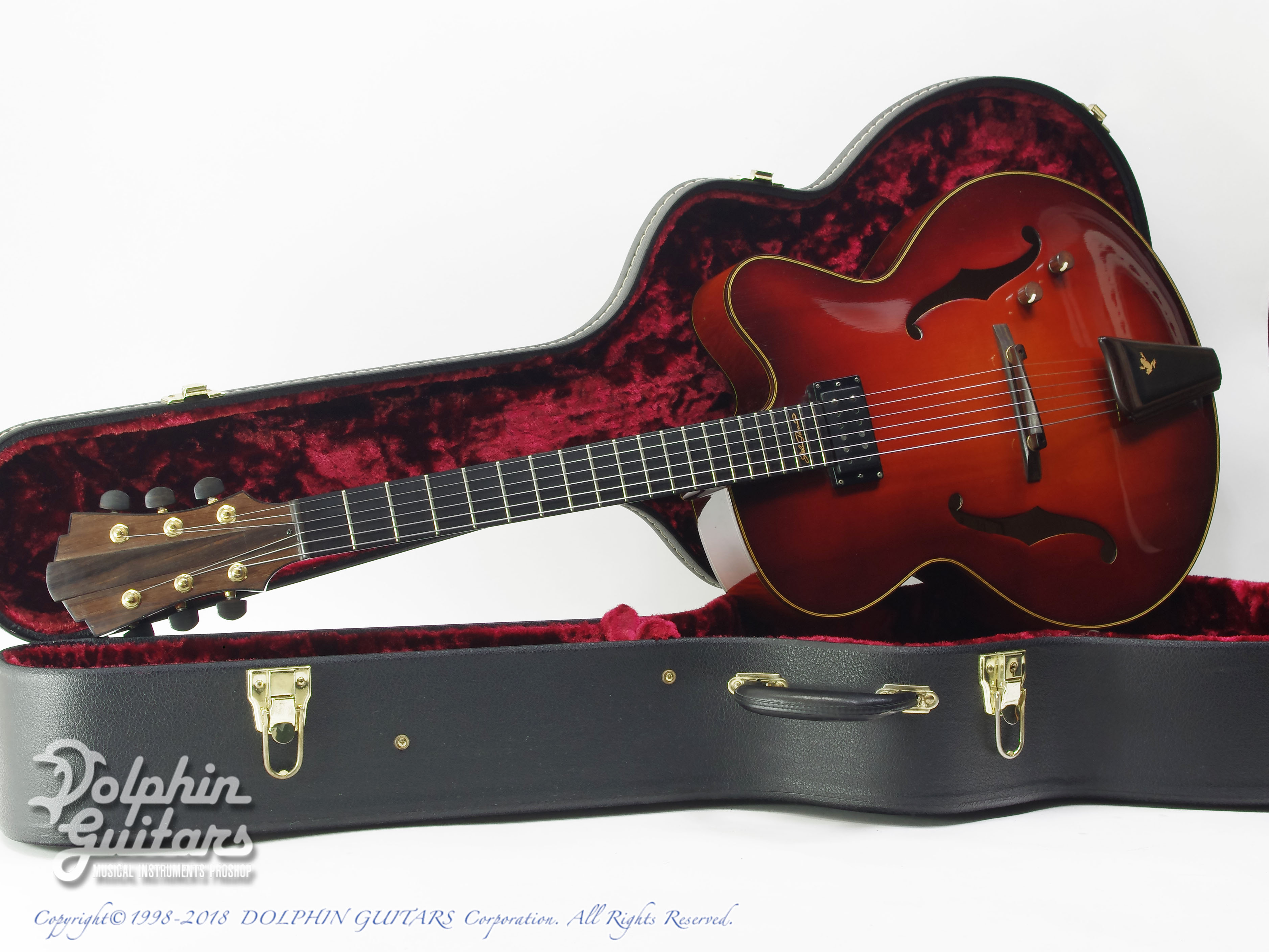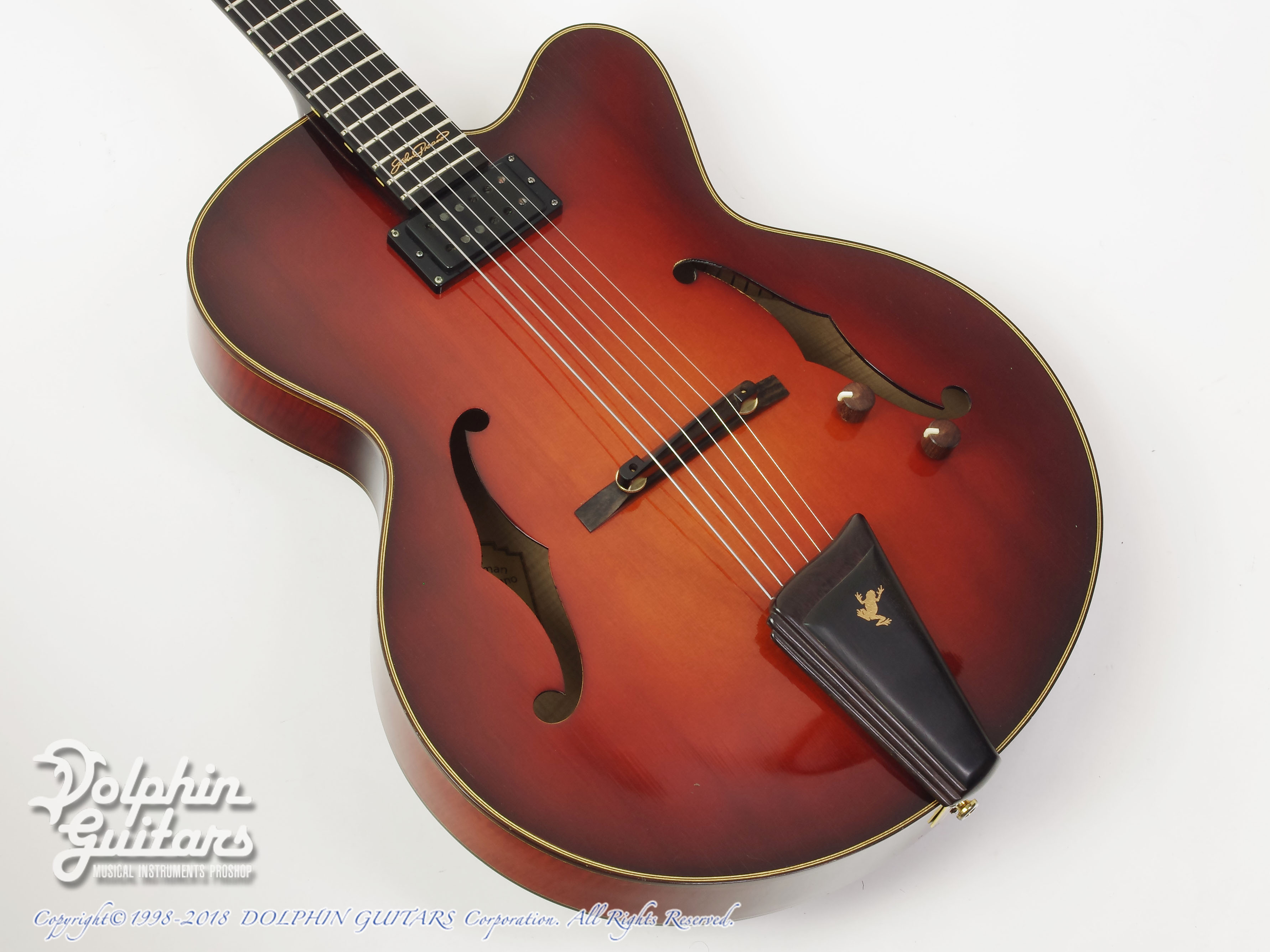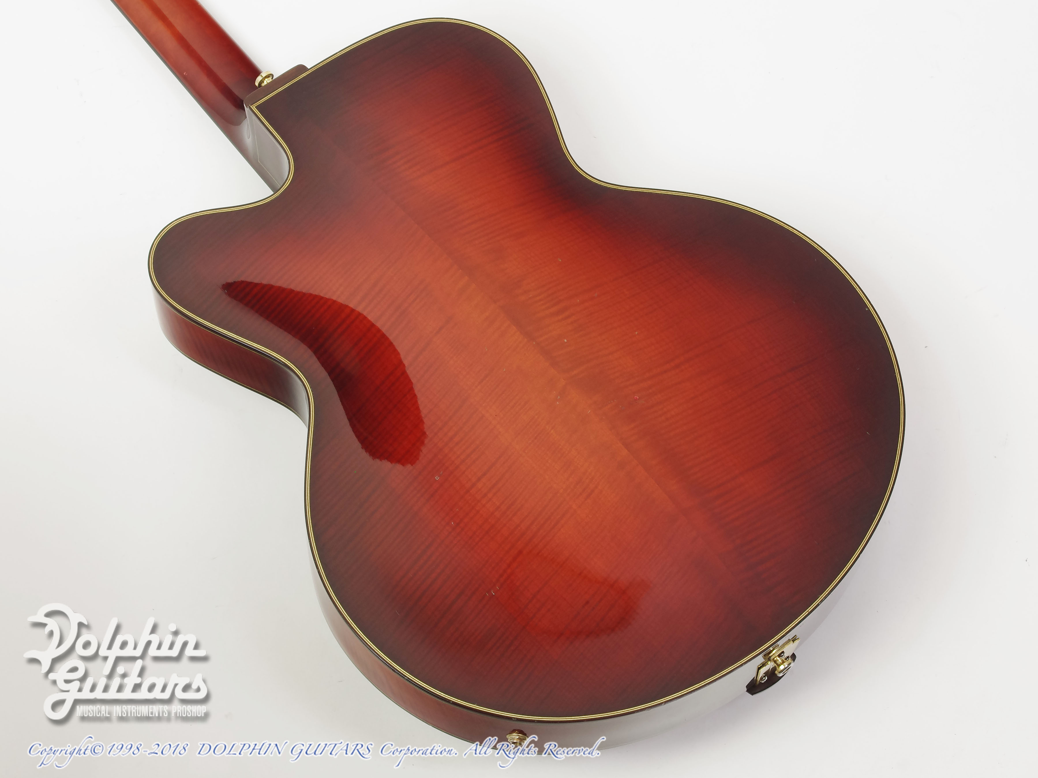 16インチ・シンボディー、スプルーストップ、フレイムドメイプルS&B、メイプルネック、エボニー指板&駒、ケントアームストロングP.U仕様