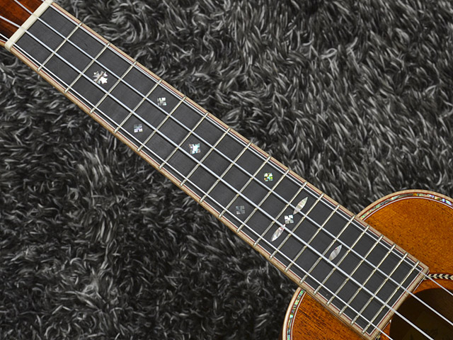 鷲見工房オリジナルシェイプのUKシリーズ、落ち着いたマホガニーアバロンが映える美しい仕上がりです。