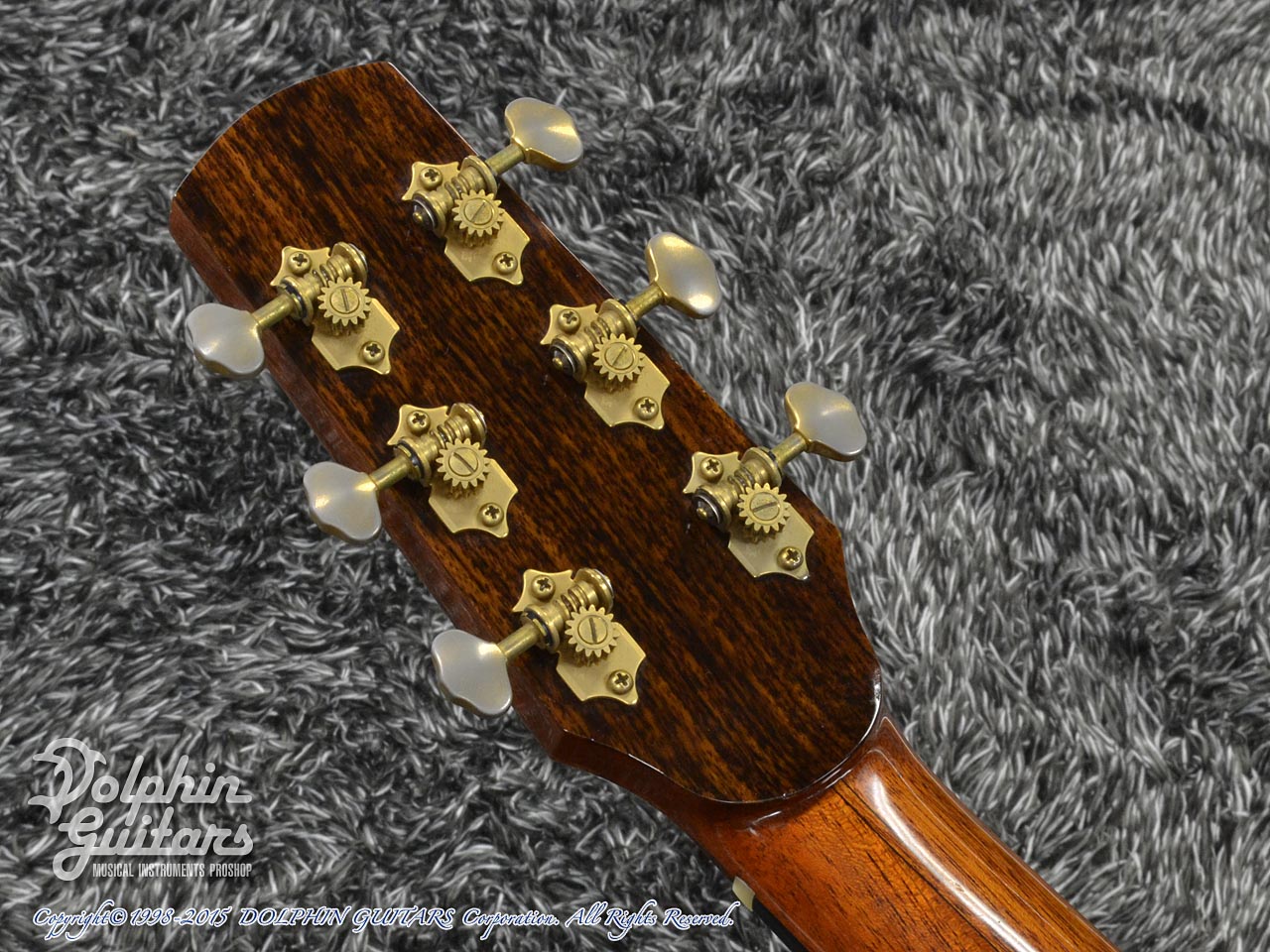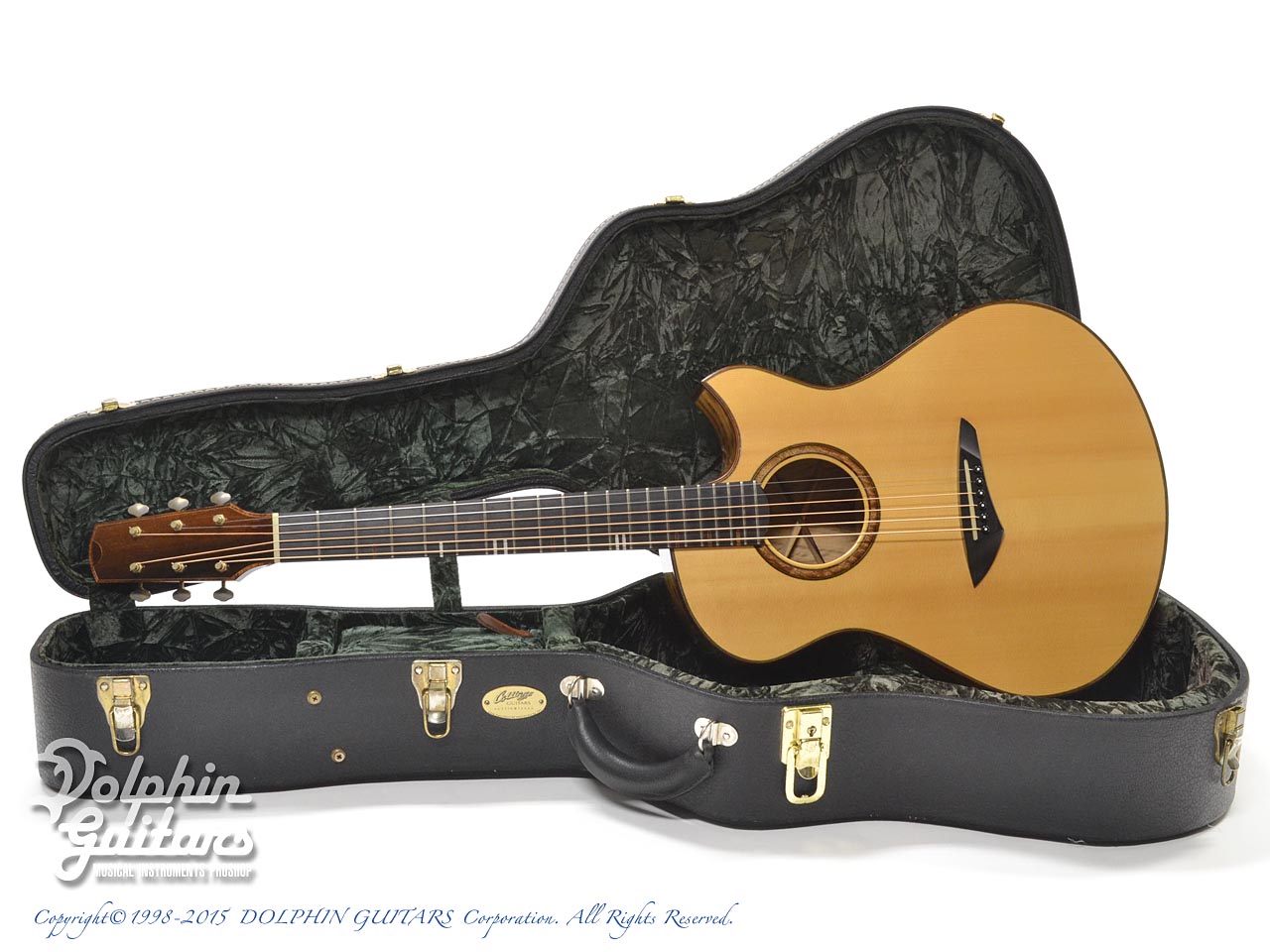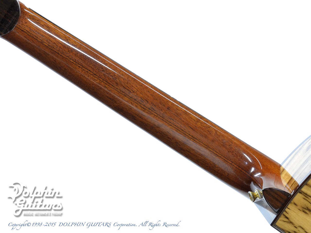 スプルース・トップ、タイガー・マートルウッド・サイド&バック、カッタウェイ、エボニー指板&駒、ローズウッド・バインディング、ゴトー糸巻き。