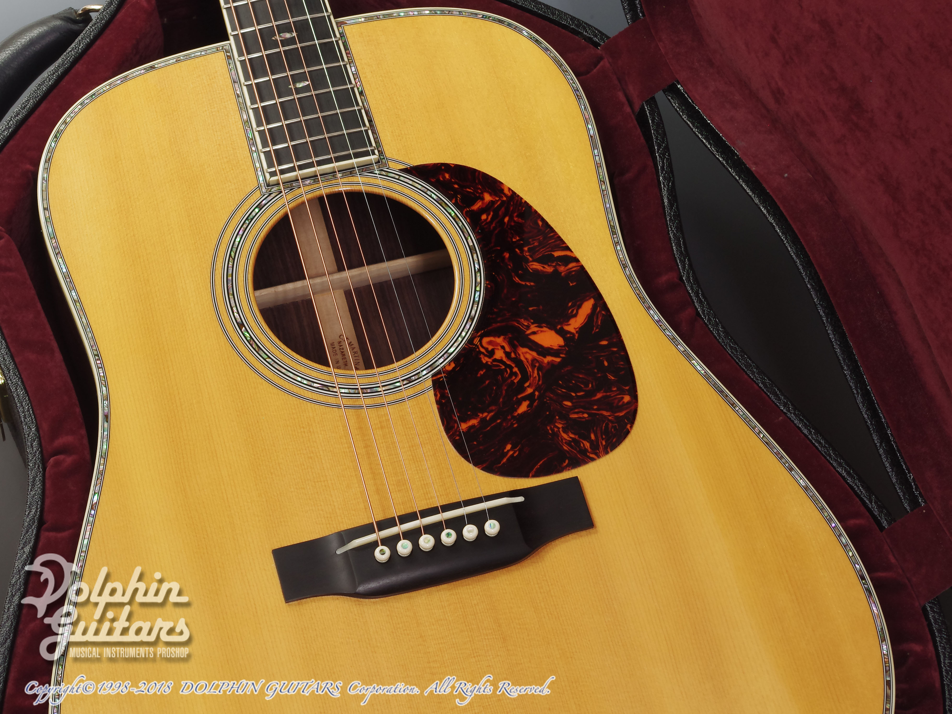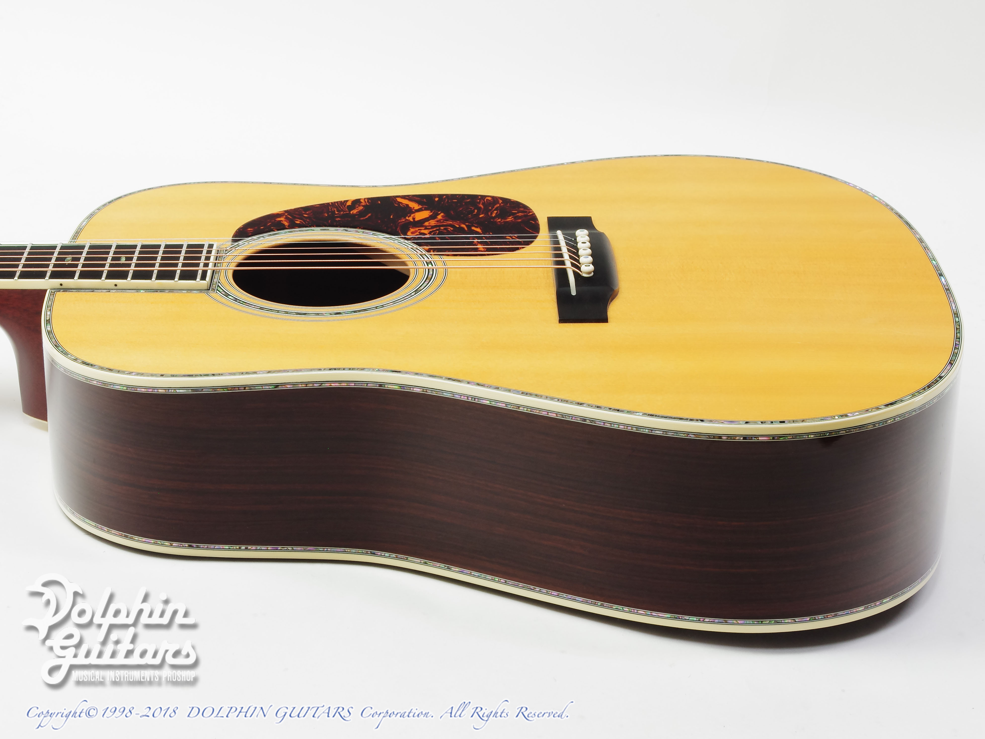 D-45は、文字通りマーティン・ドレッドノートの最高峰である。全ての面で最高の素材を使って作られ、製造工程における品質チェックも他のモデルに比べ一段と厳しいものになる。