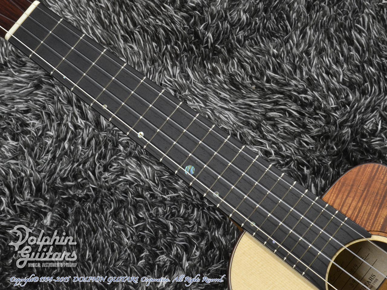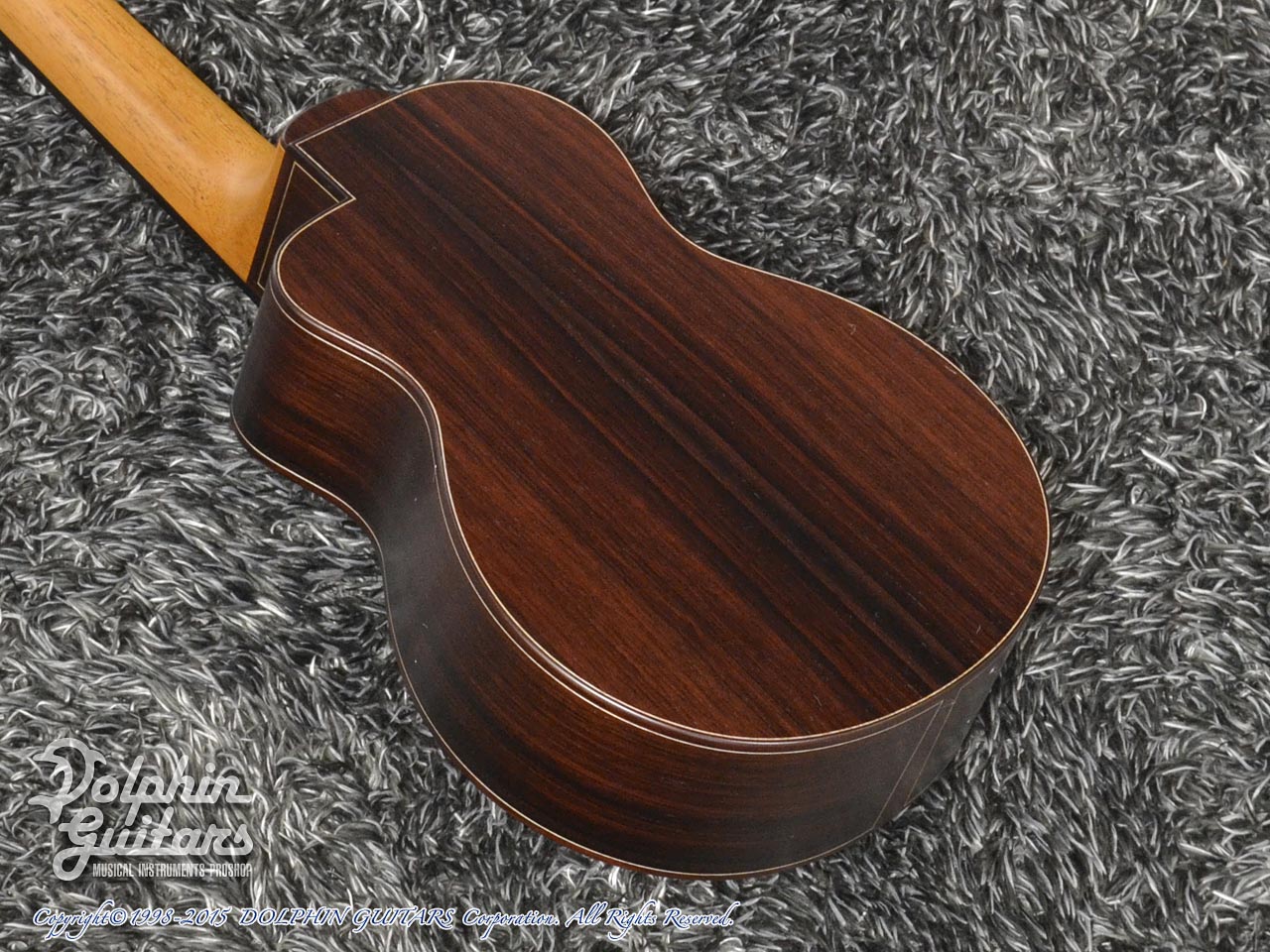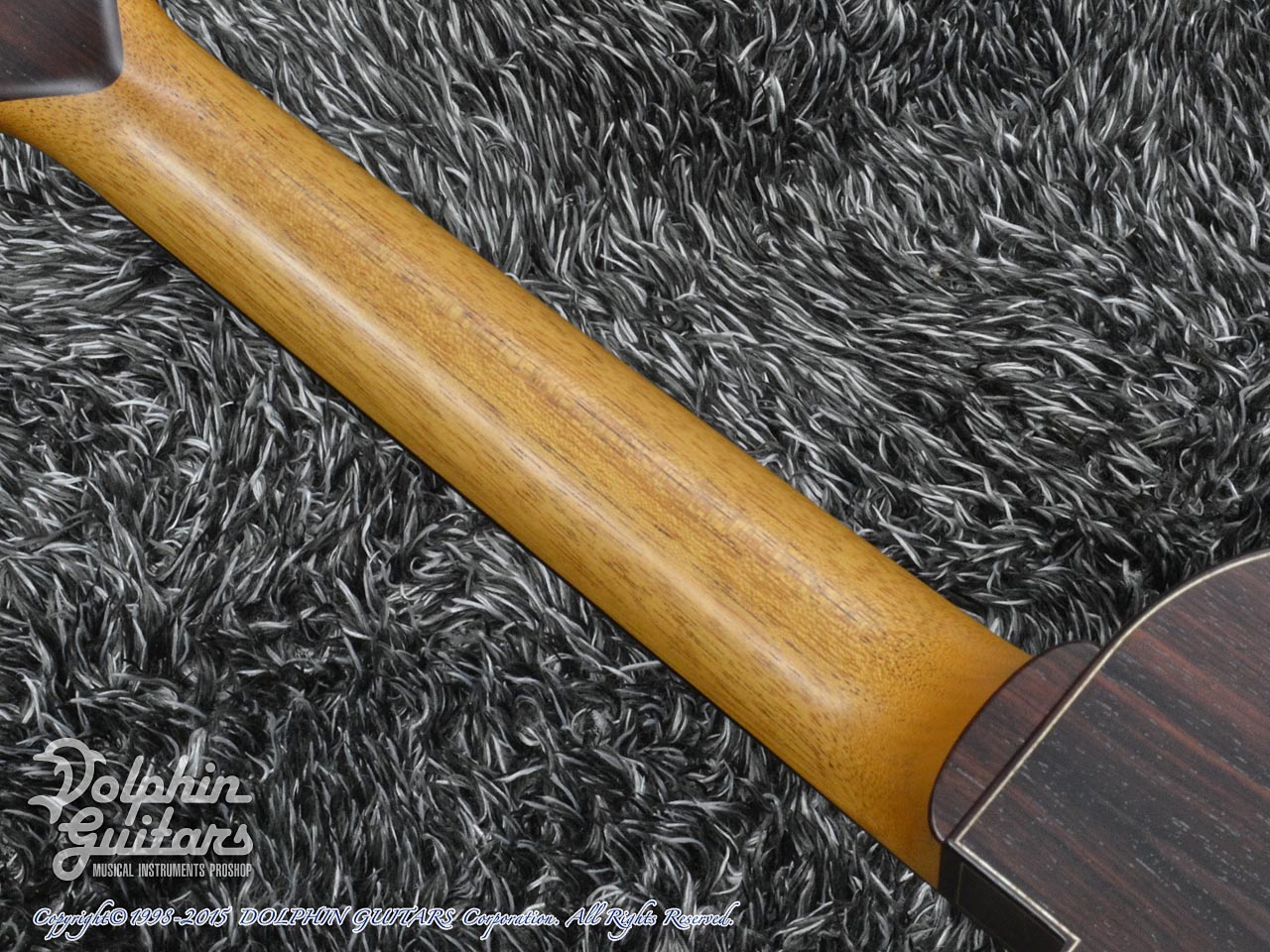 イングルマン・スプルーストップ、インディアン・ローズウッドサイド&バック、マホガニー・ネック、エボニー指板&駒、フレイムコア・ピックガード、ゴトー糸巻き。