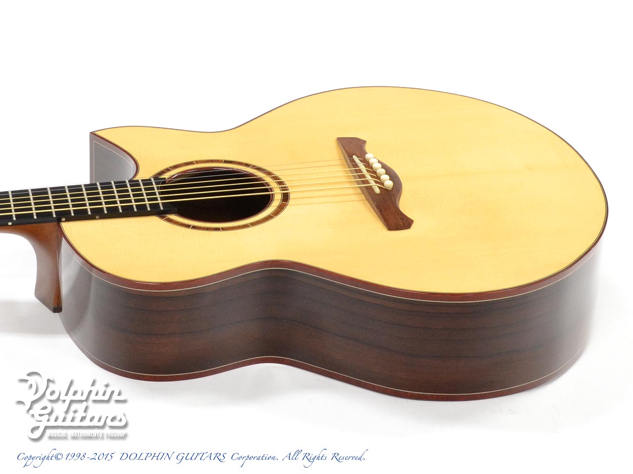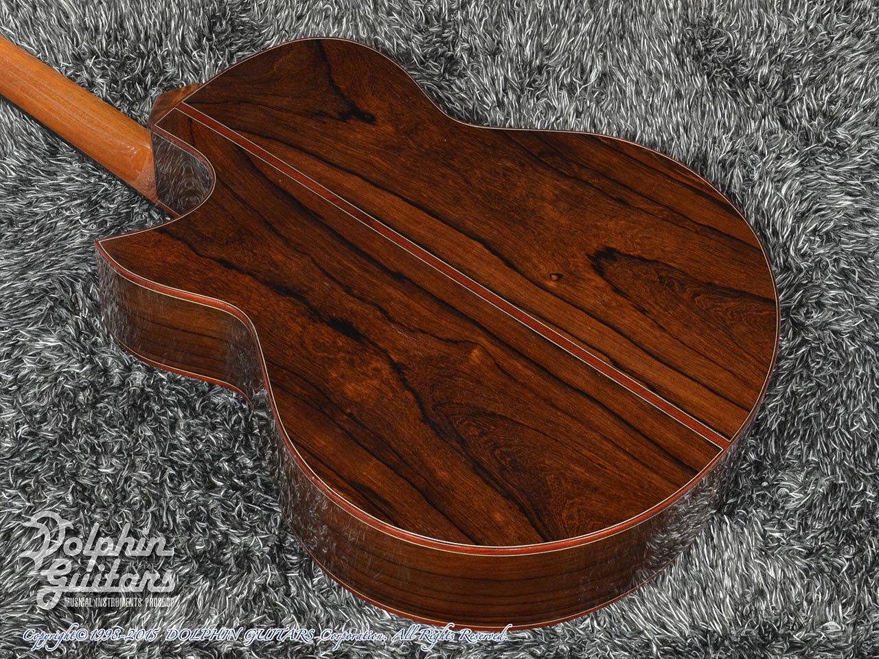ヨーロピアン・スプルーストップ、サイド&バックは上質なマダガスカル・ローズウッド、エボニー指板&マダガスカルローズウッド駒。