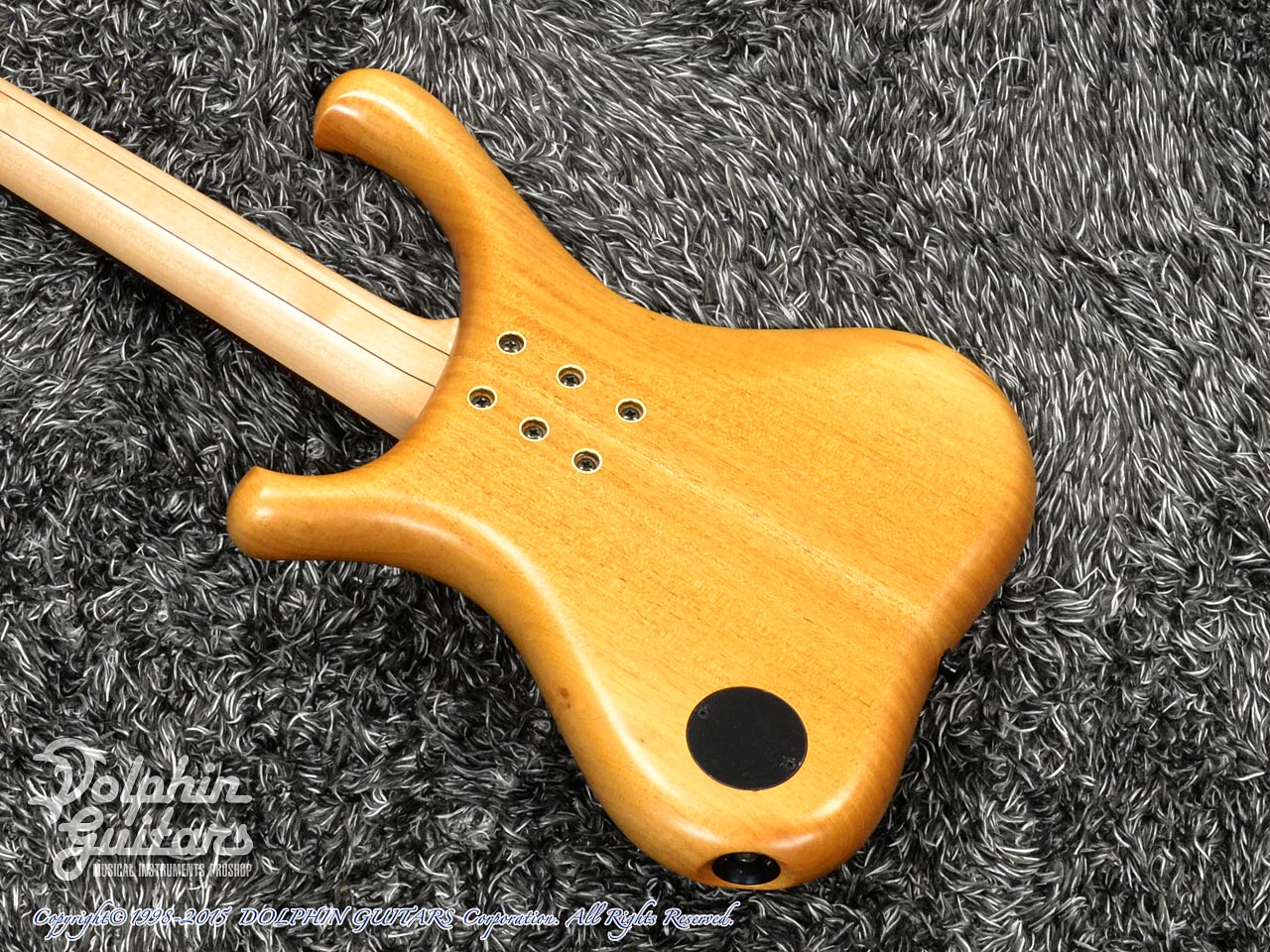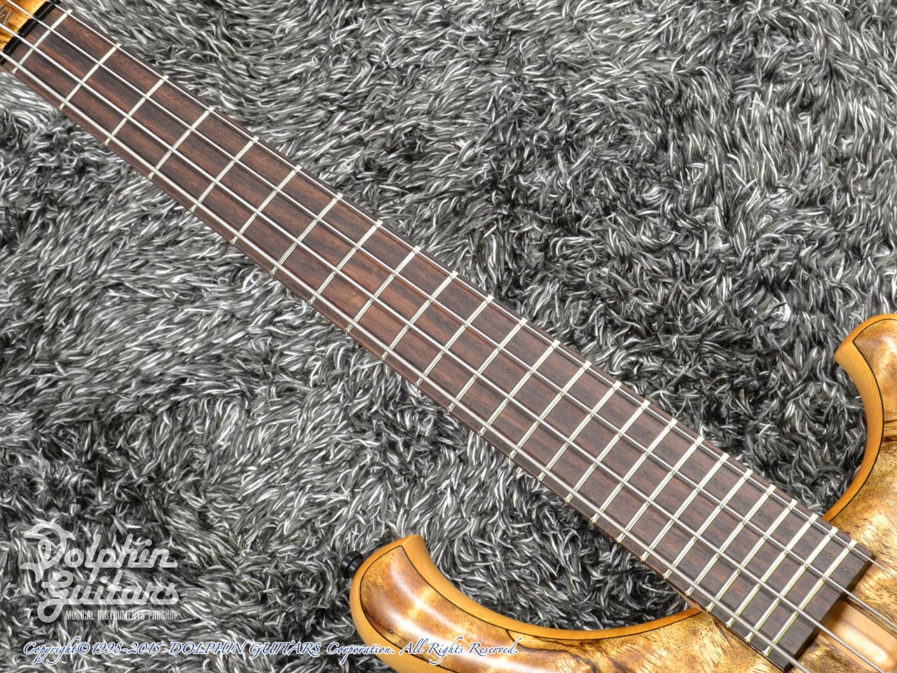 キルテッド・ホワイト・ブビンガ・トップ、マホガニー・バック、メイプル&ウェンジ5pネック、ローズウッド指板、シャーラー糸巻き、デラノ製ハムバッキングピックアップ。