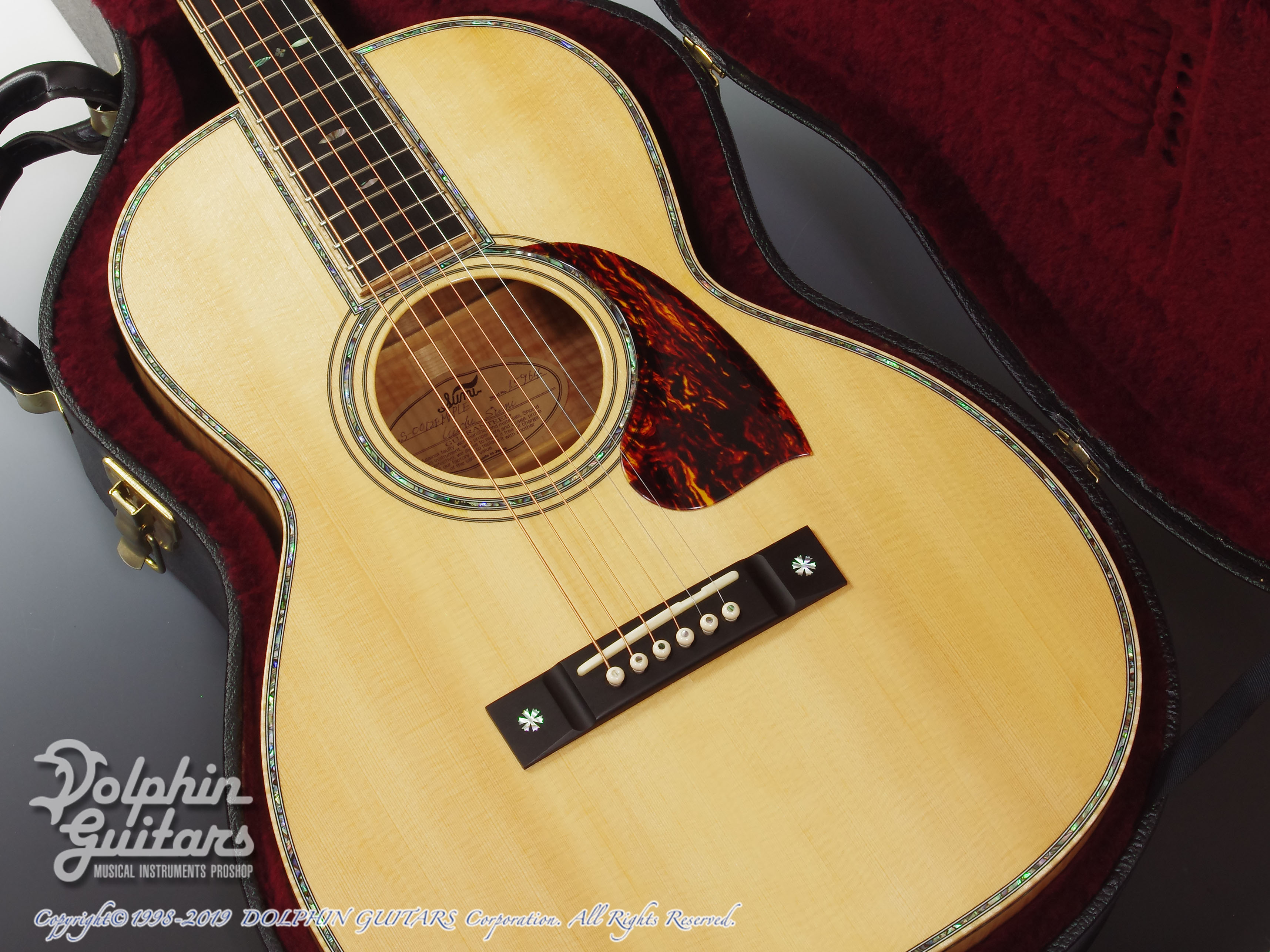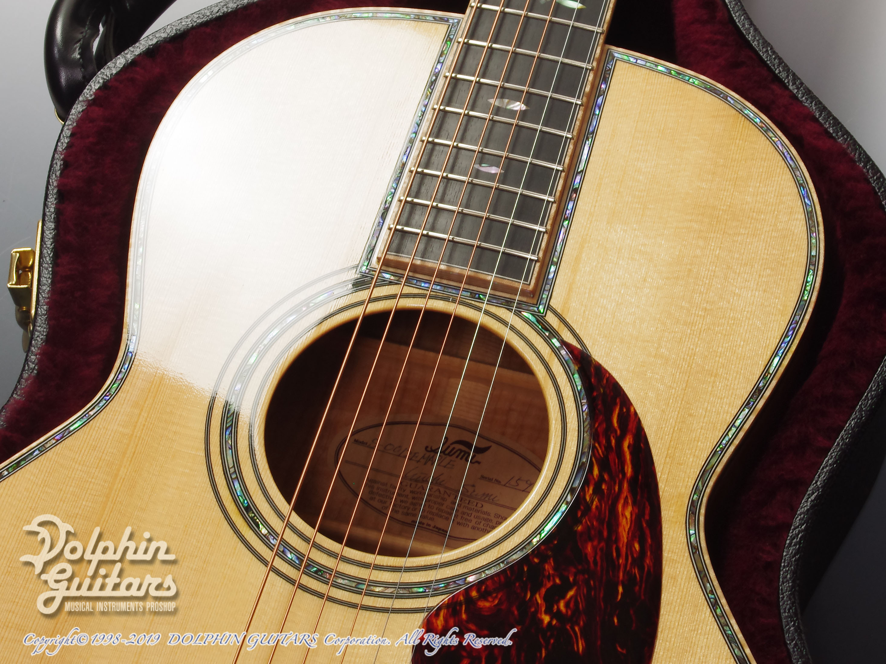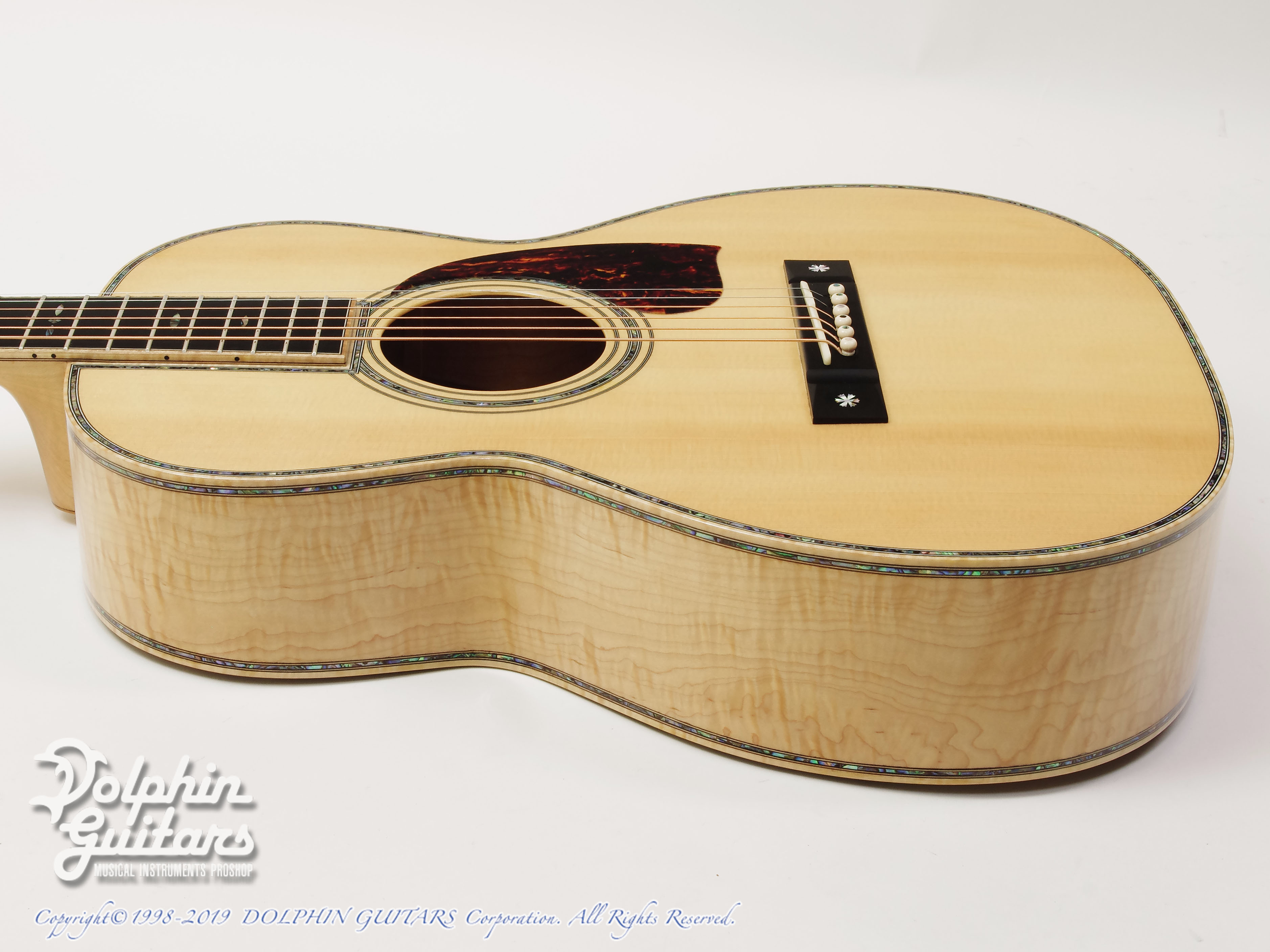 長野県の鷲見工房の00-45。エゾ松&フレイムメイプル仕様の"Style-45"極上USED品。