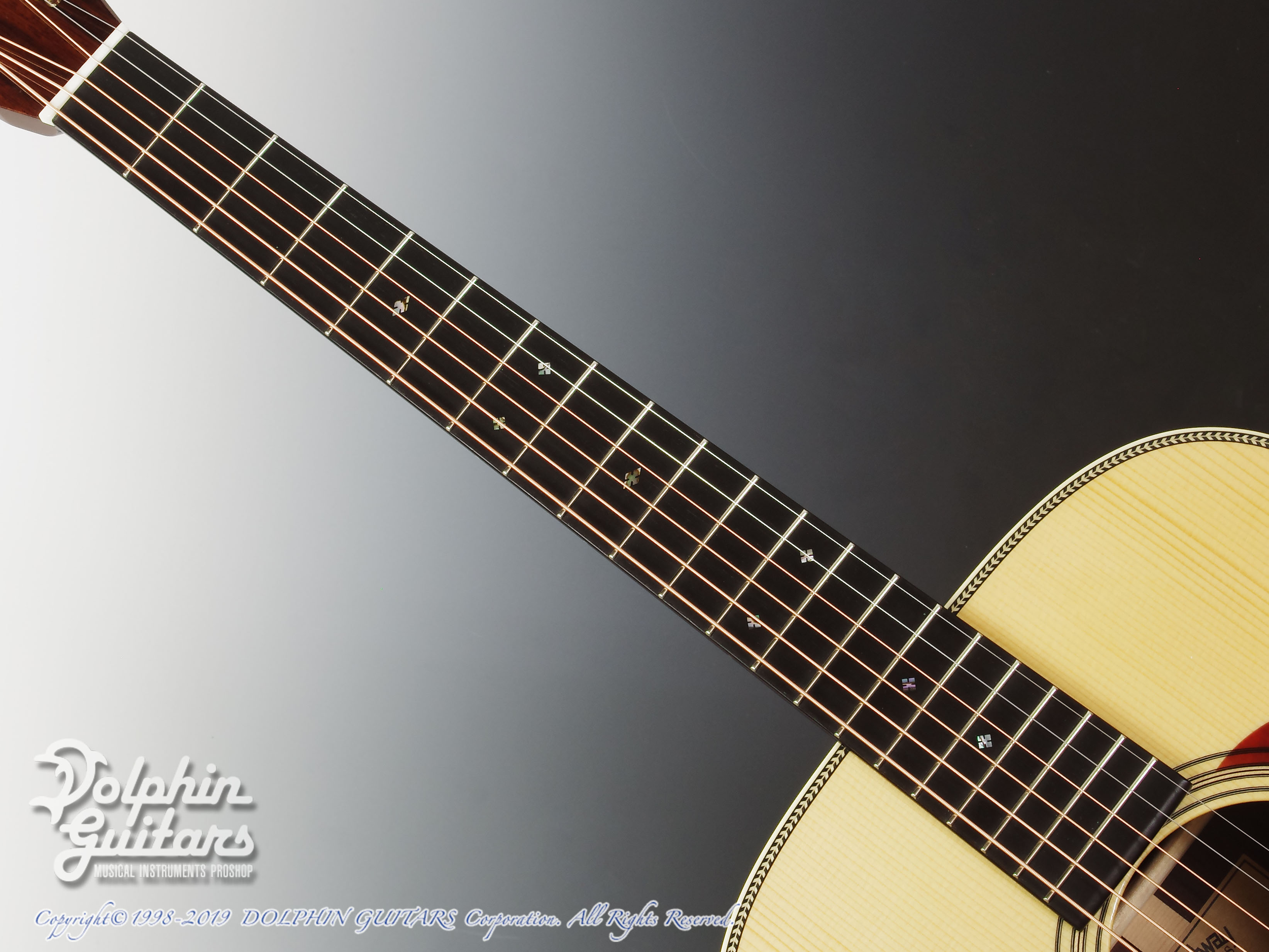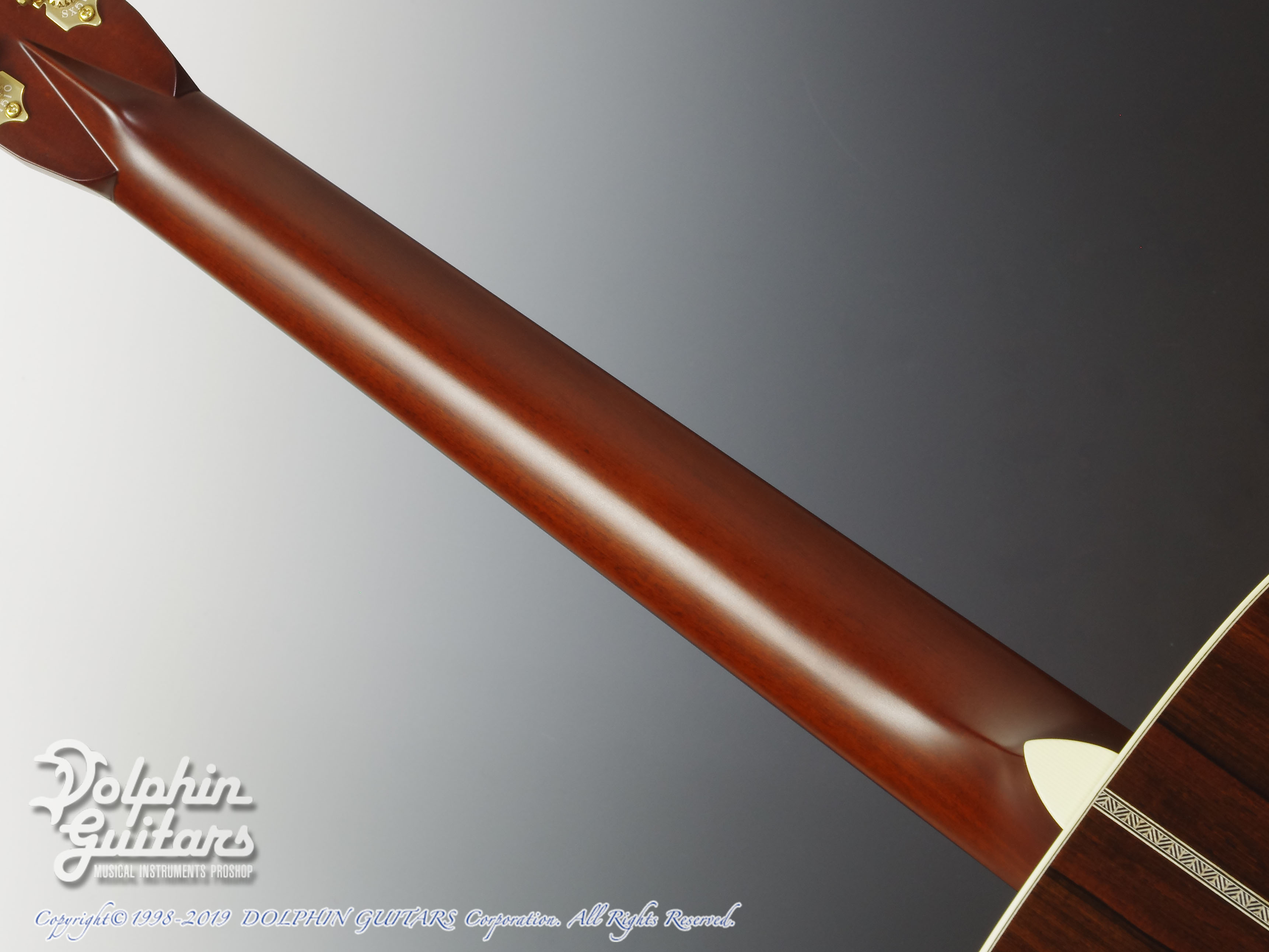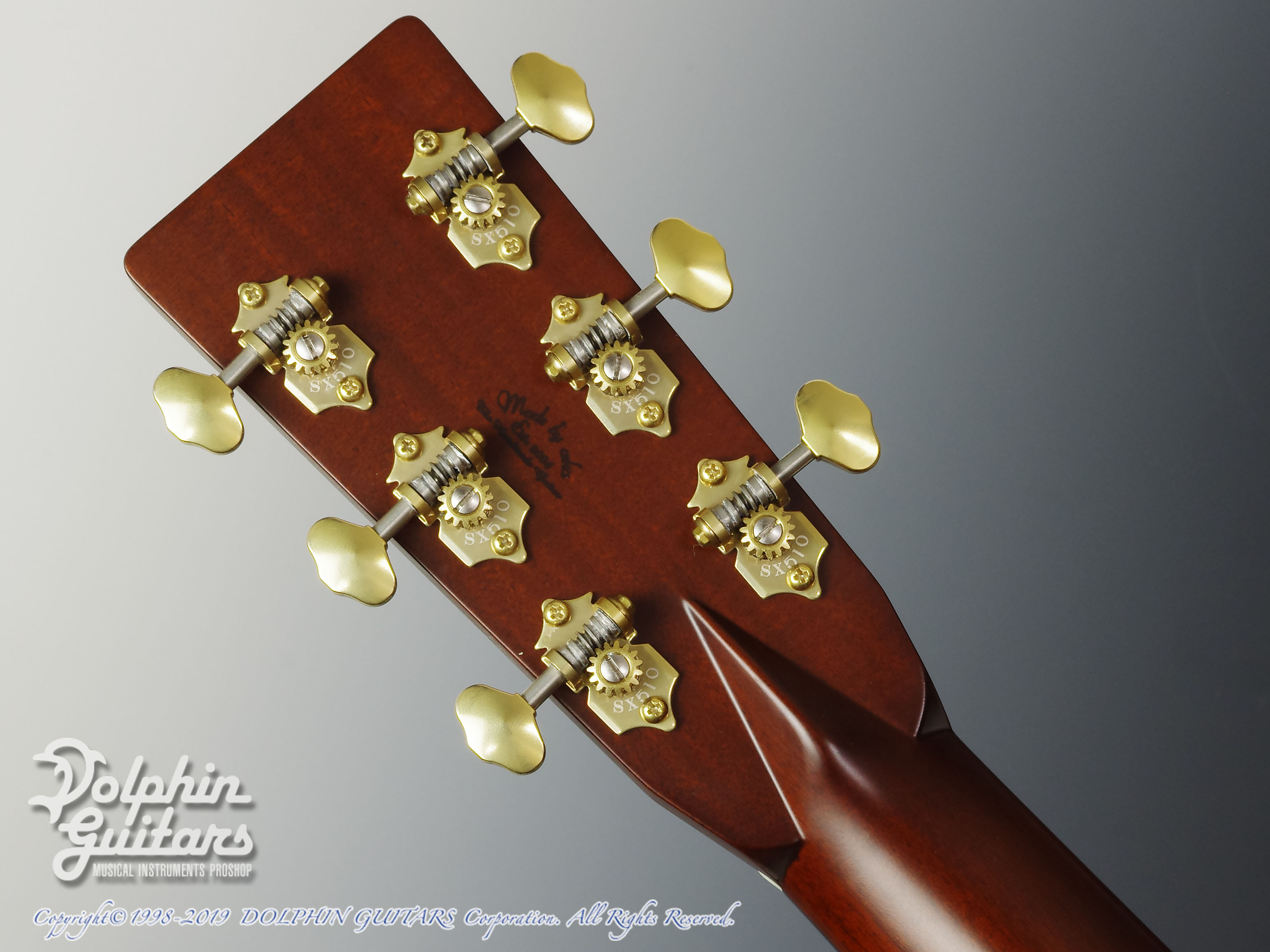 アディロンダック・スプルーストップ、マダガスカル・ローズウッドS&B、キューバン・マホガニー1ピース・ネック、エボニー指板&ブリッジ、ノンスキャロップドXブレイス、(アディロンダックブレイス材)、ロングサドル、ヘリンボーン、Gotohオープンバックペグ。