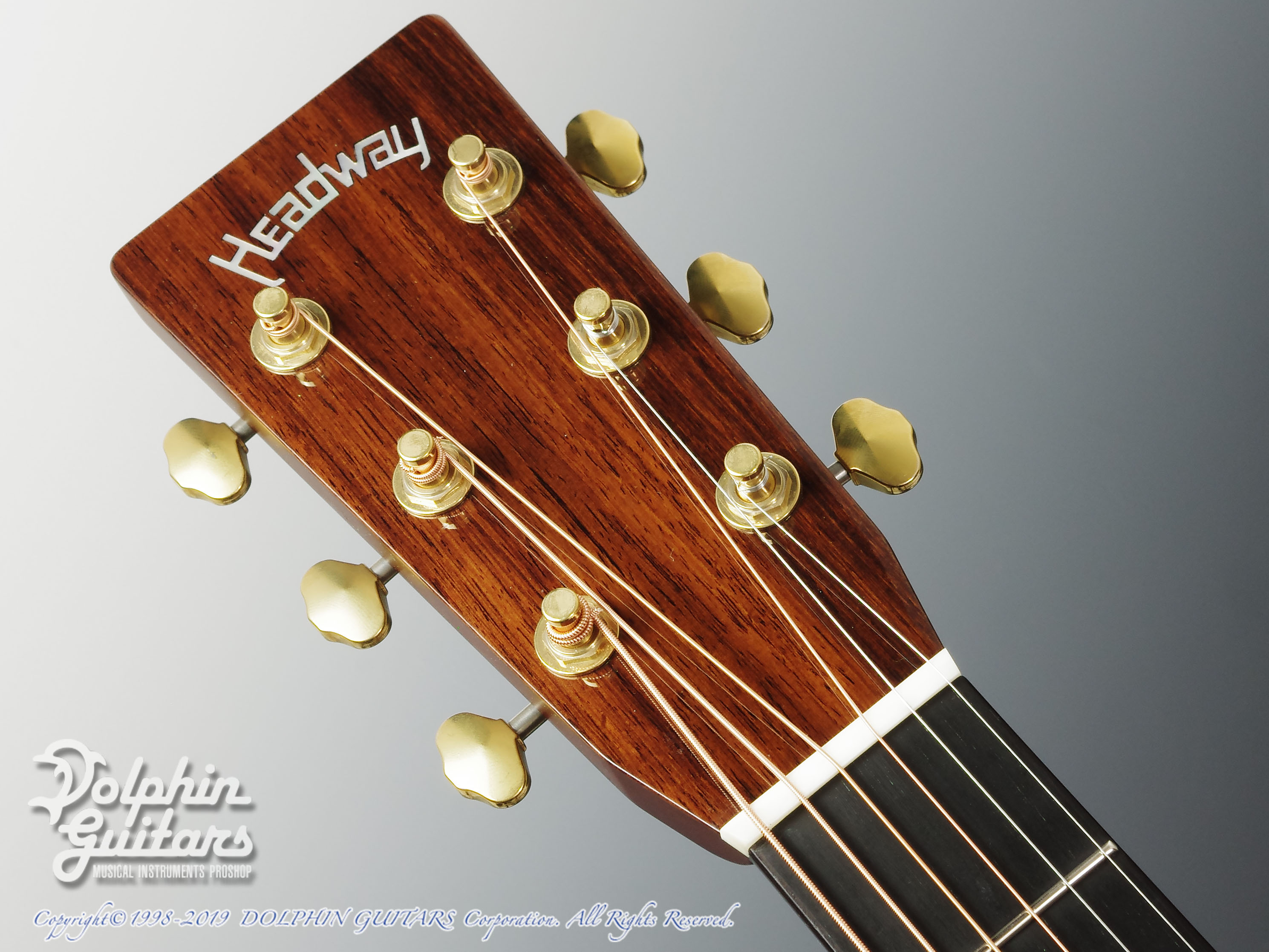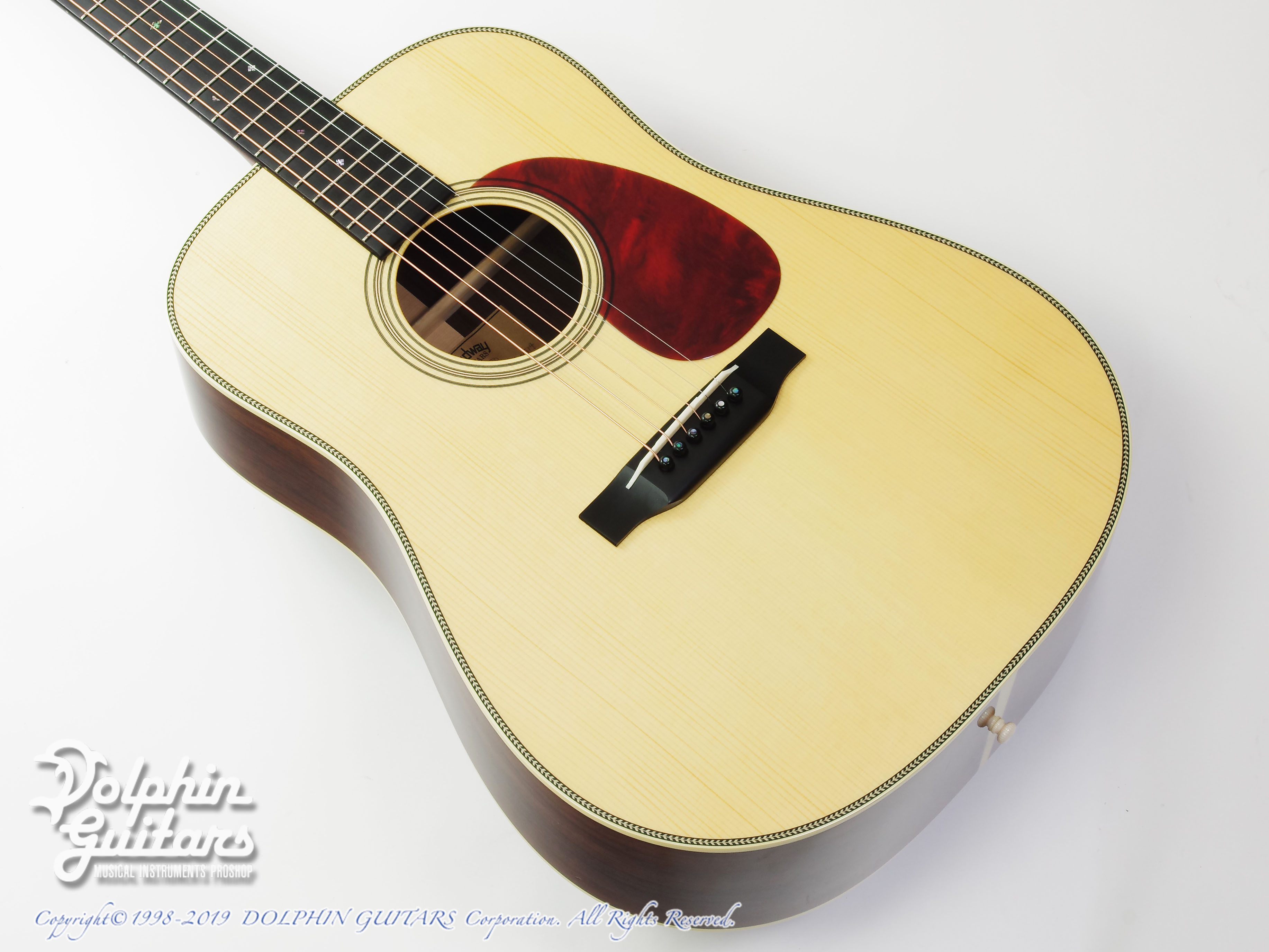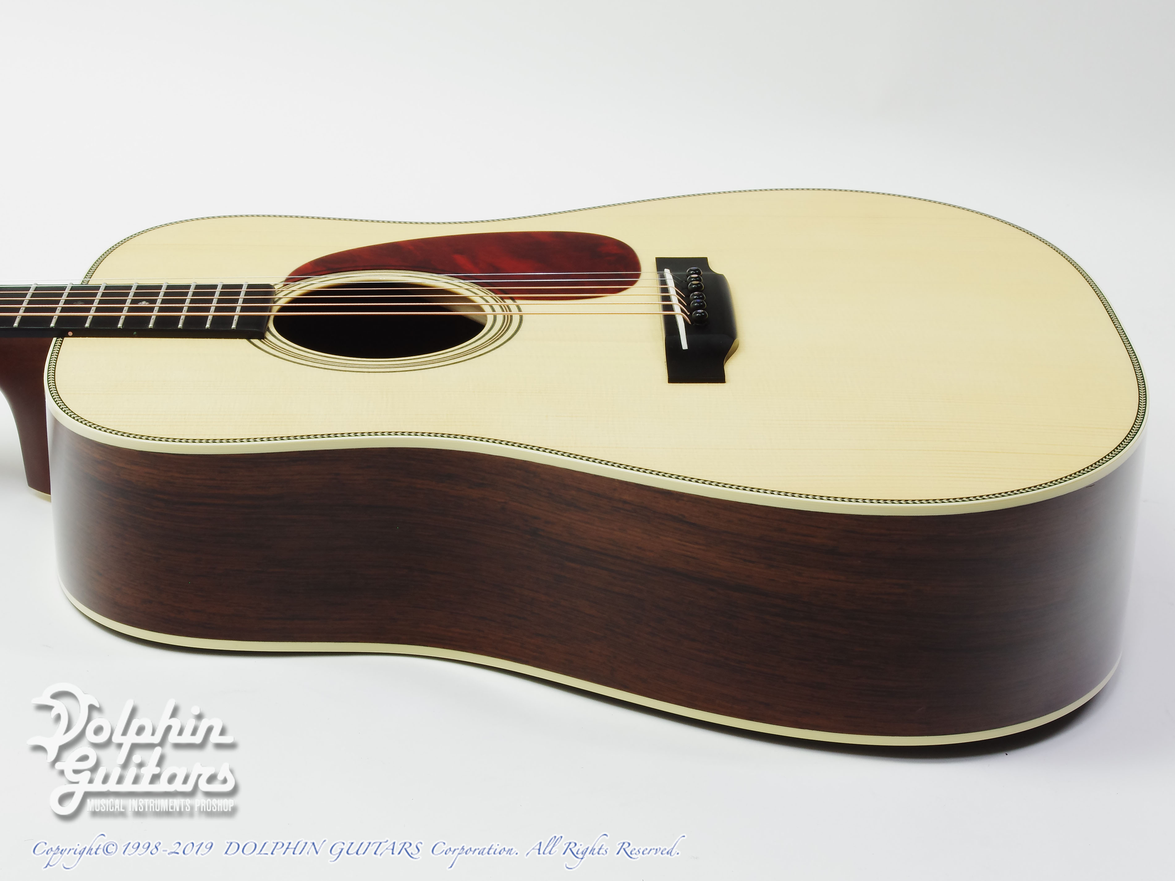 アディロンダック・スプルーストップ、マダガスカル・ローズウッドS&B、キューバン・マホガニー1ピース・ネック、エボニー指板&ブリッジ、ノンスキャロップドXブレイス、(アディロンダックブレイス材)、ロングサドル、ヘリンボーン、Gotohオープンバックペグ。