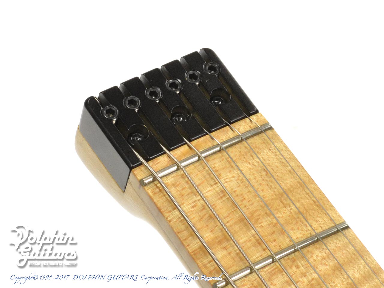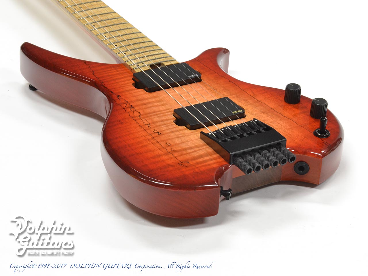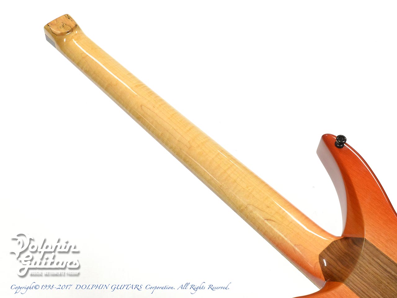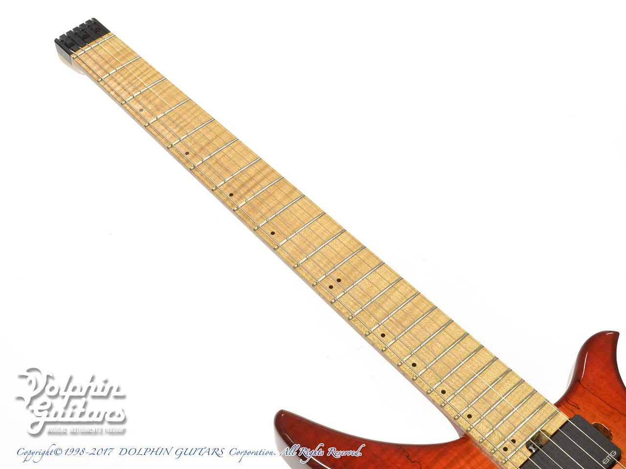 スポルテッド・メイプルトップ、マホガニーバック、カーリーメイプル&ローズウッド・ネック(ネックスルー)、カーリーメイプル指板、USA HIPSHOT製ヘッドレスユニット、EMG81(Neck)/ 85(Bridge)PU搭載。