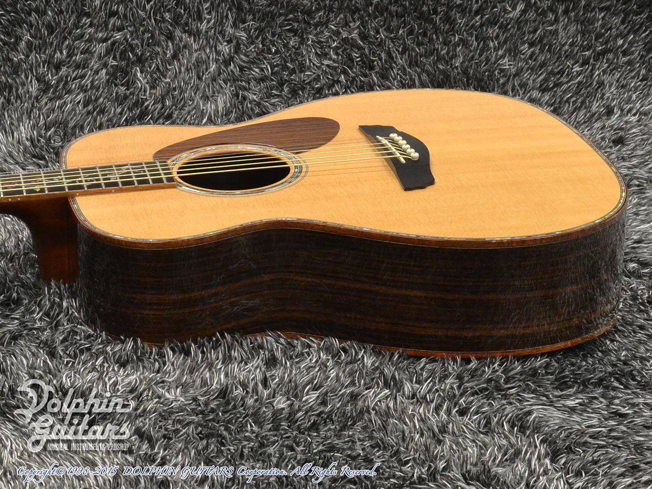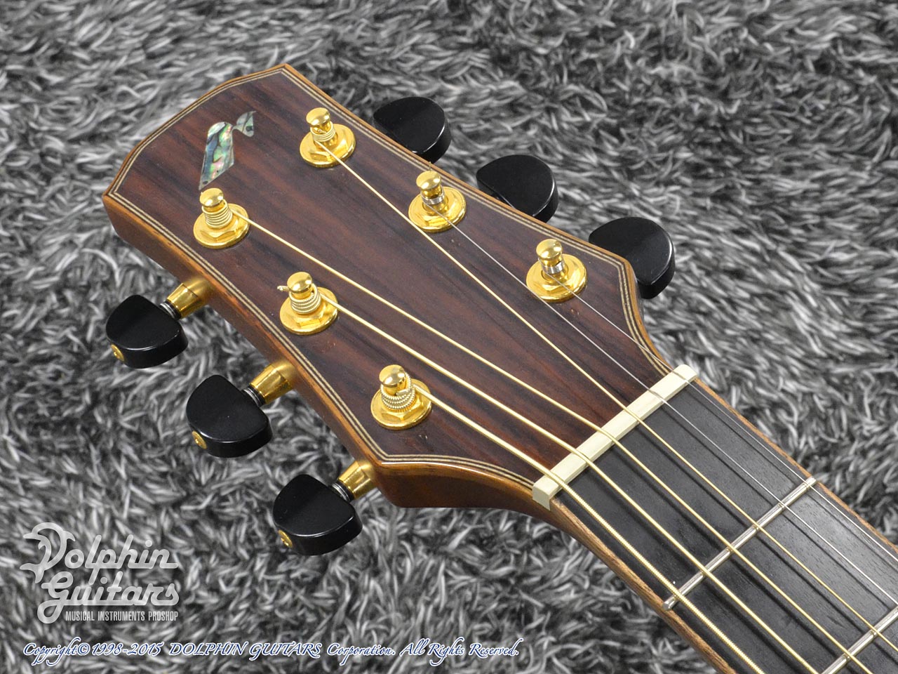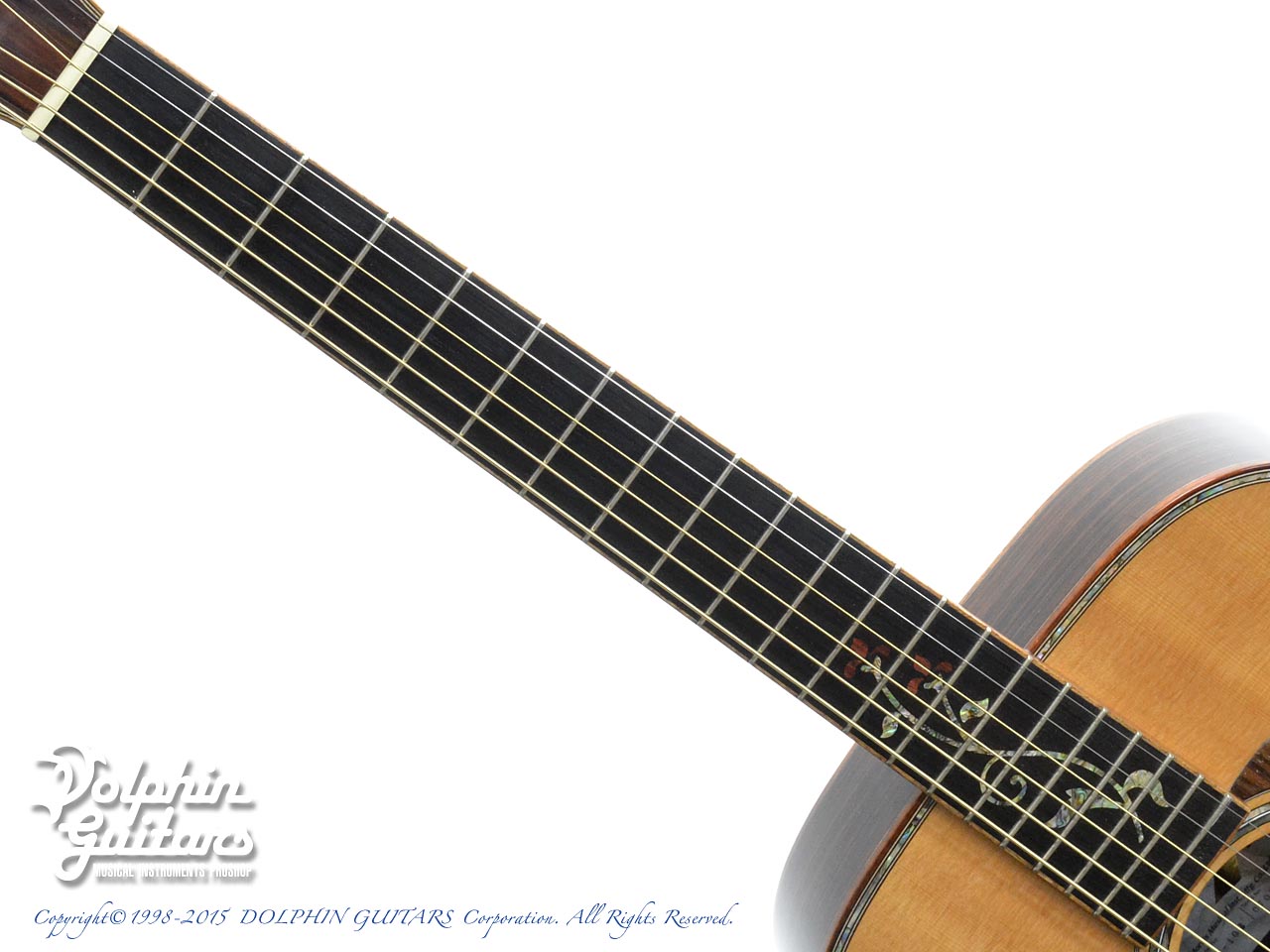 スプルース単板トップ、インディアンローズウッド単板サイド&バック、アバロン・ボディー・パーフリング&ダブル・アバロン・ロゼッタ、エボニー指板&駒、オリジナル糸巻き。