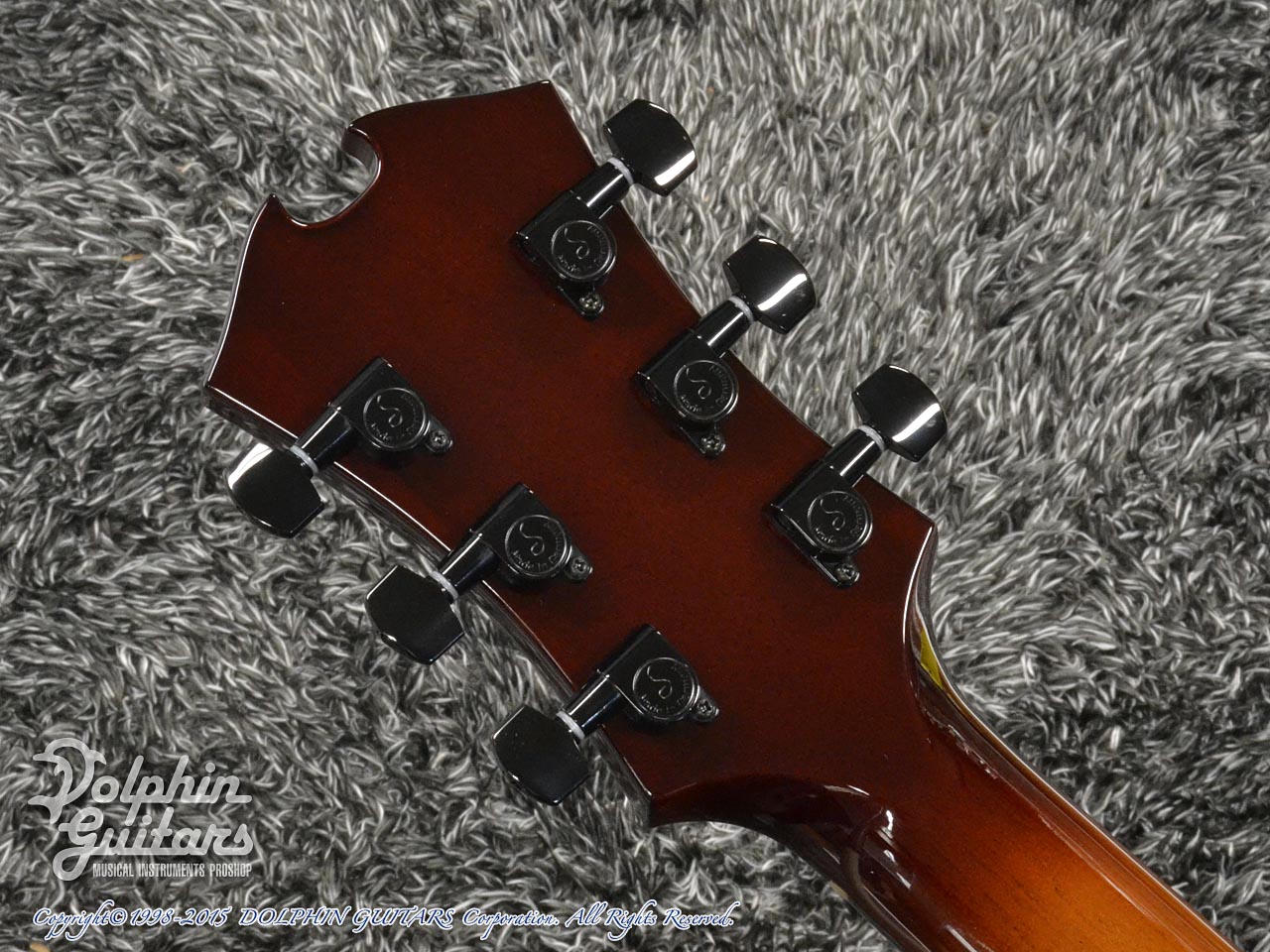 深みのあるホンジュラスマホガニーボディにサンバーストカラーが相まって非常に渋い雰囲気を醸し出しております。