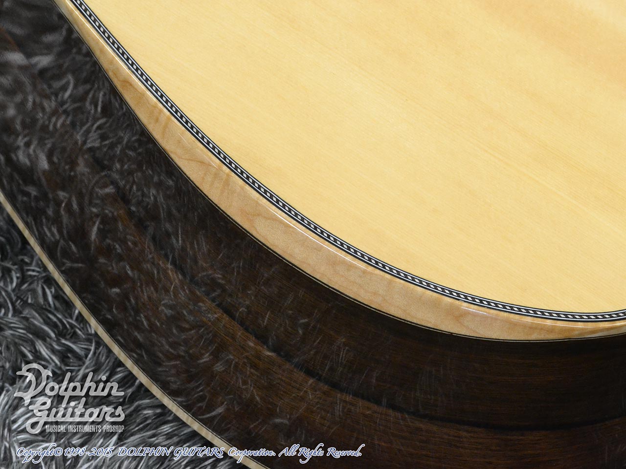 濃厚なサイドバックに映えるメイプルやロープ・パーフリングのセンスは鷲見ブランドならではの芸術性を感じます。