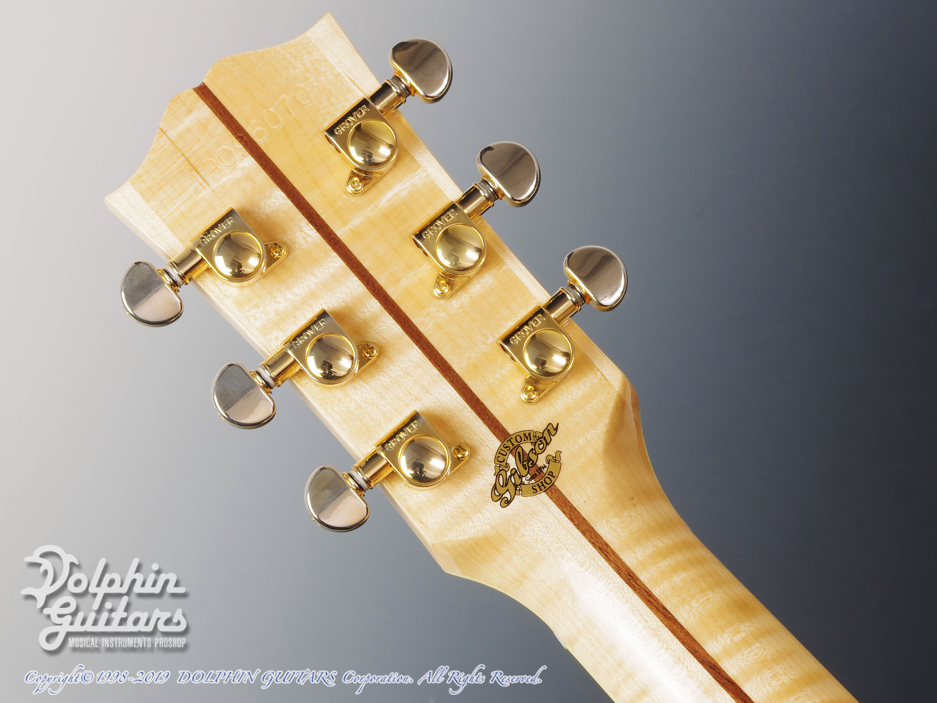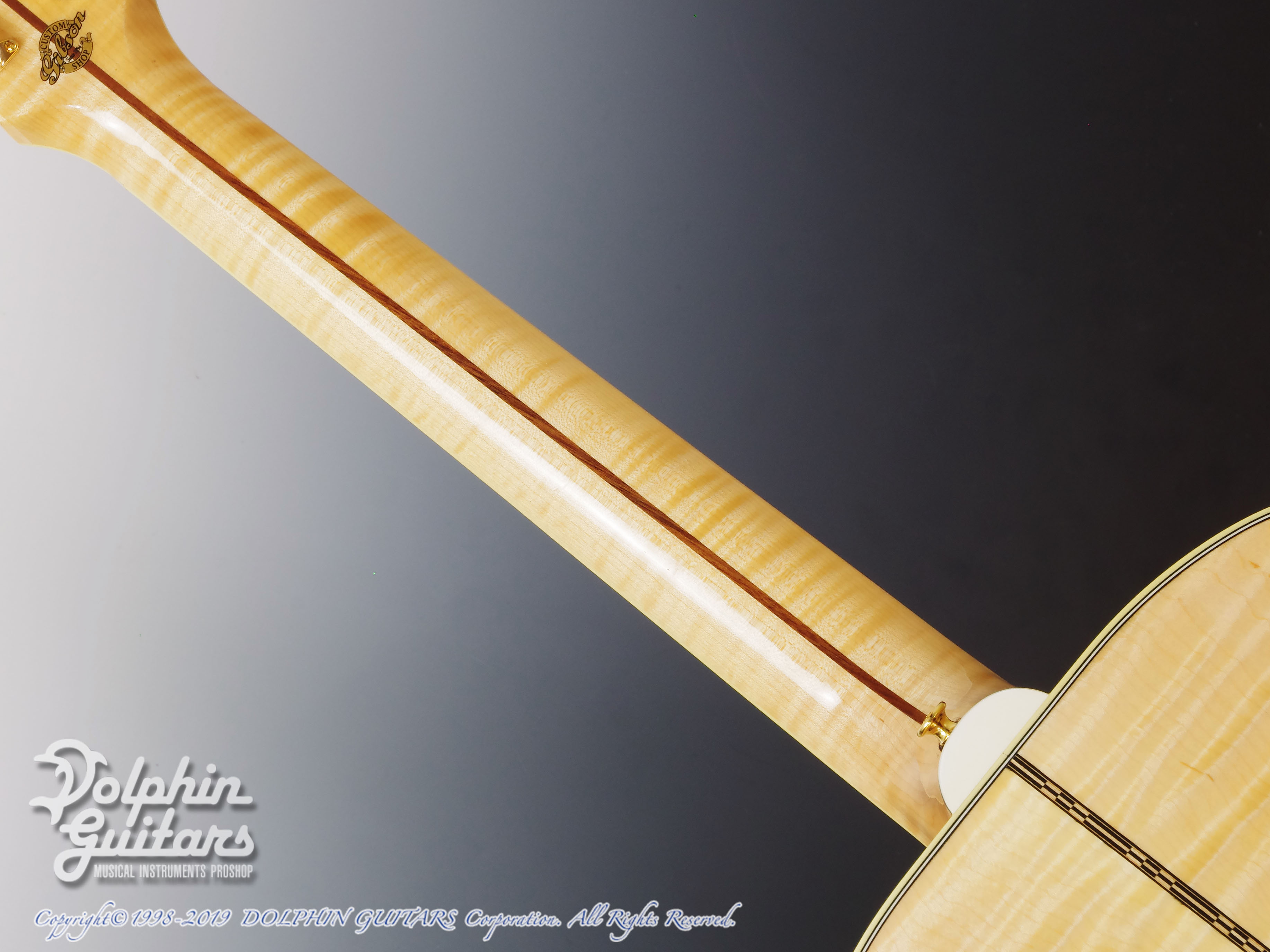 スプルーストップ、メイプルS&B、メイプルネック、スキャロップドXブレイシング、ムスタッシュブリッジ、ローズウッド指板、628mmスケール、グローバーペグ、LR Baggs Element PU標準搭載。