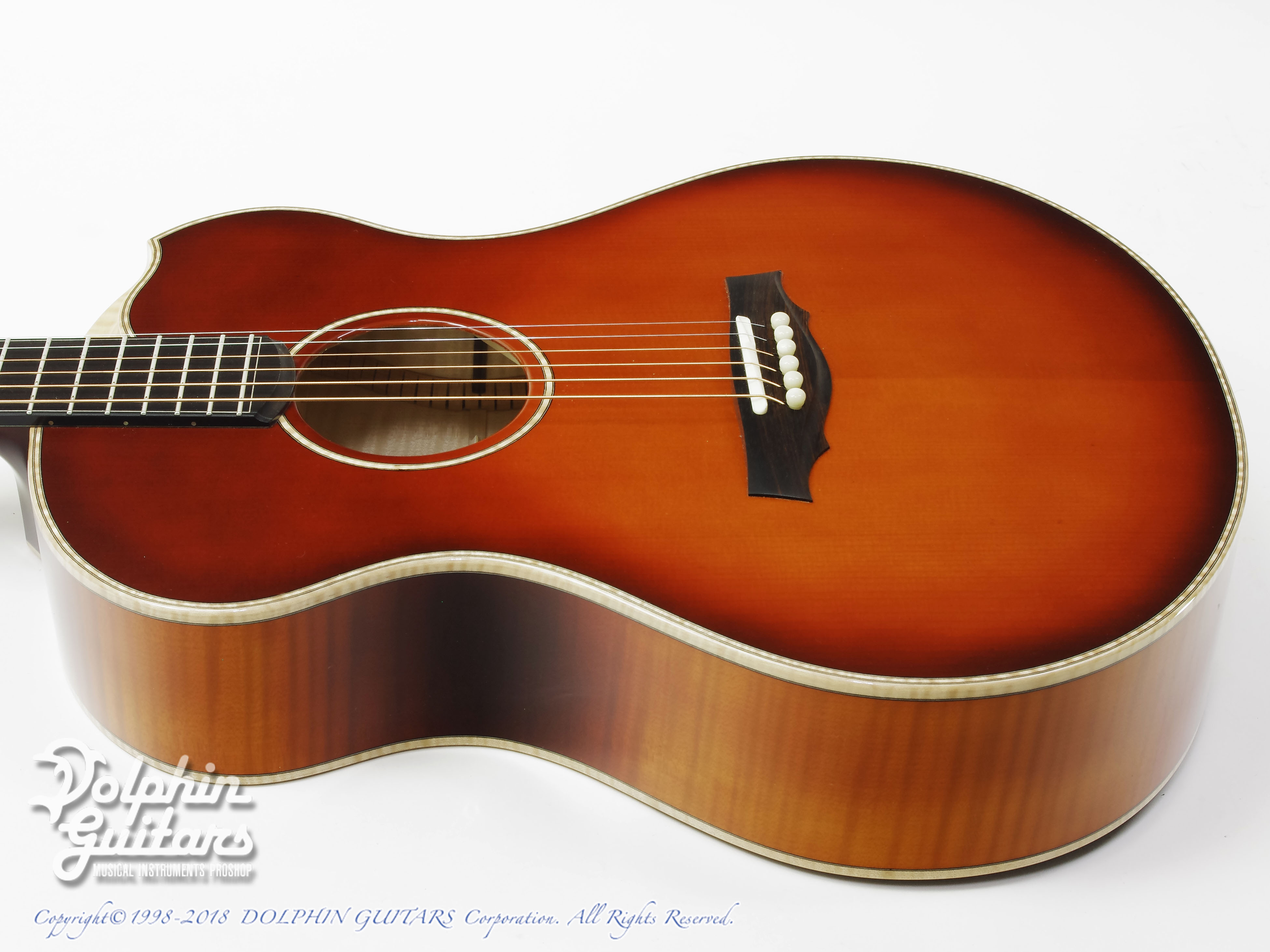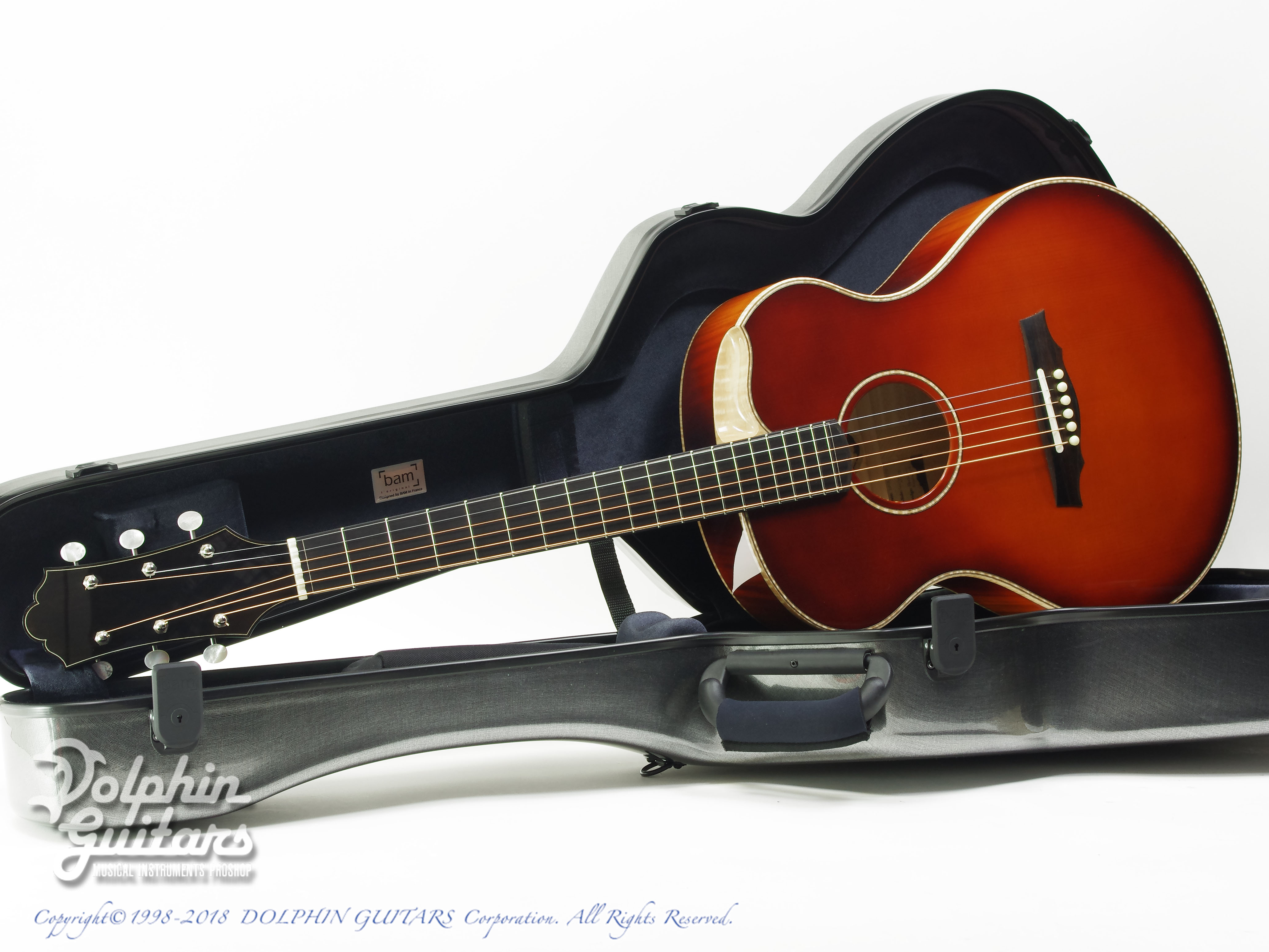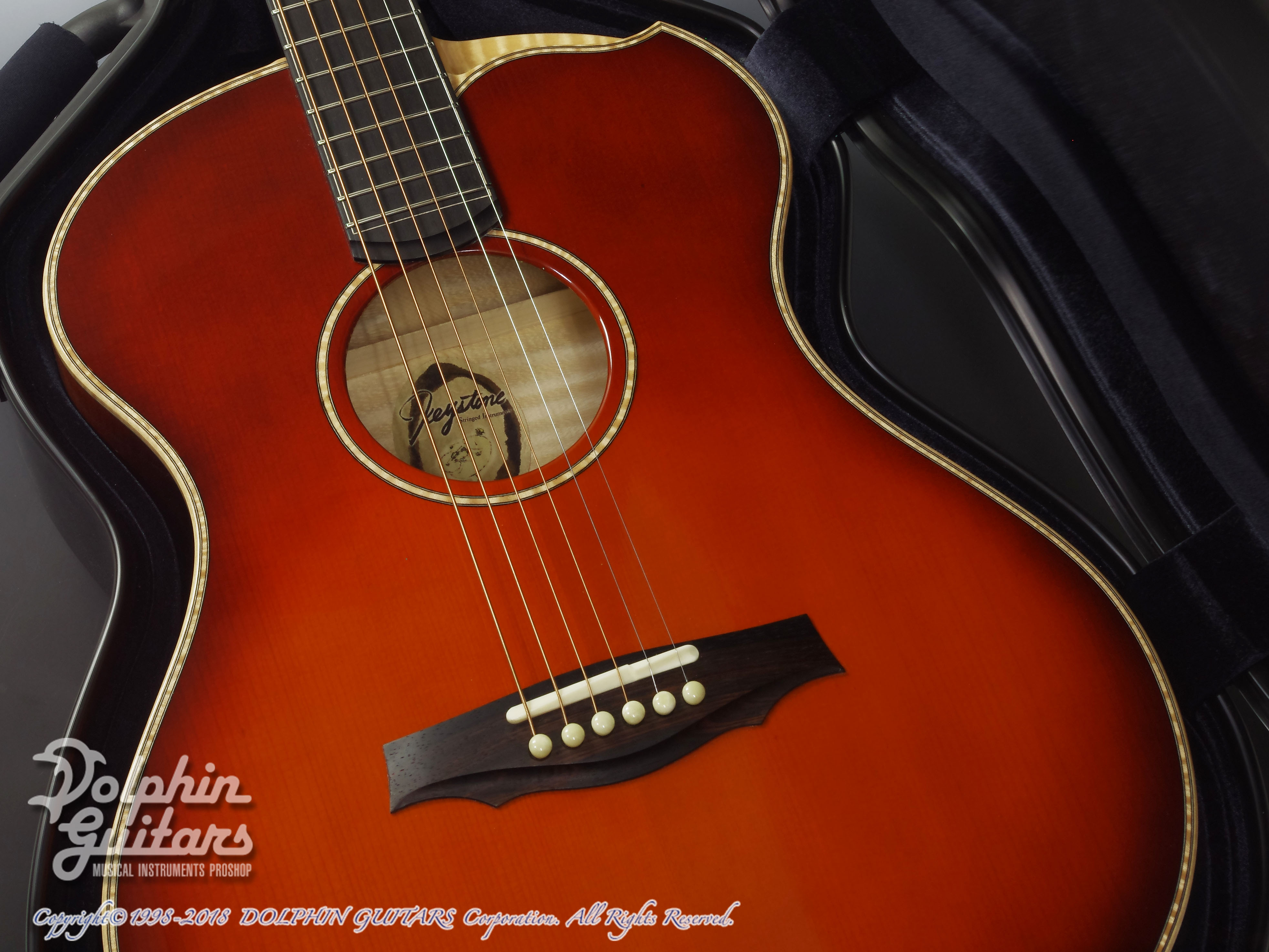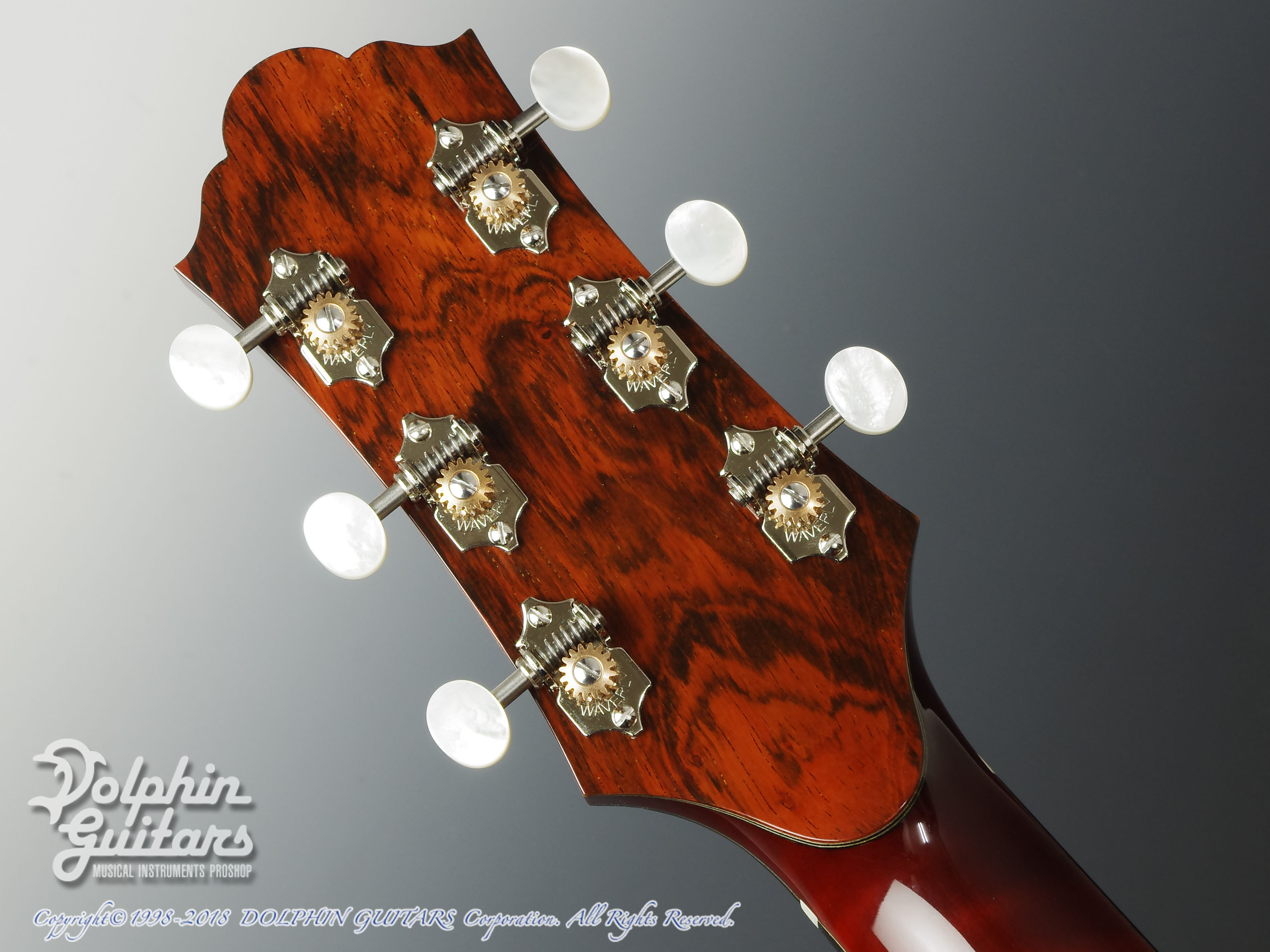 アディロンダック・スプルーストップ、スイス・メイプルS&B、スキャロップドXブレイス、メイプル1pネック、エボニー指板、ハカランダブリッジ、メイプルバインディング、スコープド・カッタウェイ、オールサンバーストフィニッシュ。