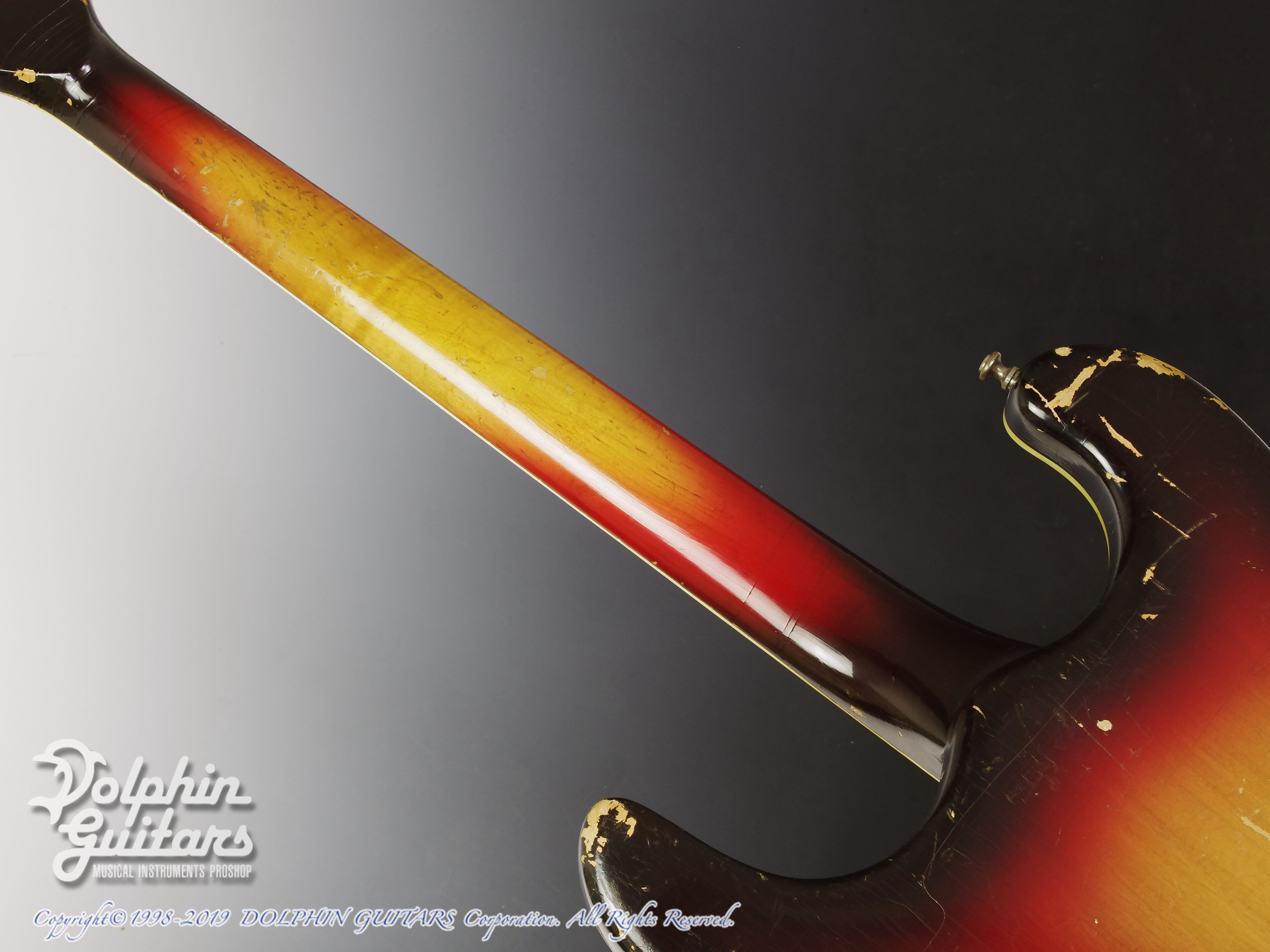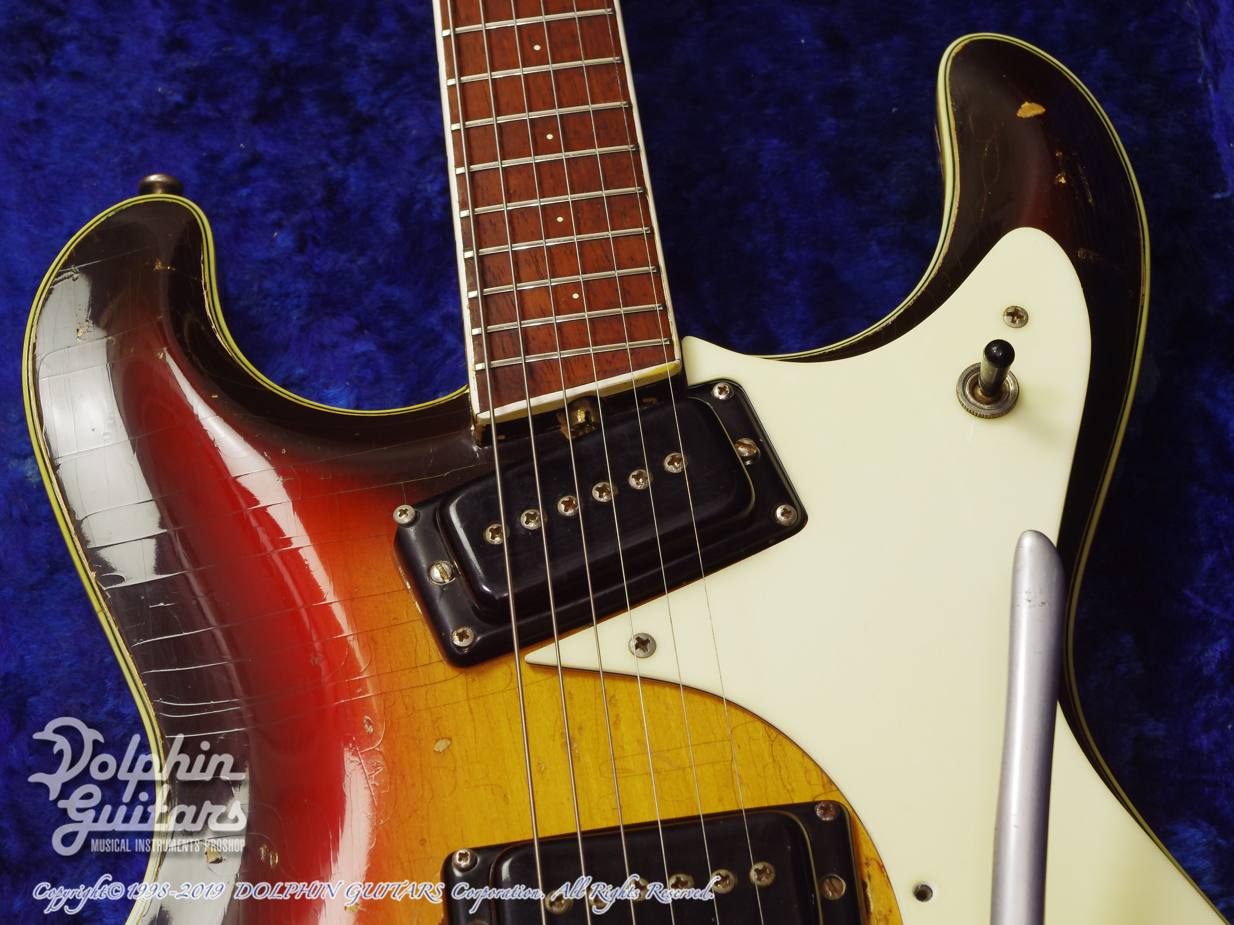 個性的なボディやヘッドシェイプに、色濃く残るサンバーストのグラデーションと金属パーツの絶妙なコントラストなど独特なオーラを放っております。