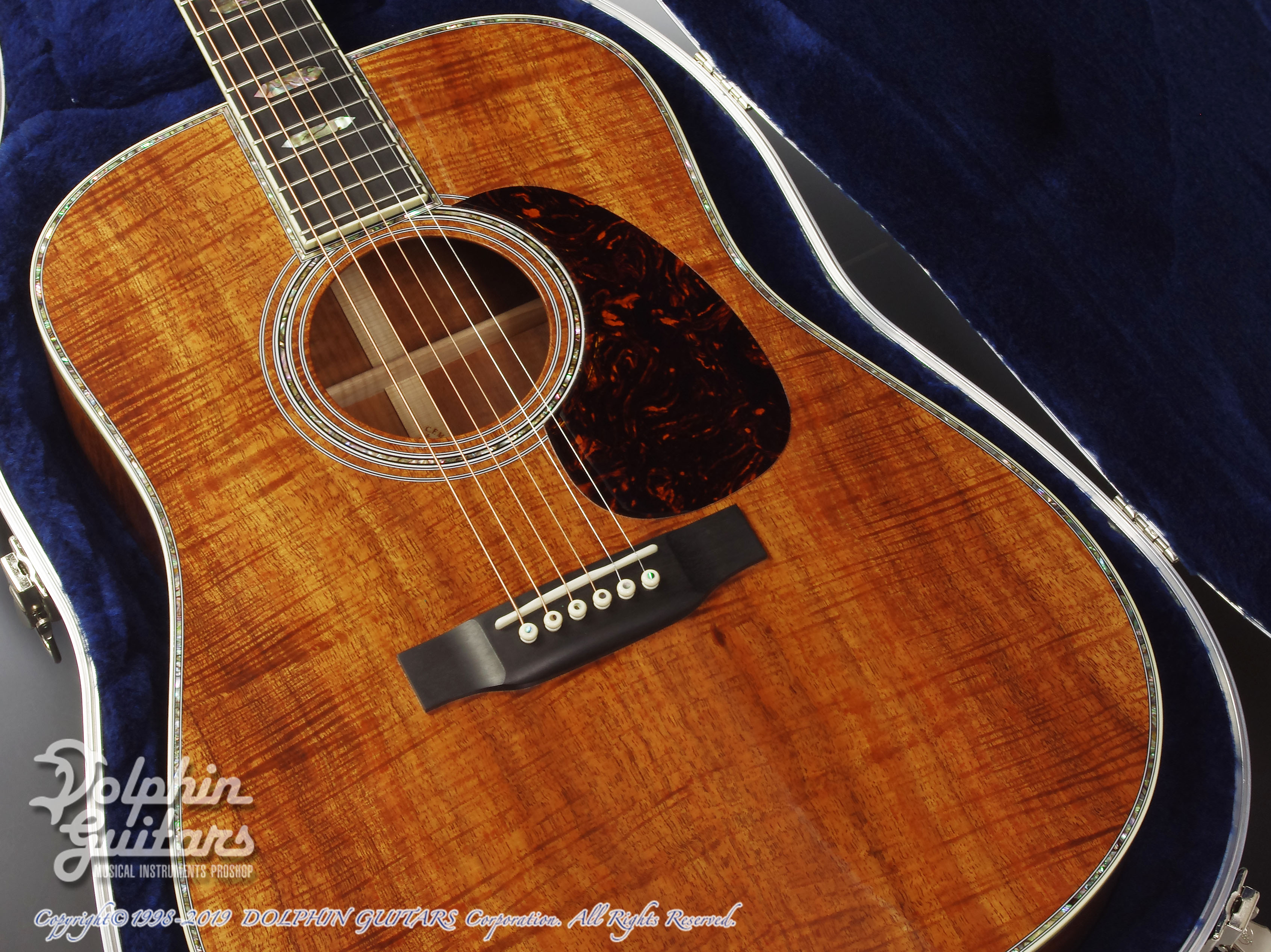 マーティンの最高峰『D-45』に極上のフレイムが入ったコア材をボディにセレクトした、カスタムショップ製D-45 (All Koawood)のUSED品。