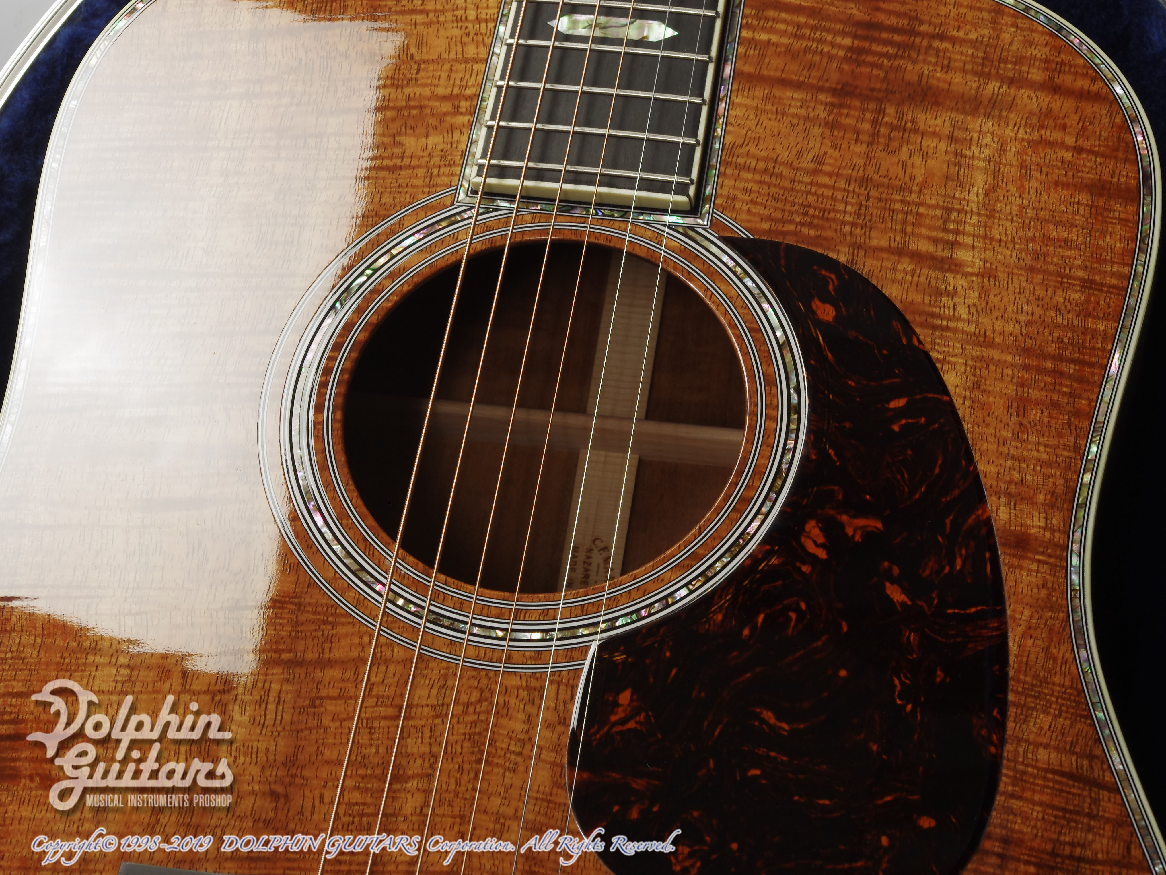 スキャロップドXブレイス仕様によるサウンドは素晴らしいサウンドバランス、レスポンスの良さ、コアならではの色鮮やかな音色と、ドレットノートシェイプの豊かなボリュームと絶妙にマッチし、弾いた瞬間に惹きこまれるようなギターです。そして優美な装飾は、スペックだけでは語る事が出来ない存在感を醸し出しています。