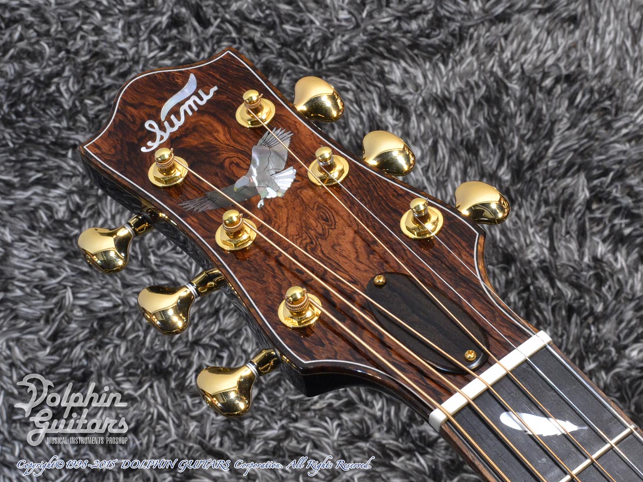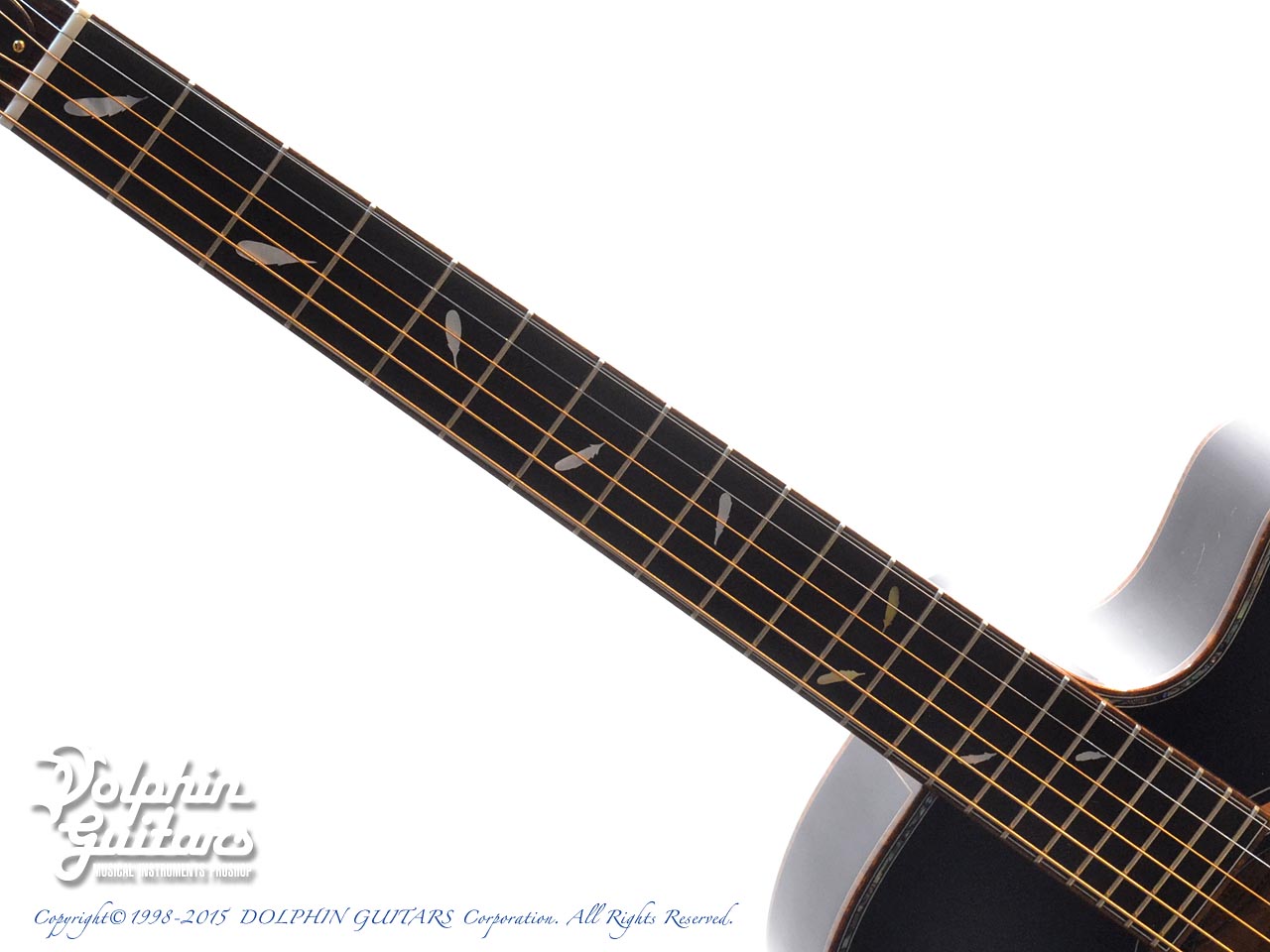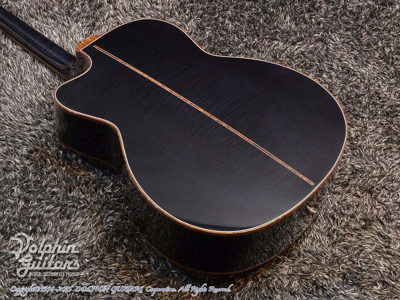 スプルース・トップ、フレイム・メイプル・サイド、バック&ネック、エボニー指板&駒、アームレスト、コアバインディング、イーグル&フェザーインレイ。
