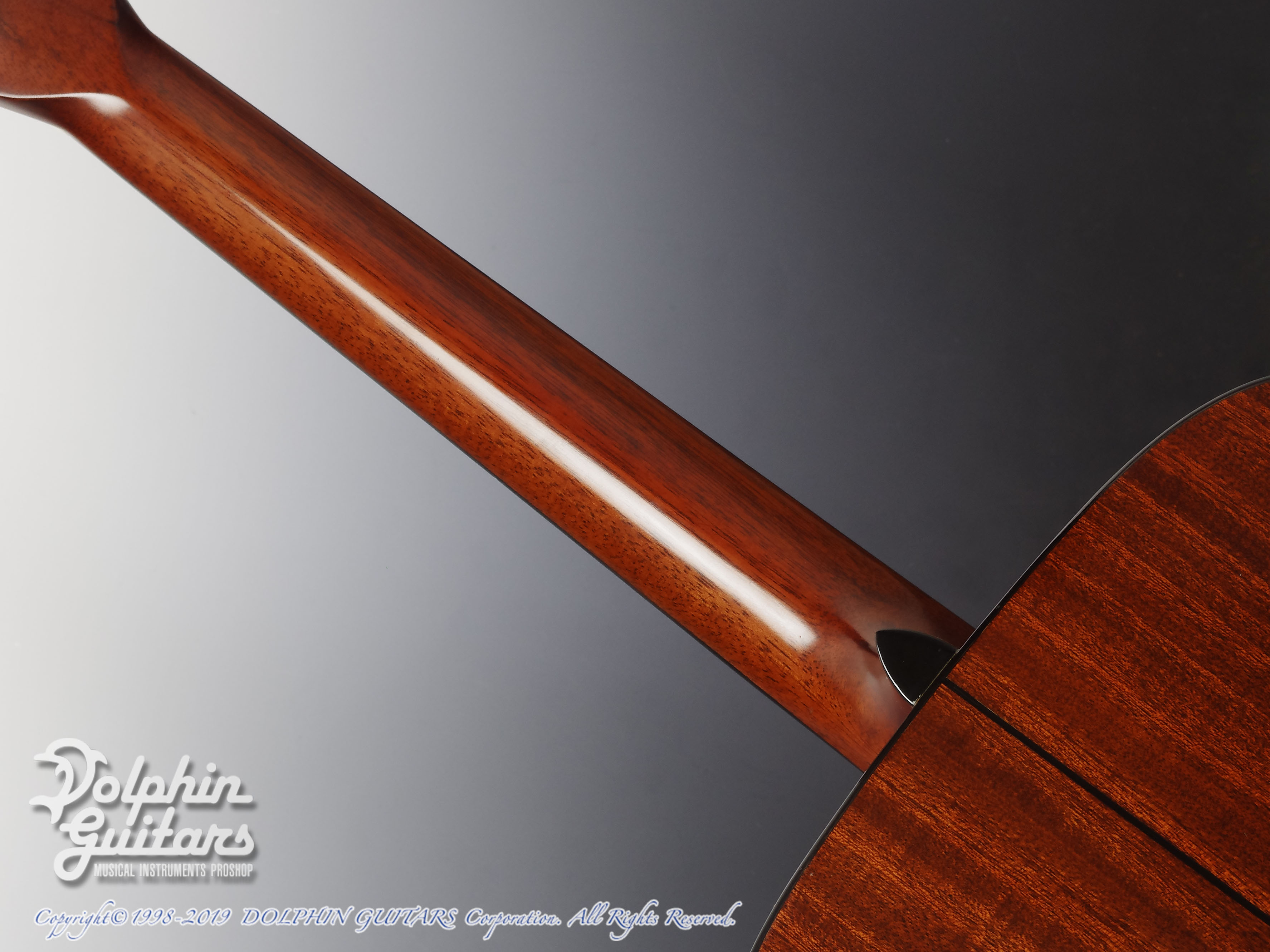 スプルーストップ、マホガニーS&B、マホガニーネック、エボニー指板&ブリッジ、43mmナット、645mmスケール、グローヴァーペグ。