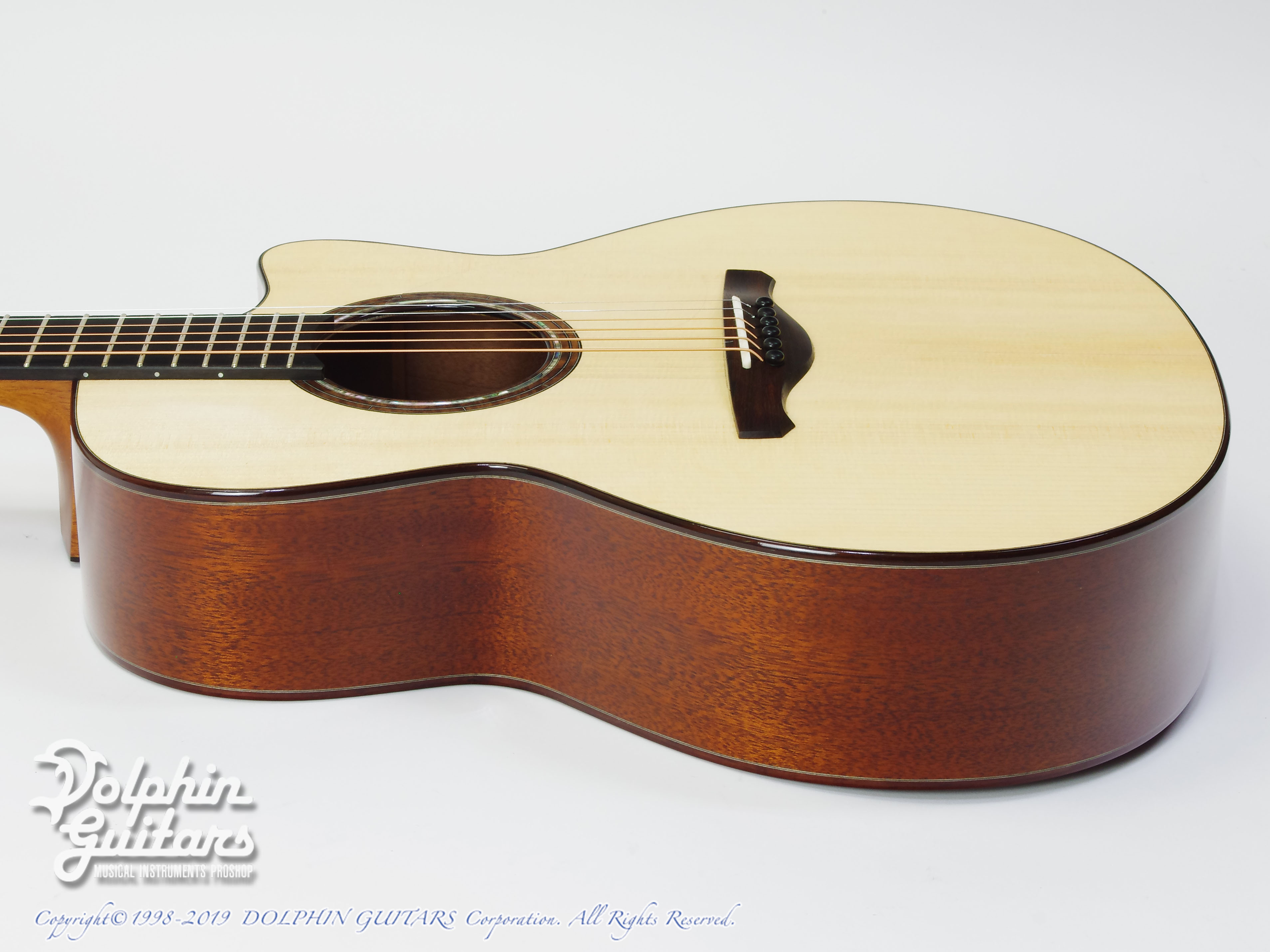 アディロンダック・スプルーストップ、ヴィンテージホンデュランマホガニーS&B、キューバンマホガニーネック(アジャスタブルロッド)、エボニー指板、ハカランダブリッジ、ウッド&アバロンロゼッタ、Gotoh 510Zペグ仕様。