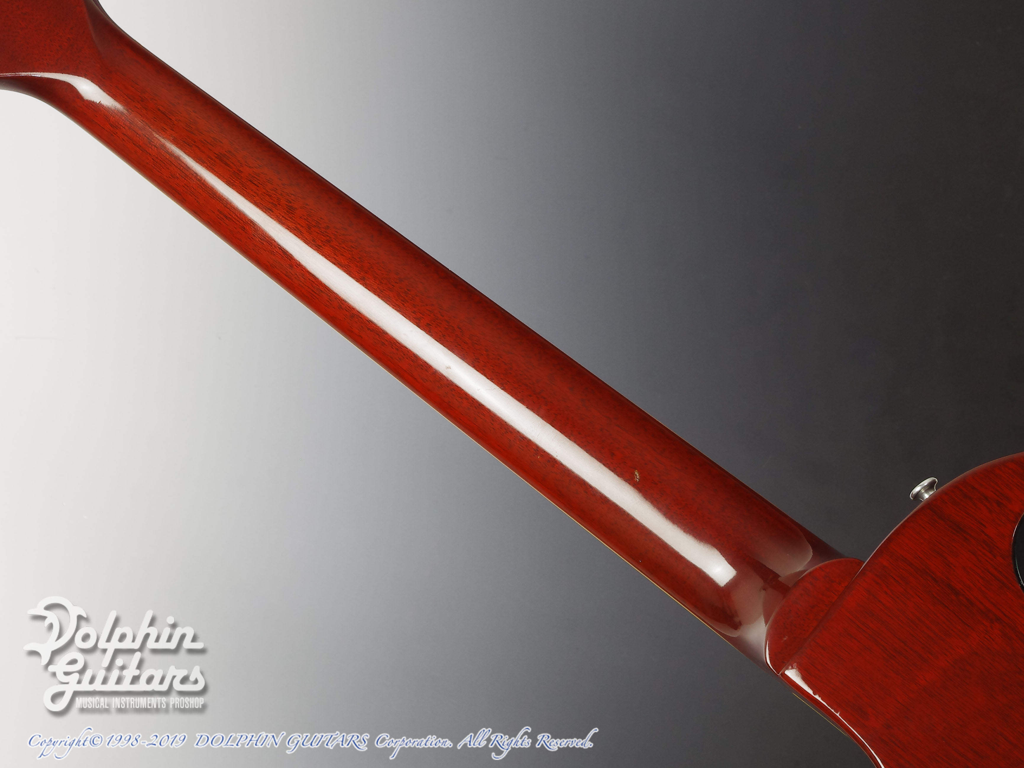ネックグリップは50年代特有の太めではなく、現代風なスリムなネックシェイプです。ピックアップにはGIBSONのBurstBucker Proが搭載されており、コイルのターン数を若干抑え、出力も若干低く作られているのが特徴です。クリーントーン、繊細さを重視したサウンドで、どのポジションでもブーミーにならず、シングルピックアップのようなクリーン、尚且つハムバッカーの太さもきちんとコントロールする事が出来ます。さらにWax-potting処理により大音量でもハウリングしにくい仕様になっていますので、即戦力でお使いいただける逸品です。