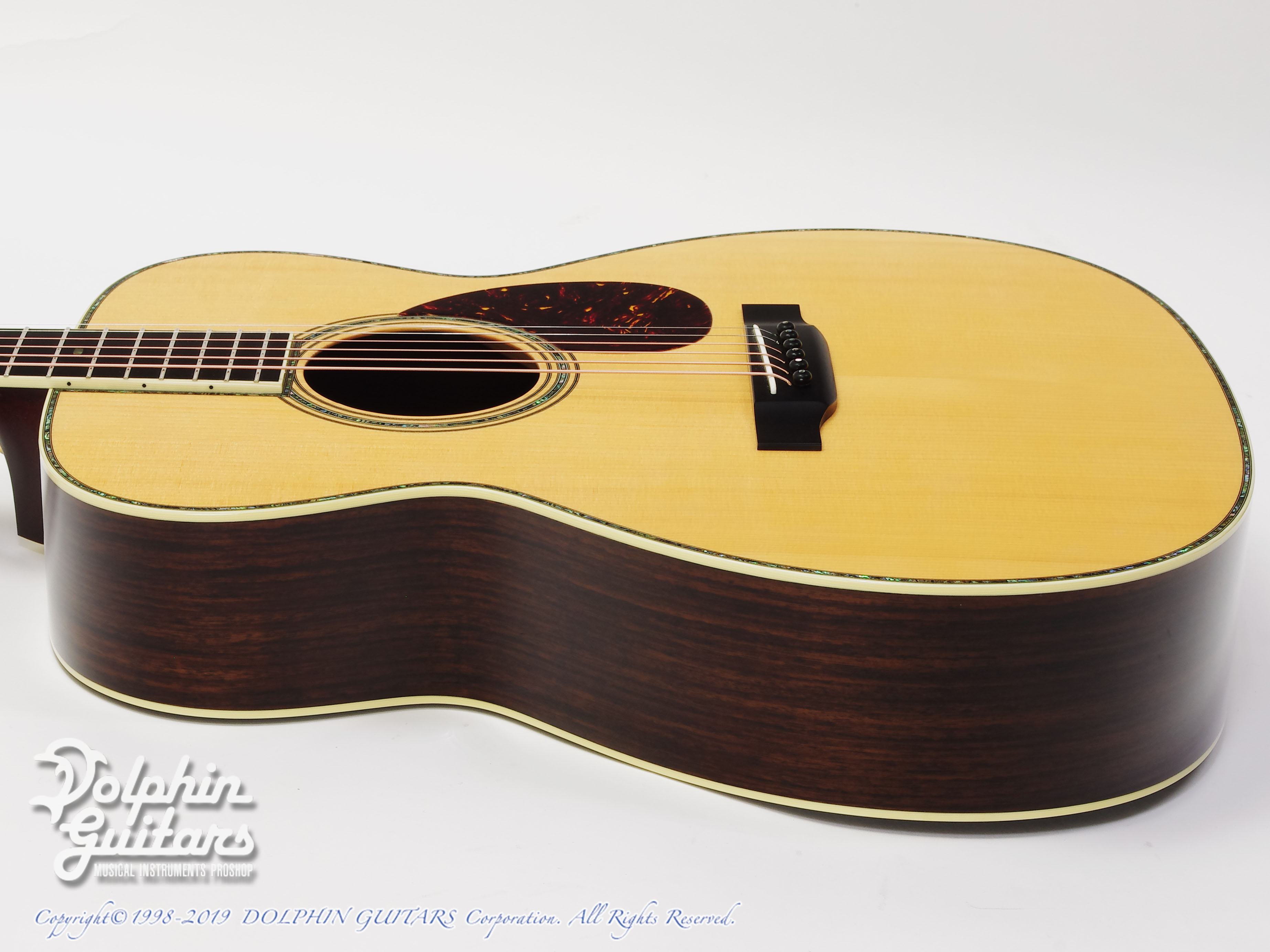 アディロンダック・スプルーストップ、インディアンローズウッドS&B、ホンデュラス・マホガニー1pネック(アジャスタブルロッド)、エボニー指板&ブリッジ、スタイル42アバロントリム、フラワーポット・ヘッドインレイ、44,5mmナット、647mmスケール、ウェバリーペグ、LR Baggs Anthem PUシステム搭載。