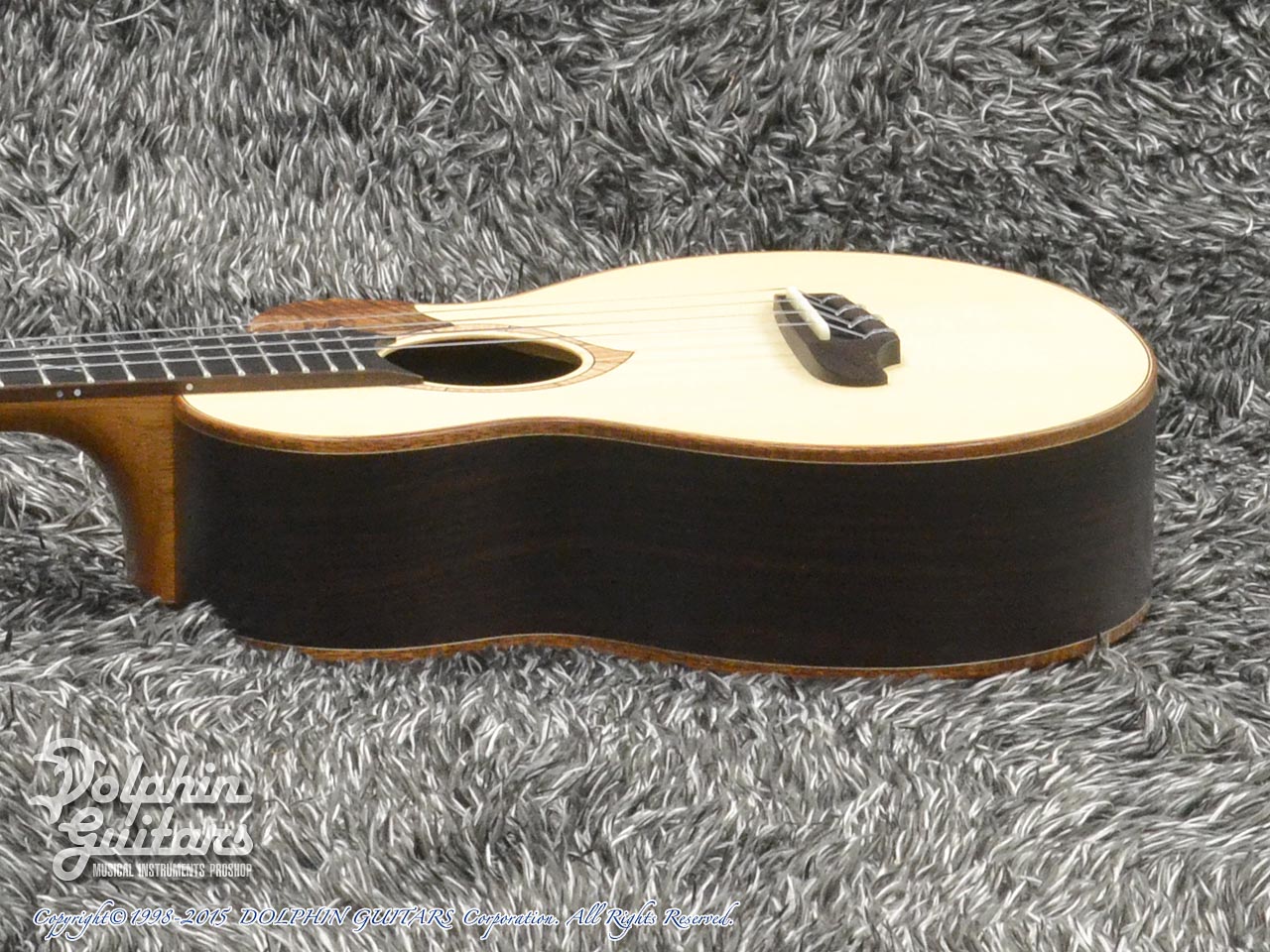 手にした瞬間、しっかり感が伝わってくるのはややヘビーウェイトなエボニーのゆえのものでしょう。その分サウンドも非常に力強い。これはソロスタイルに死角なしでしょう。和音も綺麗に伸びやかに響き、ウクレレサイズの楽器とは思えないほど豊潤なサウンドです。