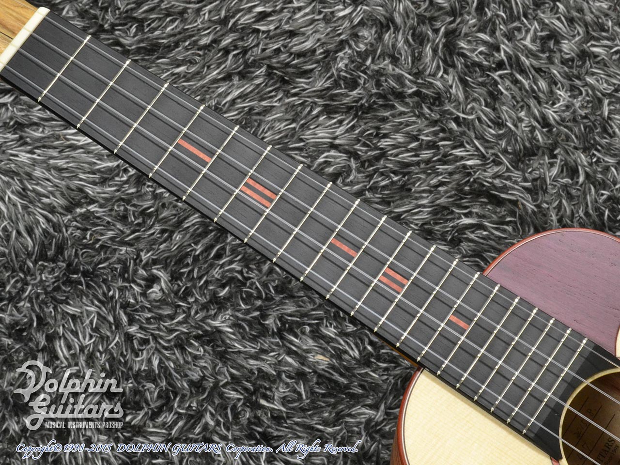 イングルマン・スプルース・トップ、ブラジリアン・チューリップウッド・サイド&バック、マホガニー・ネック、エボニー指板、ピンクアイボリー・ロゼッタ、ゴトー糸巻き。