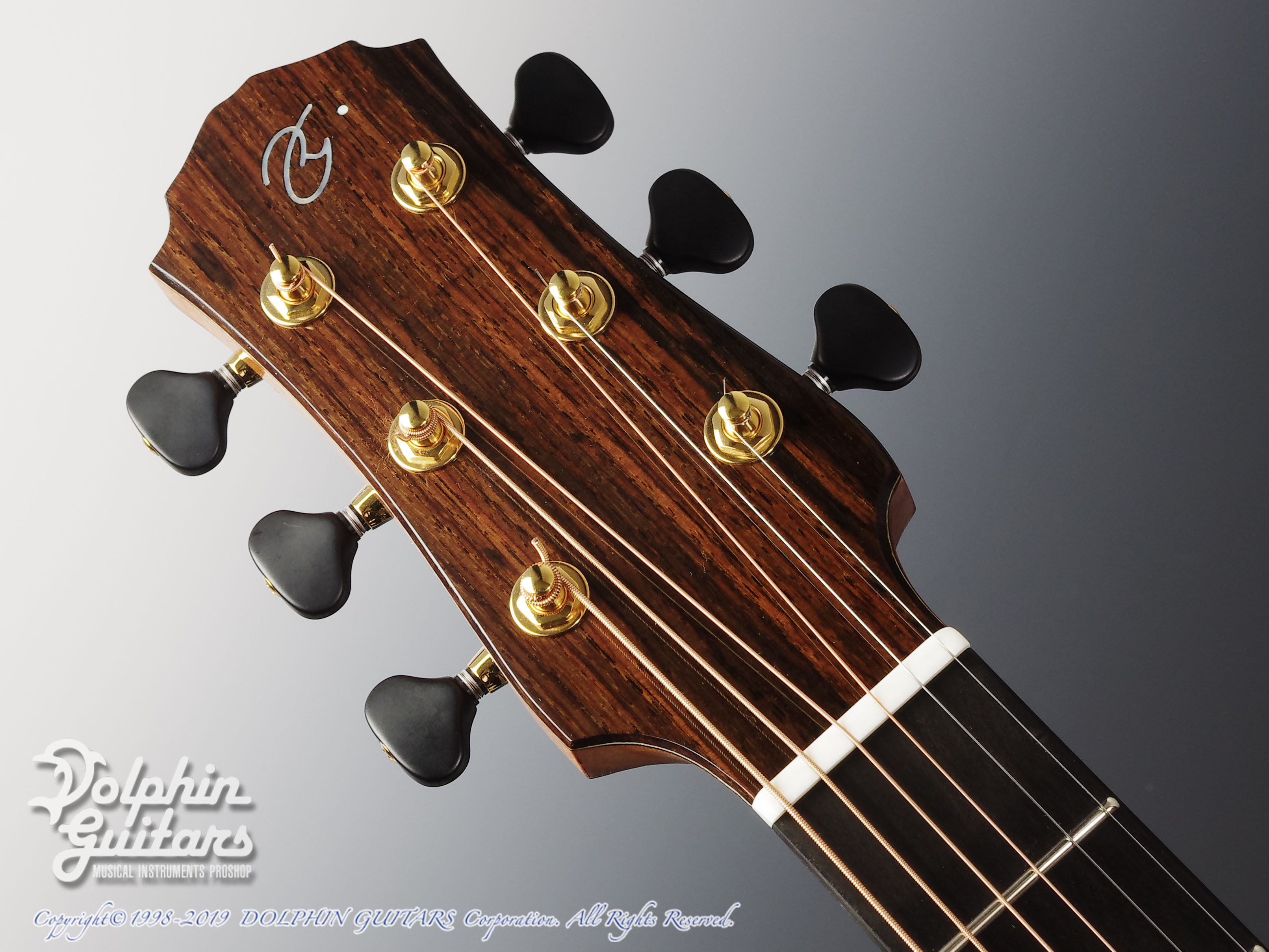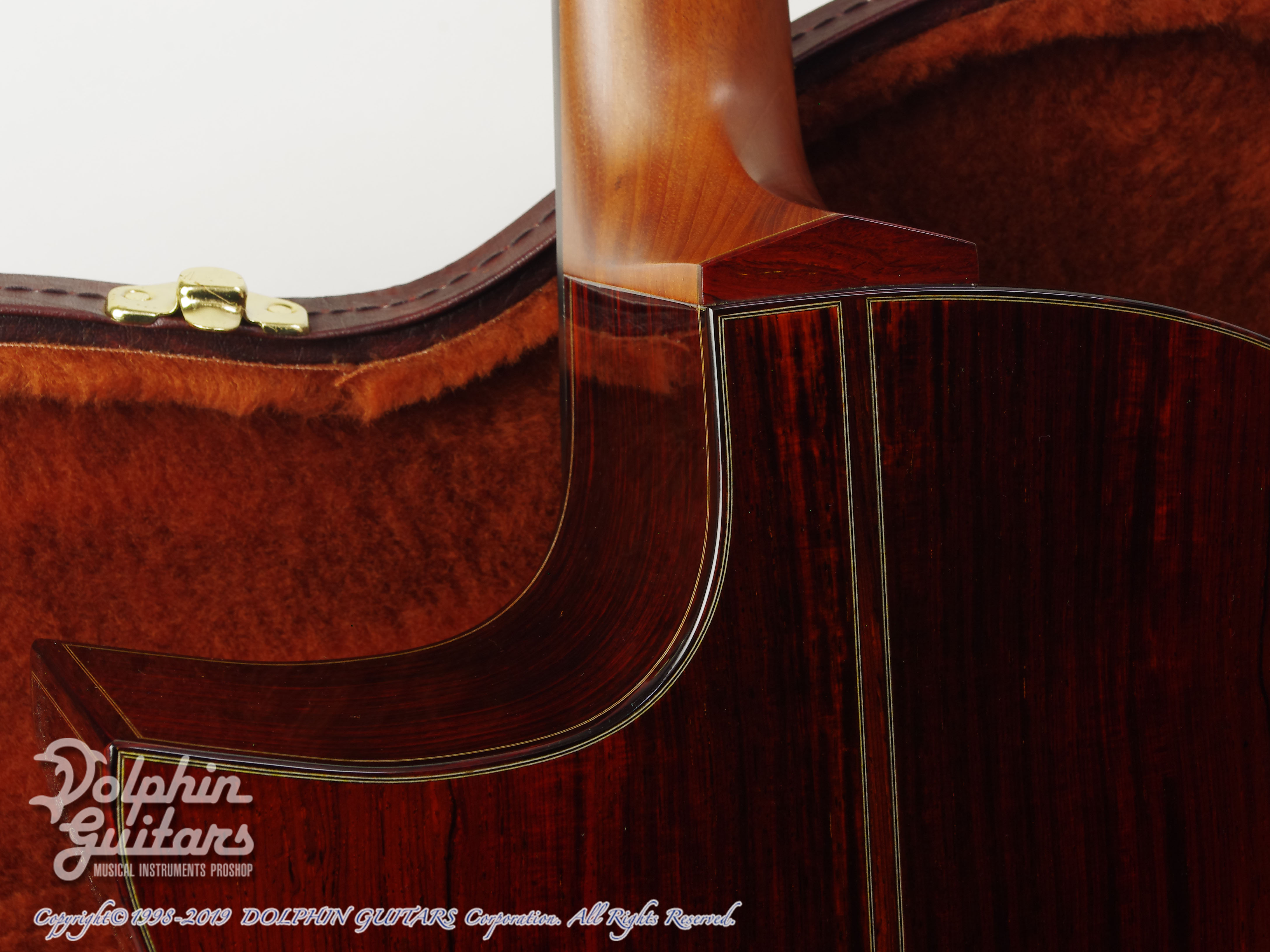 ココボロ材はご覧の通り最高級の材が使用されており、上質なジャーマントップとほれぼれするような美しいトーンウッドです。ボディバインディングはサイド材のココボロから切り出された同材が使用されており、ルックス的にも最高です。シンプルなヘッドシェイプですがこれ以上の装飾は必要ないほど高級感を放っております。