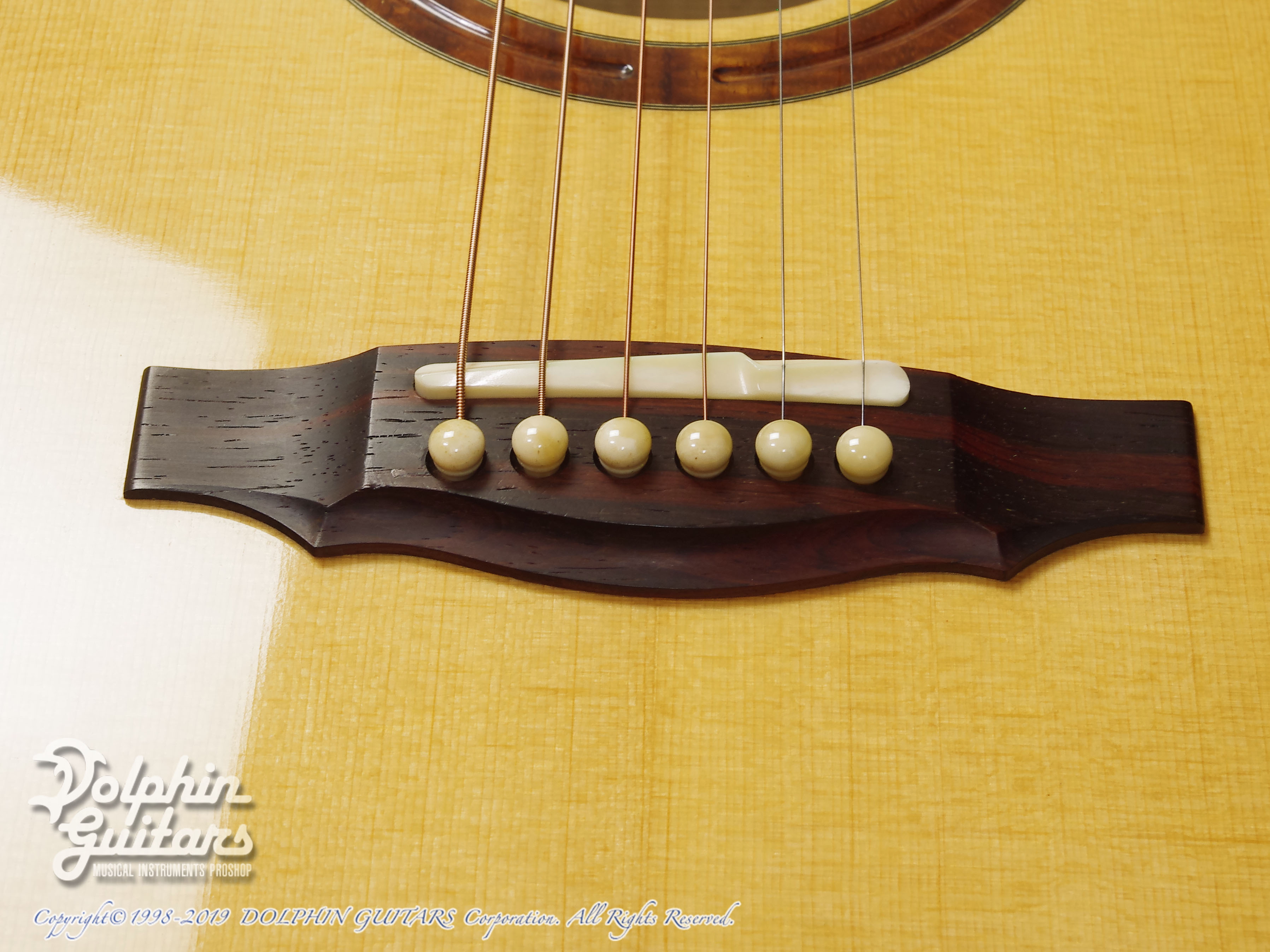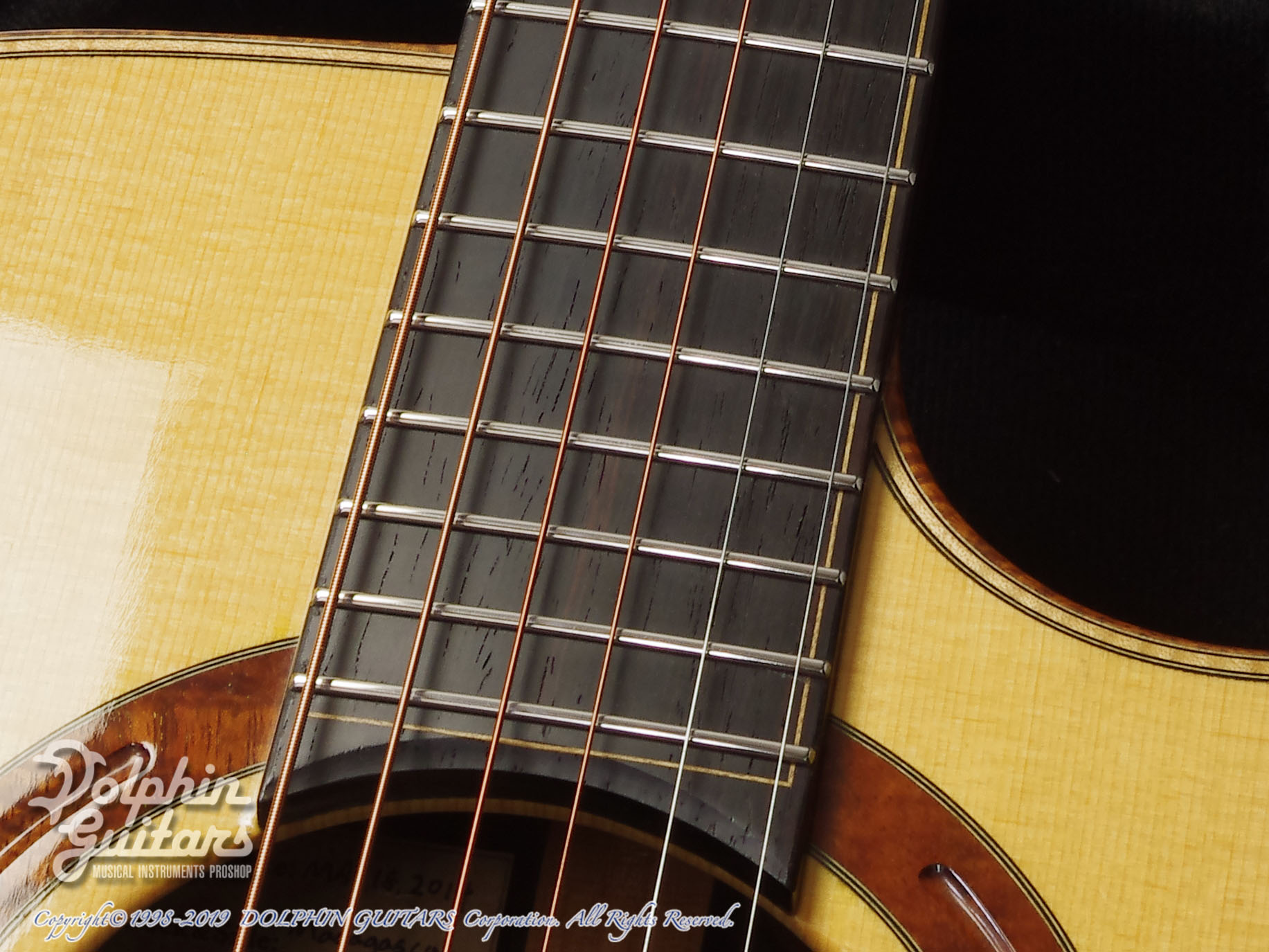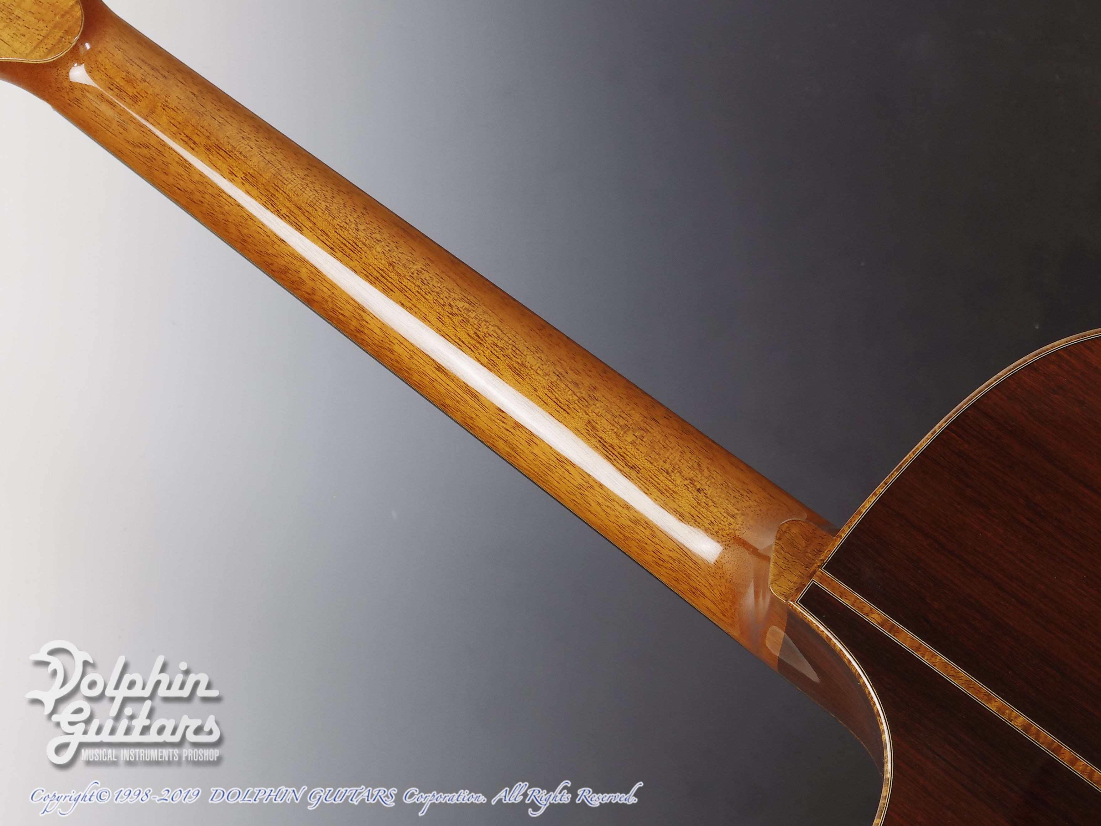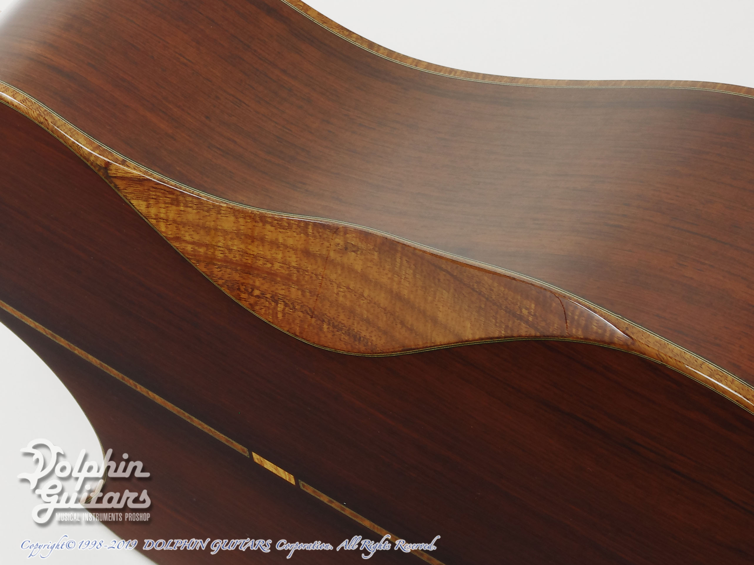 コーカシアン・スプルーストップ(*ロシア南部コーカサス地方原産の木材)、マダガスカル・ローズウッドS&B、ホンデュラス・マホガニー1ピースネック、ブラジリアン・ローズ指板&ブリッジ、バックコンター加工(リブレスト)、カーリーコアバインディング、オリジナルウッドロゼッタ、ステンレスフレット、フローレンタイン3Dカッタウェイ、Gotoh510ペグ仕様。