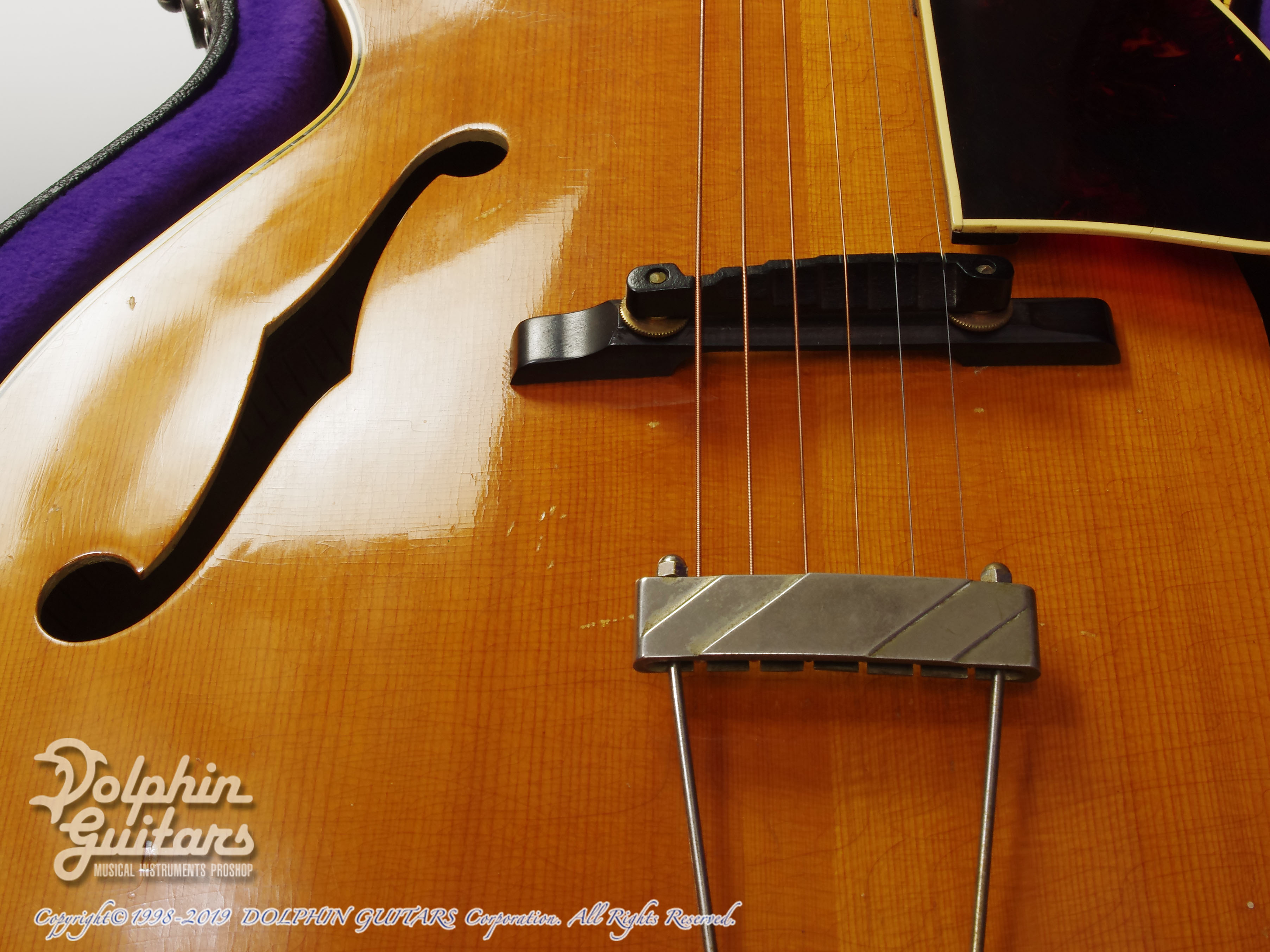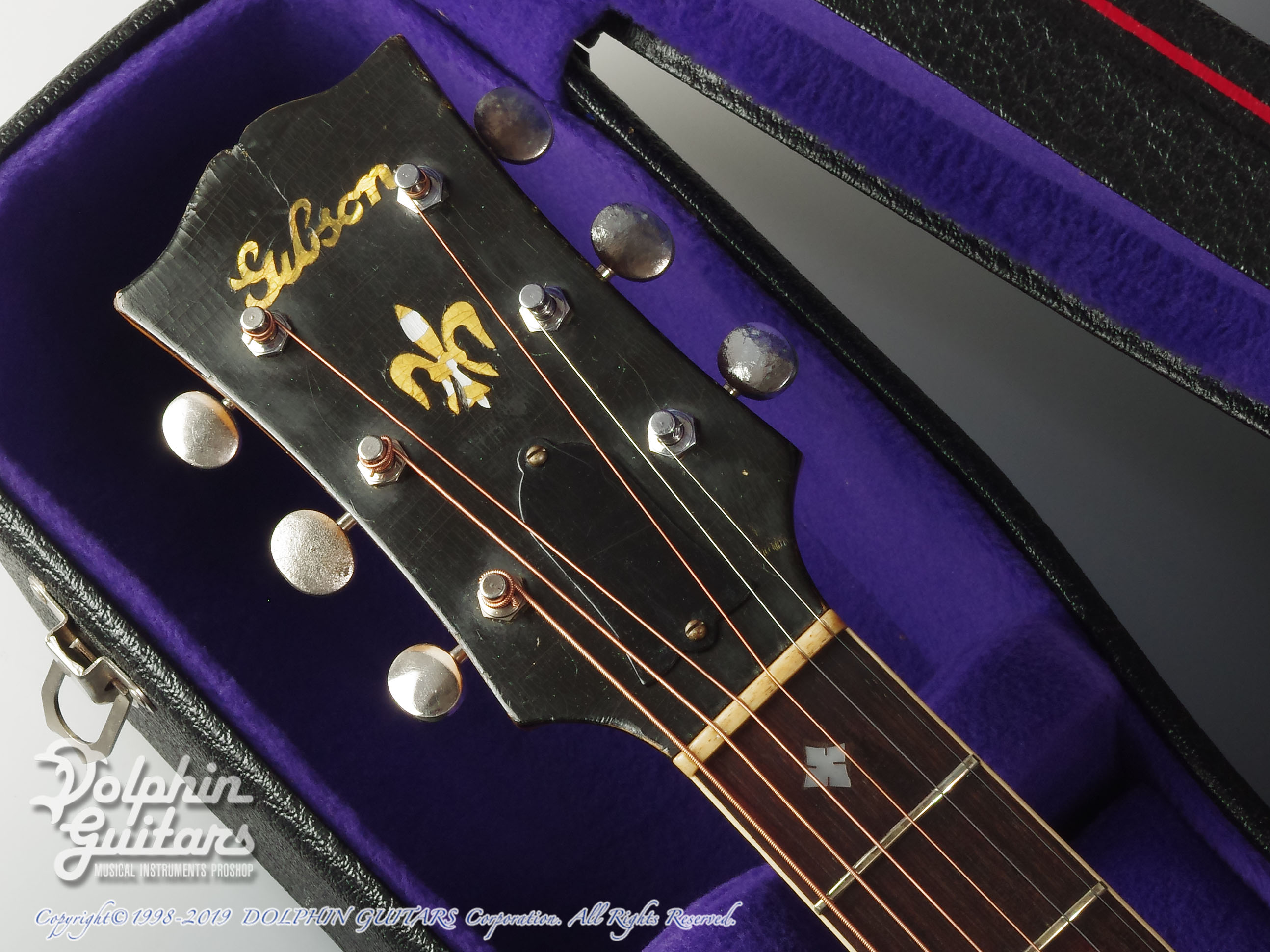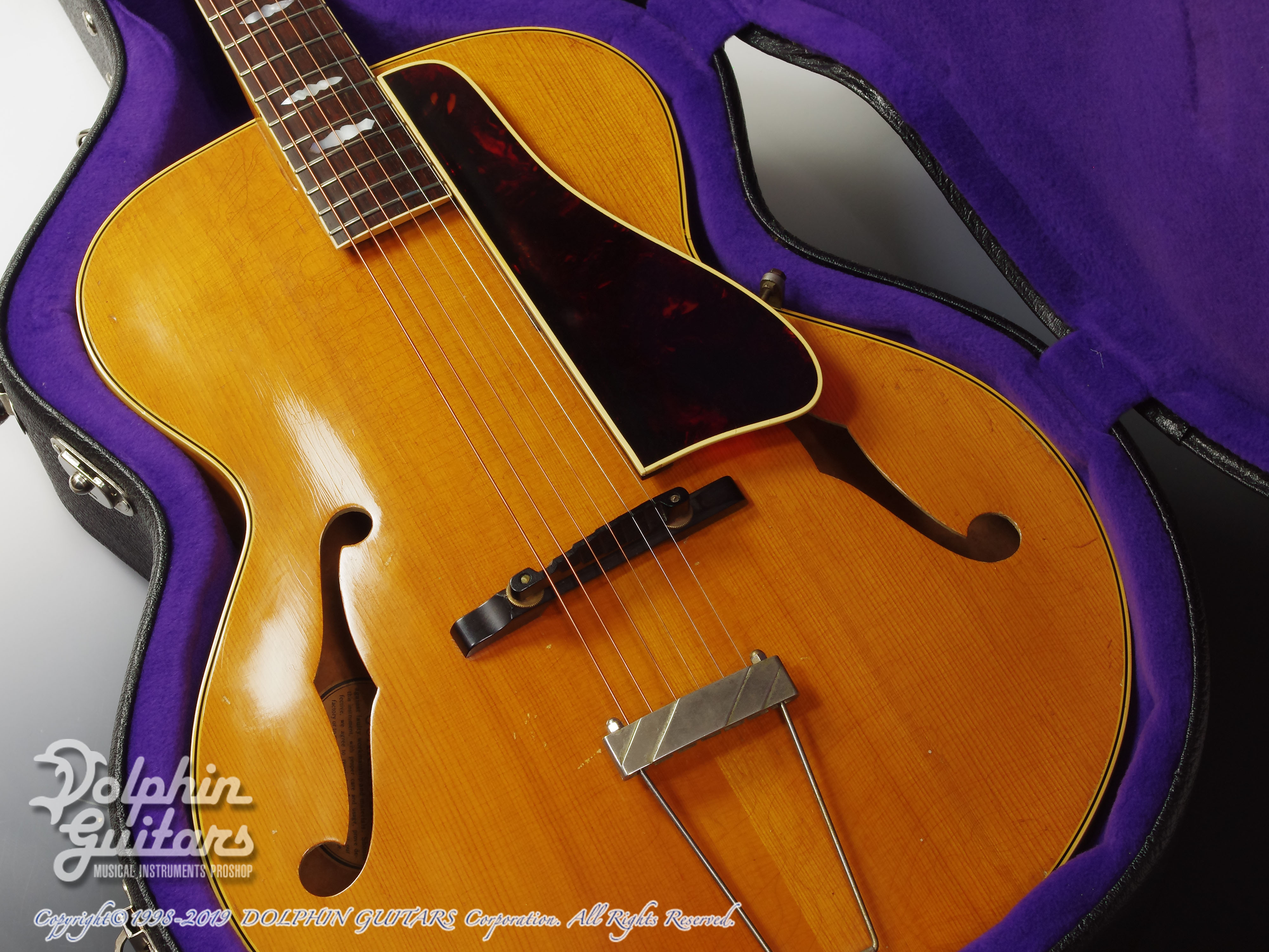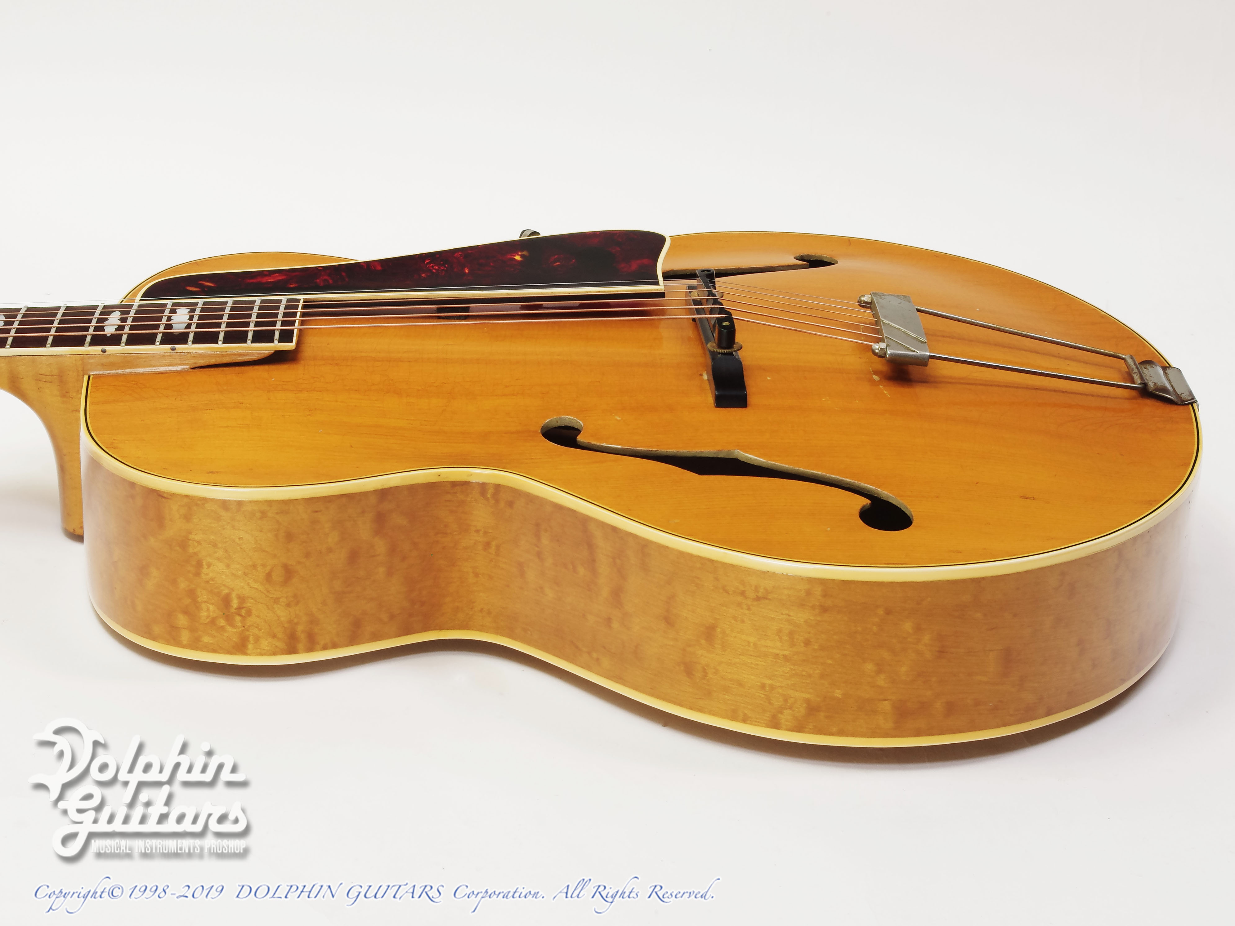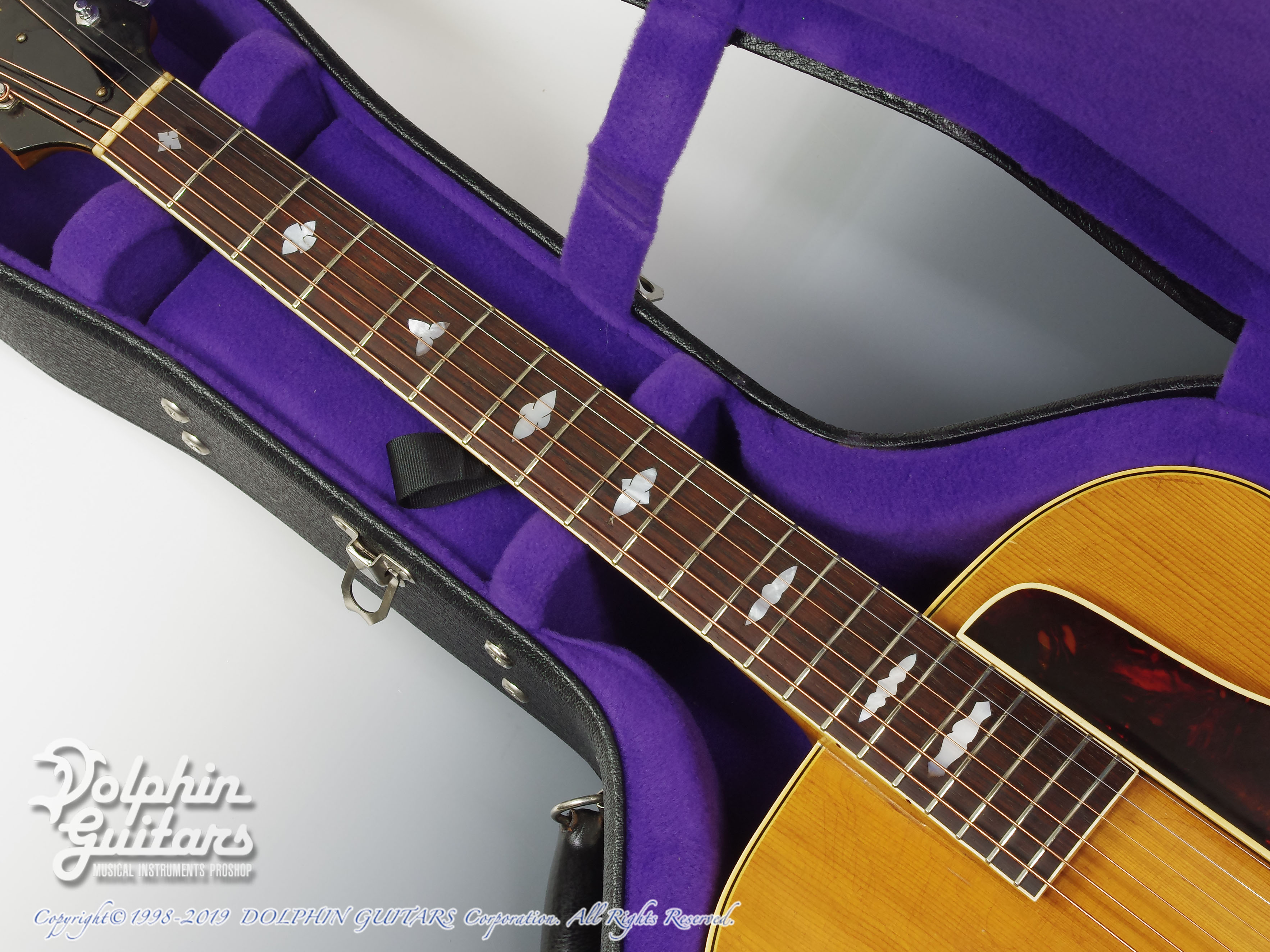 1912年に小振りな16インチ・ボディとして発表されました。初期はオーバルホール、12フレットジョイントとかなりクラシカルなデザインで、1930年半ば頃に現在のルックスに落ち着きました。ブロンドフィニッシュは1940年辺りからのオプションで、サンバーストカラ―に比べると生産本数も少なく、市場での人気も高いカラ―です。