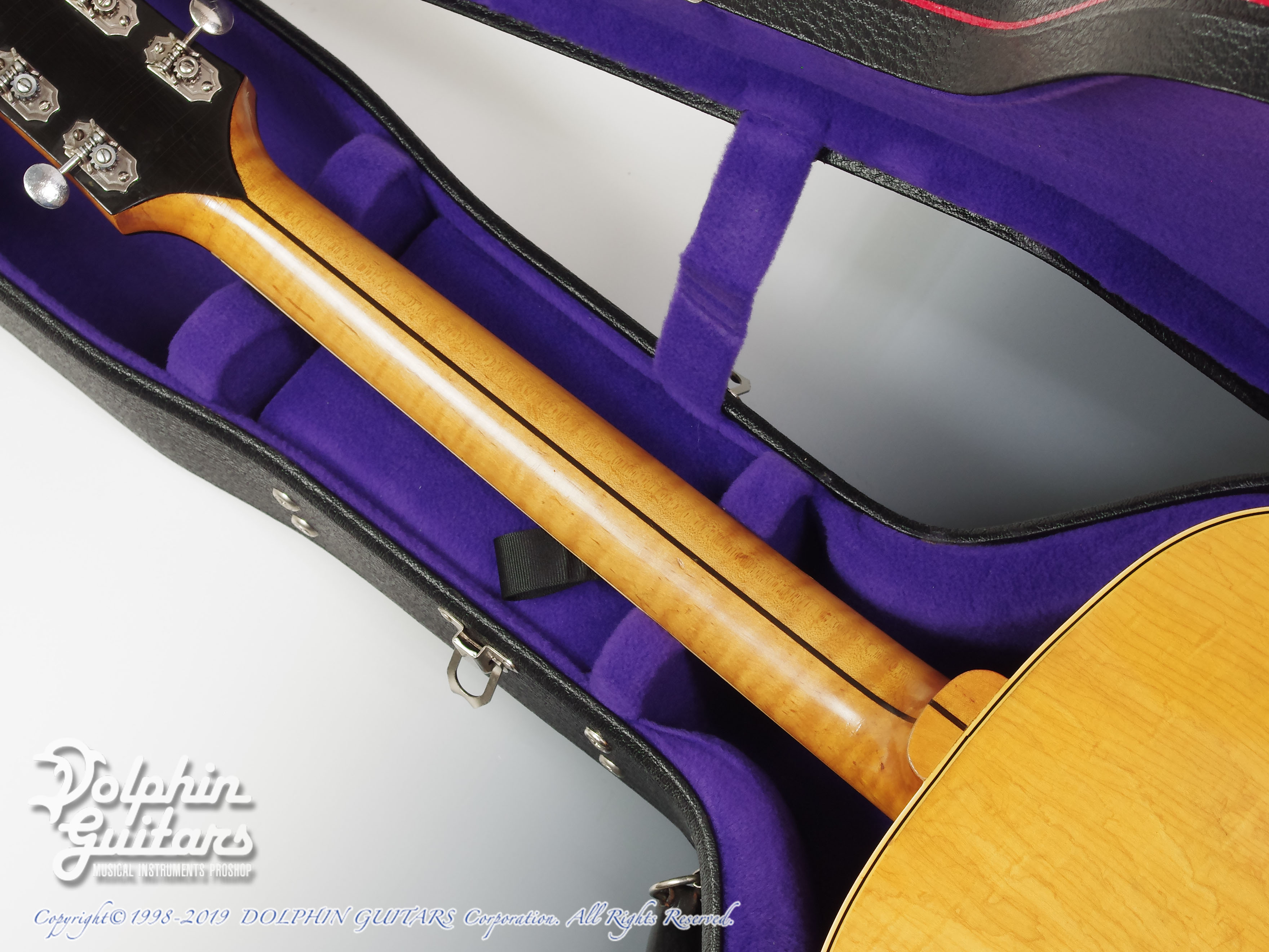 スプルース・トップ、メイプル・サイド&バック、メイプル2ピース・ネック、ハカランダ指板、エボニーブリッジ、ブロンド・カラー。