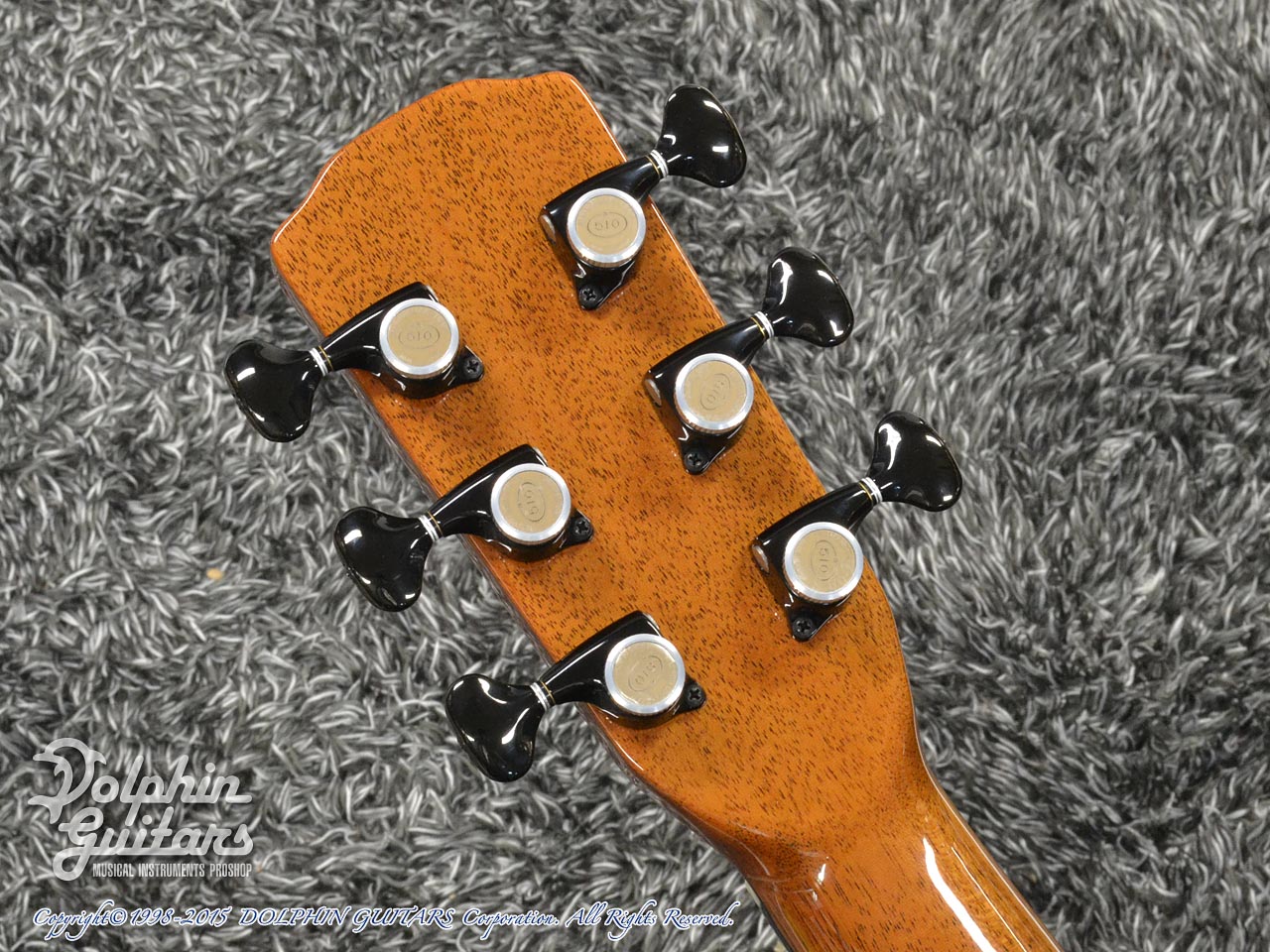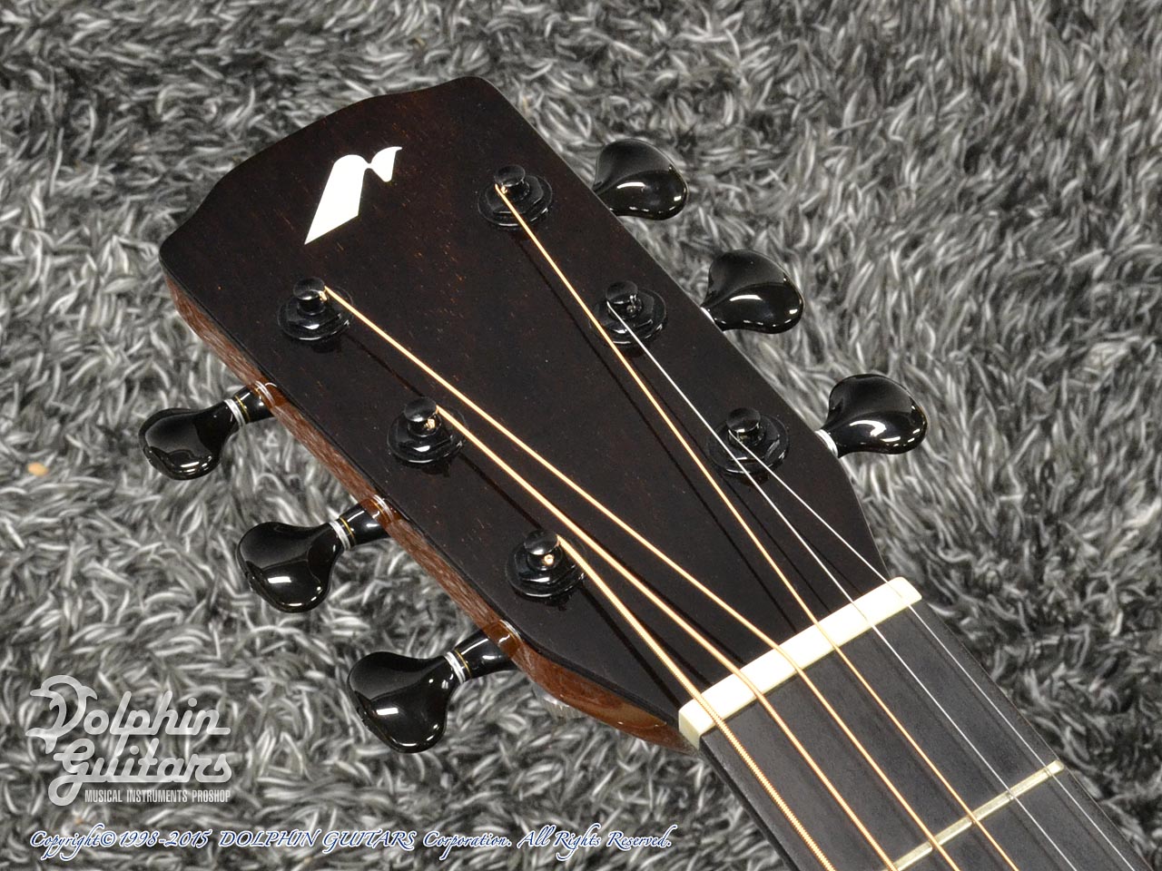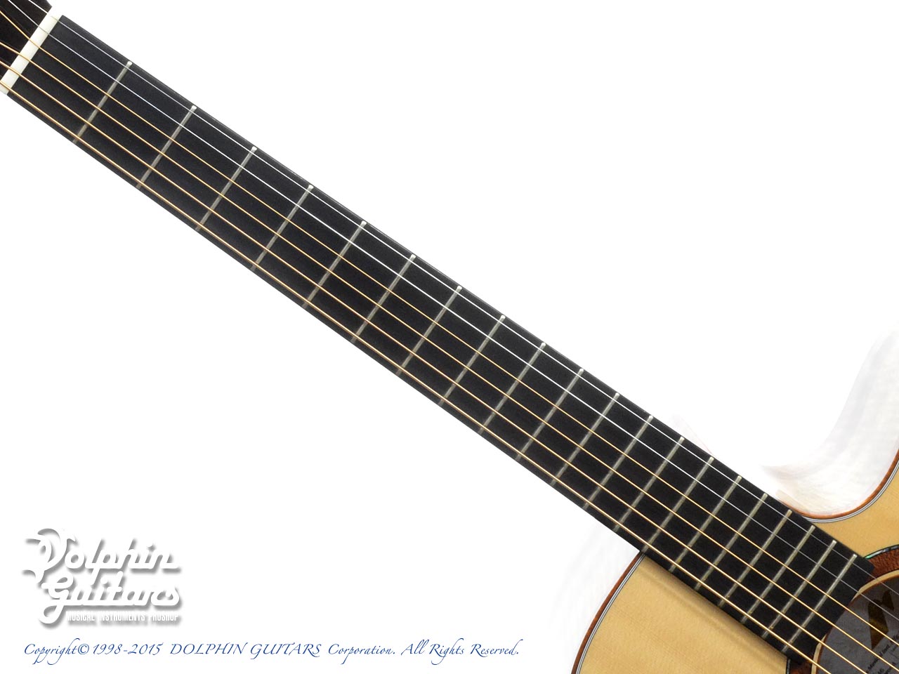 迫力のサウンドとボディラインの美しさで人気のSJ (スモールジャンボ)シェイプに、ドイツ南アルプスで買い付けたジャーマン・スプルース・トップを使用、サイド&バックは極上の杢が出たFigured Myrtlewood仕様となっております。ヴェネチアンカッタウェイもSJシェイプではほとんど製作されていない希少スペックです。