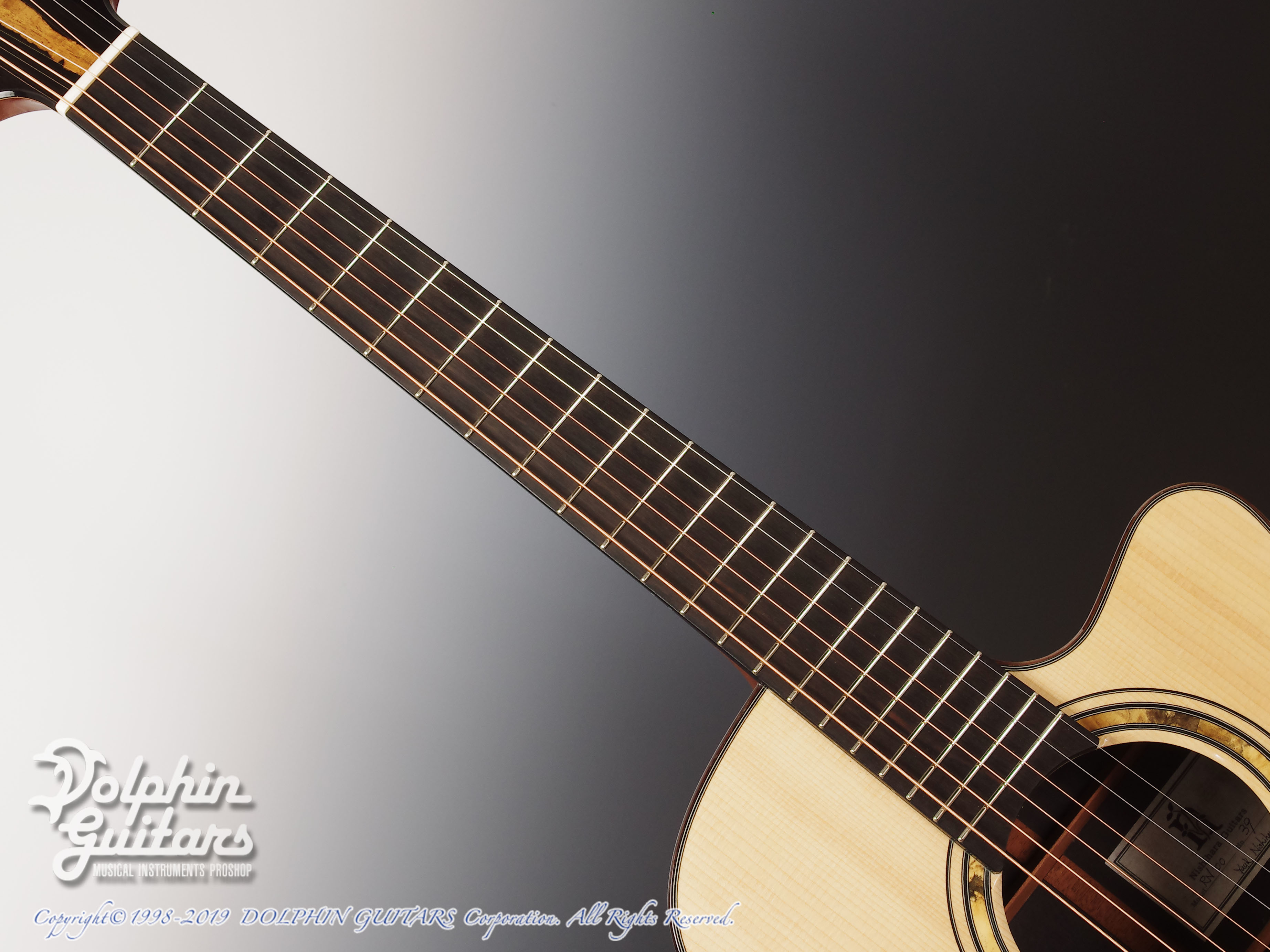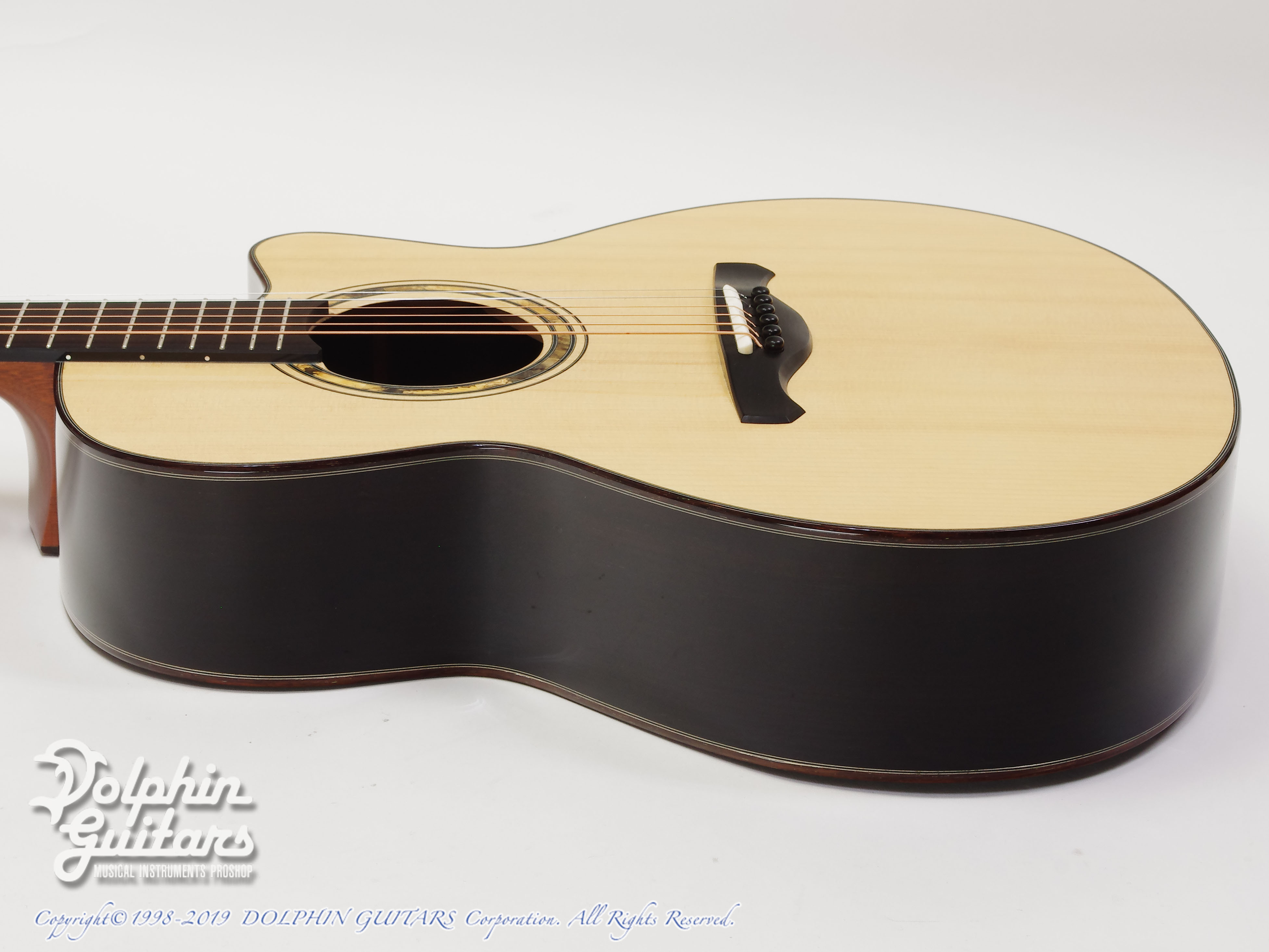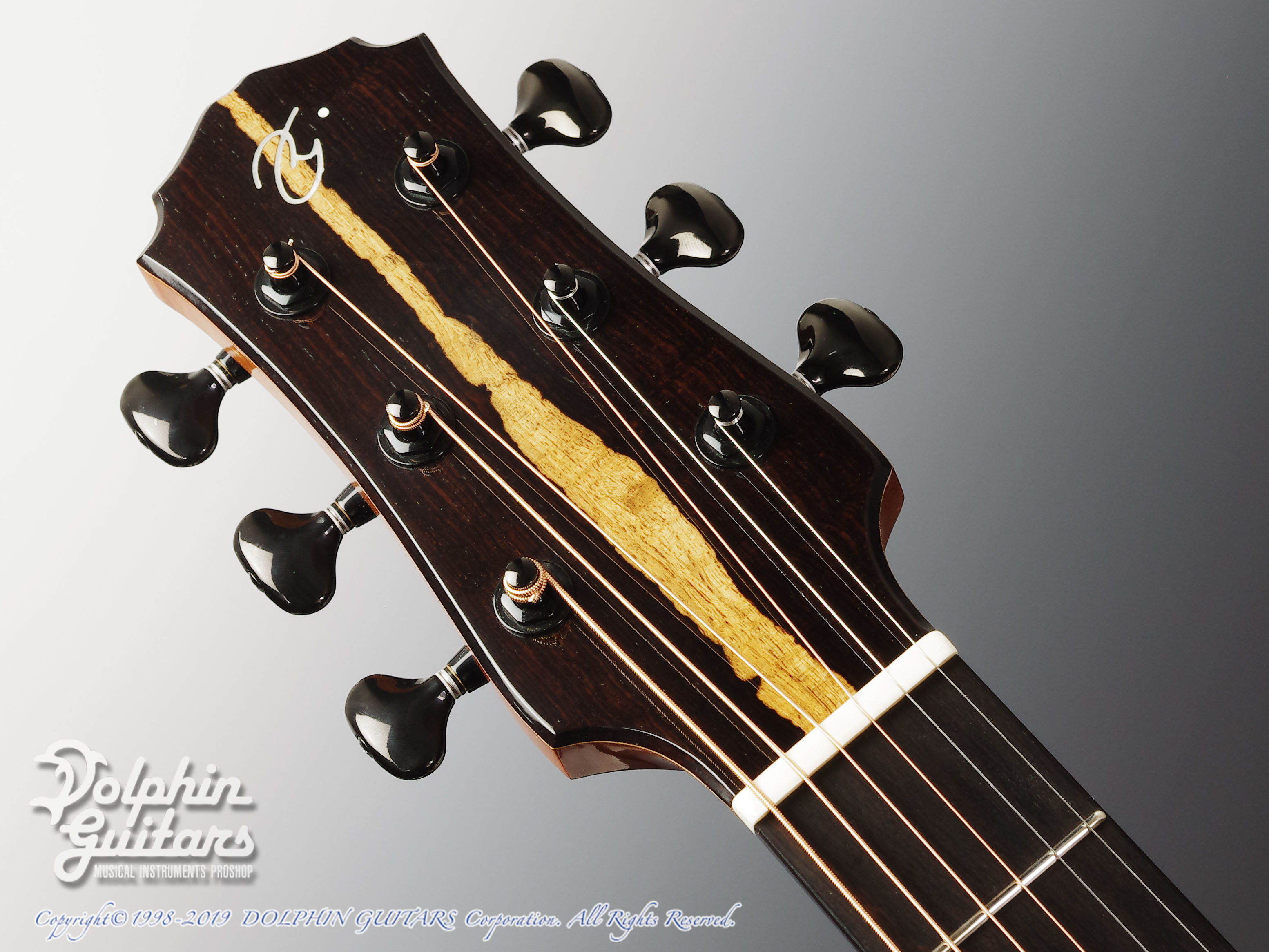 アディロンダック・スプルーストップ、アフリカン・ブラックウッドS&B、マホガニーネック(アジャスタブルロッド)、エボニー指板&ブリッジ、ウッドロゼッタ、ヴェネチアンカッタウェイ、44mmナット、630mmスケール、Gotoh510Zペグ。